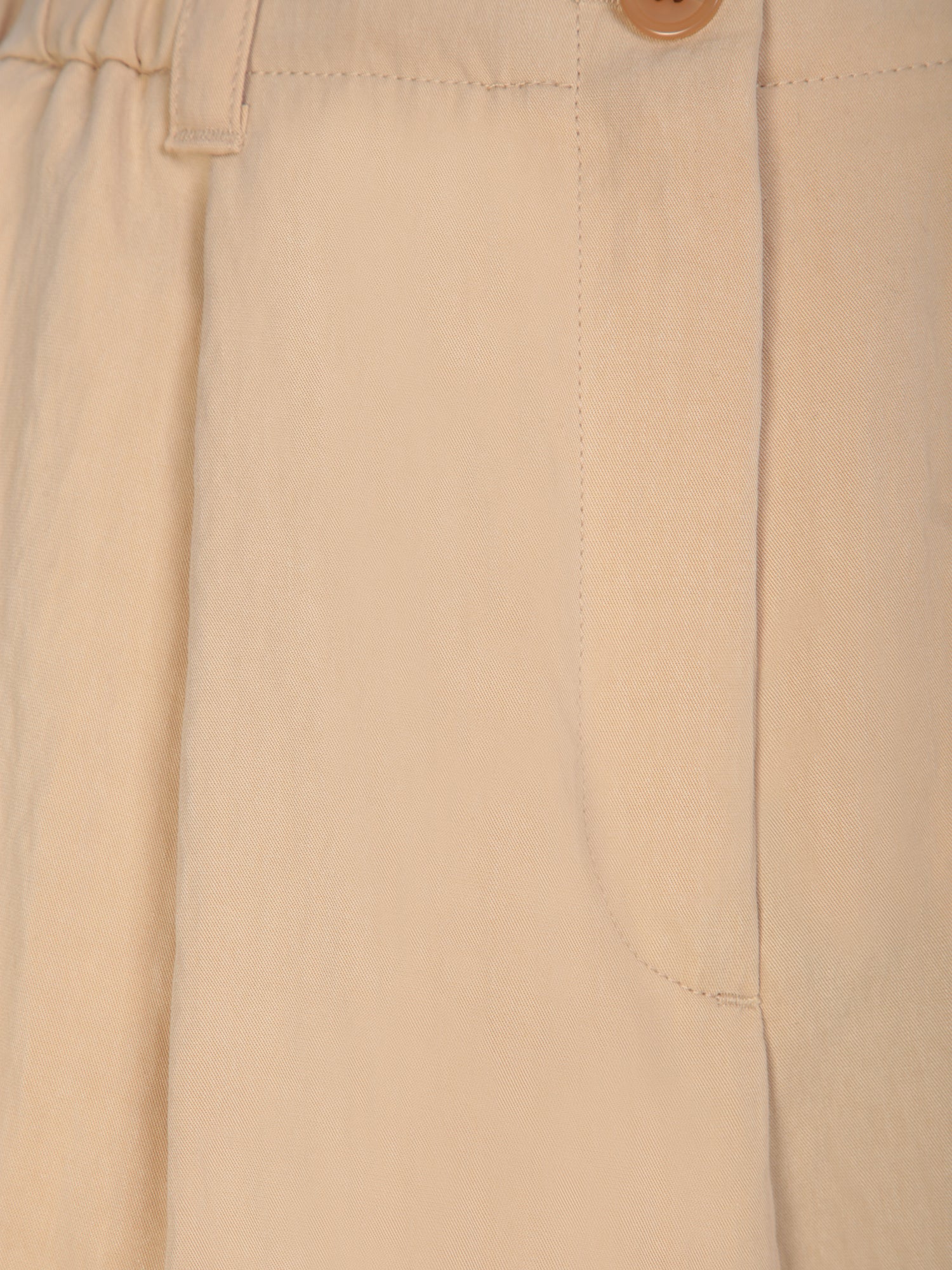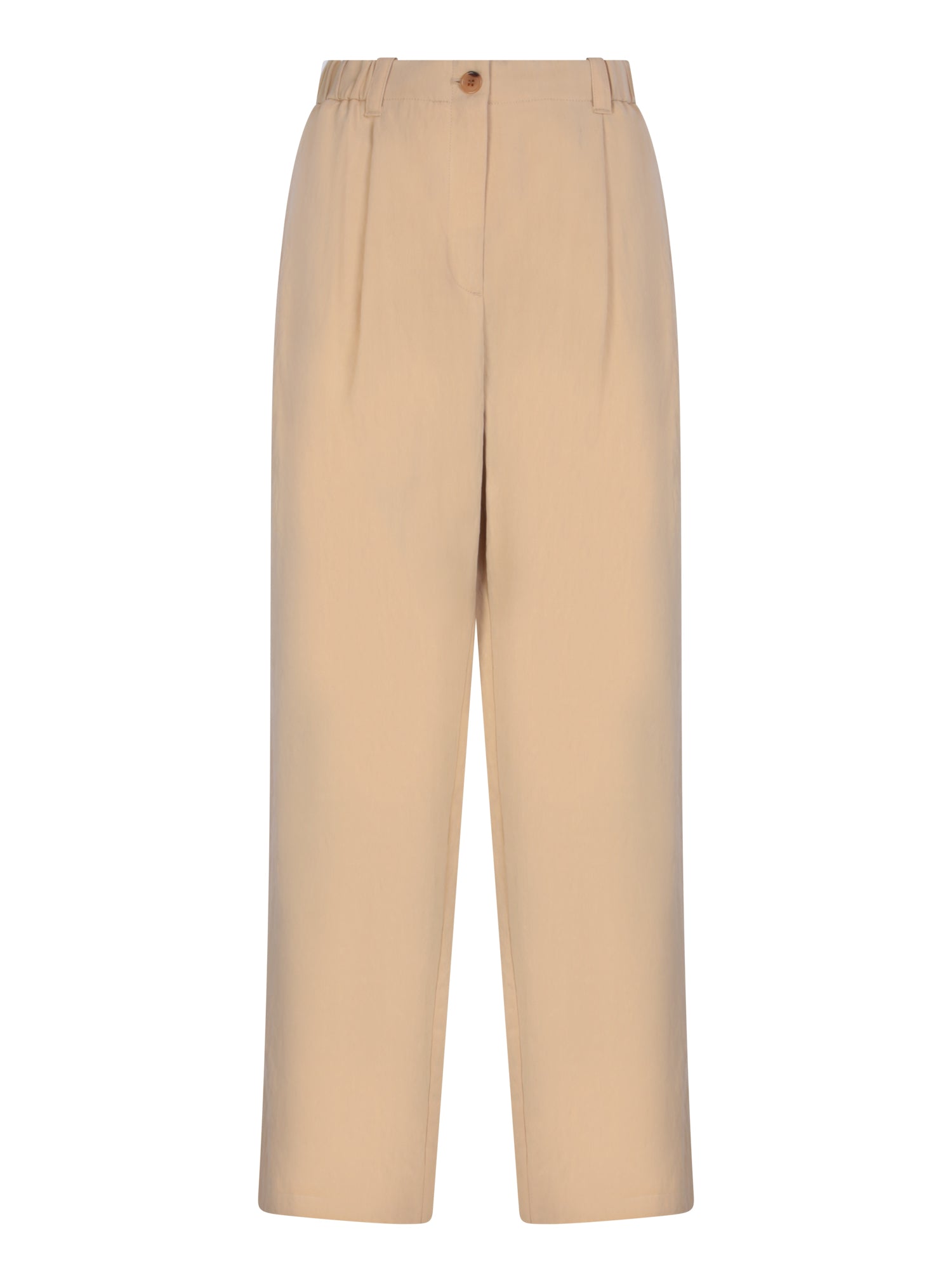 Zip and button fastening. Belt loops. Two side pockets. Logo patch to the rear. Label on the back. Wide leg. Color: Beige