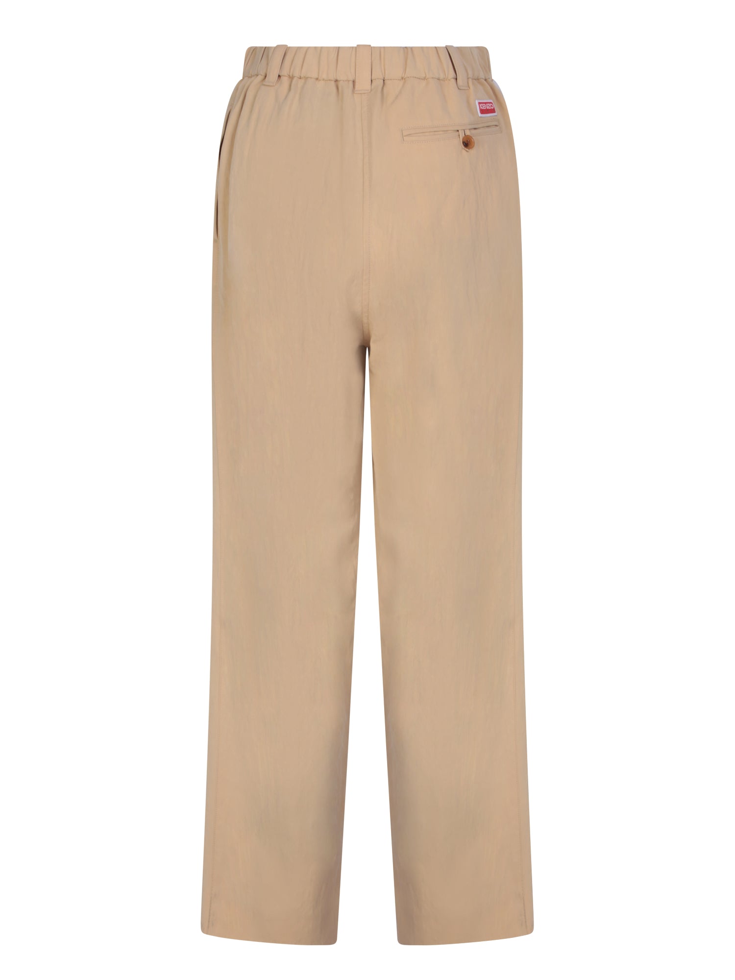 Straight-cut beige trousers by Kenzo, inspired by designer Nigo's 'real-to-wear' philosophy
