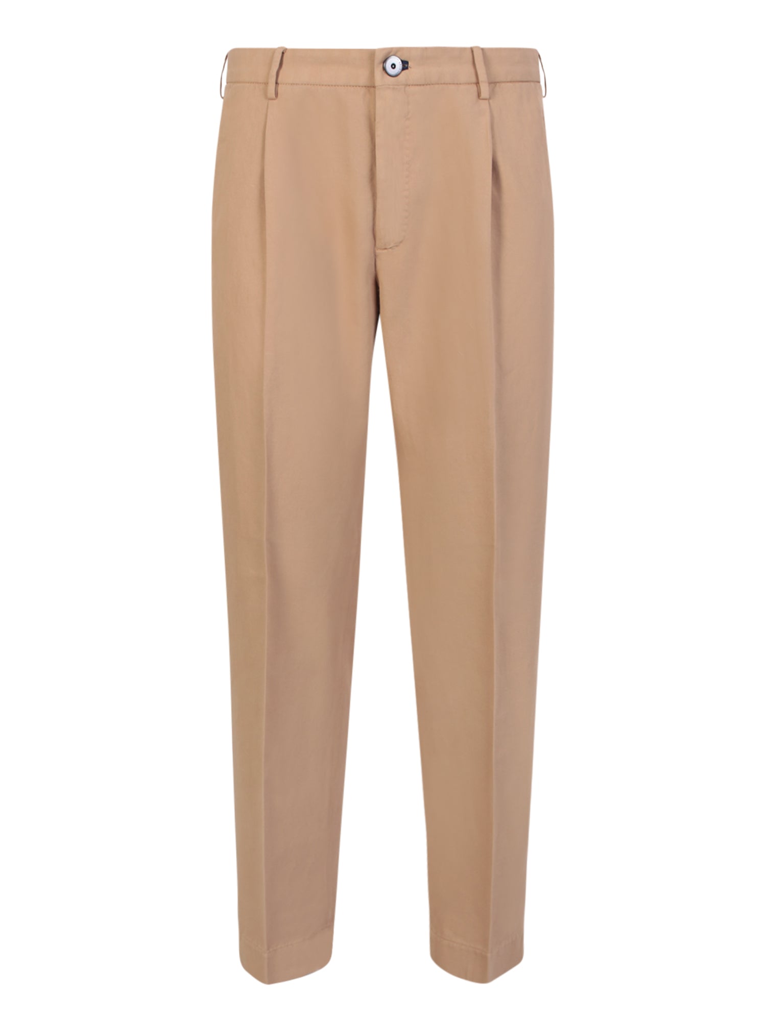 Tapared fit dark blue trousers by Incotex. The garment is characterised by soft lines conferred by the tapared fit and the front pleat