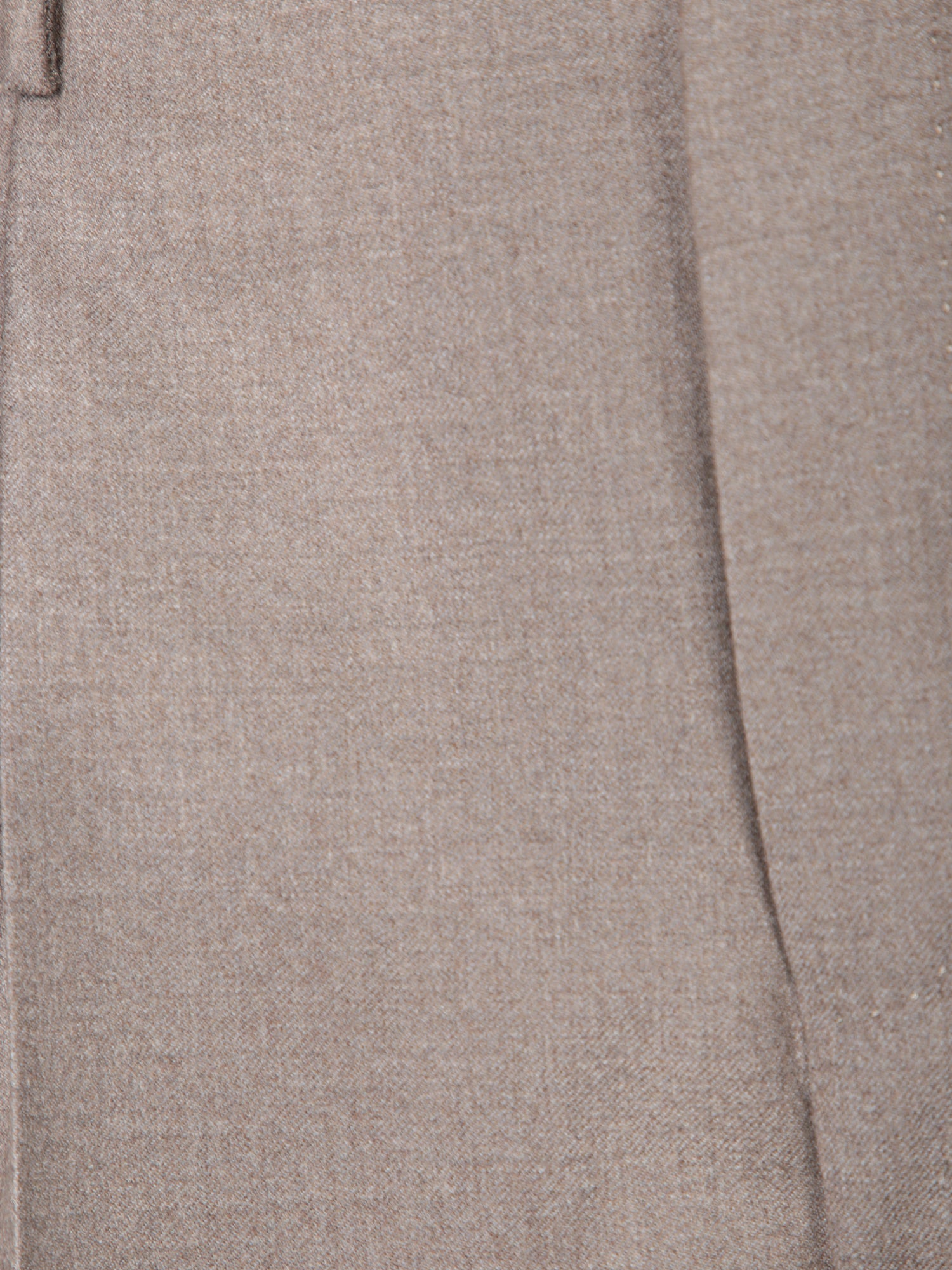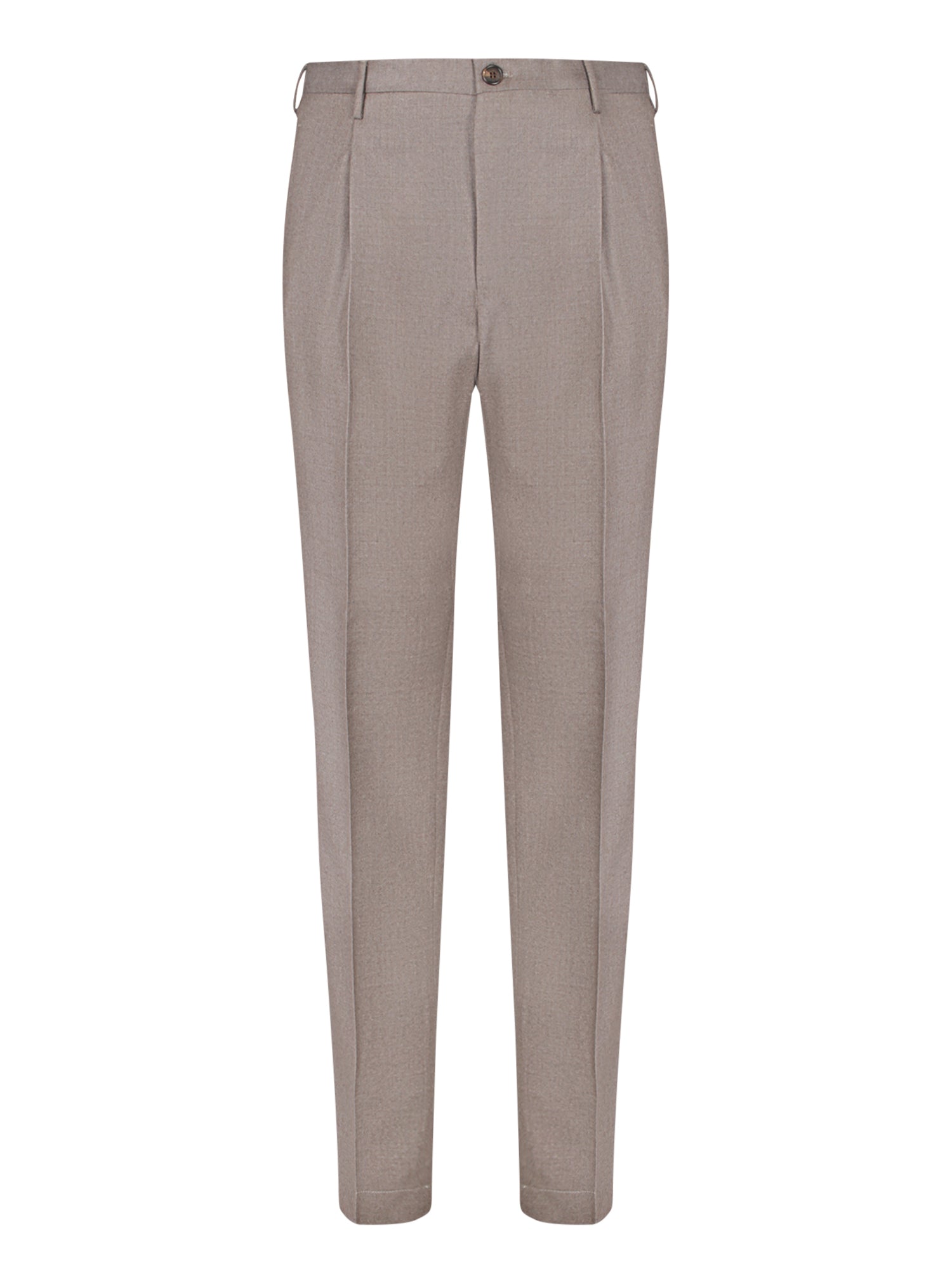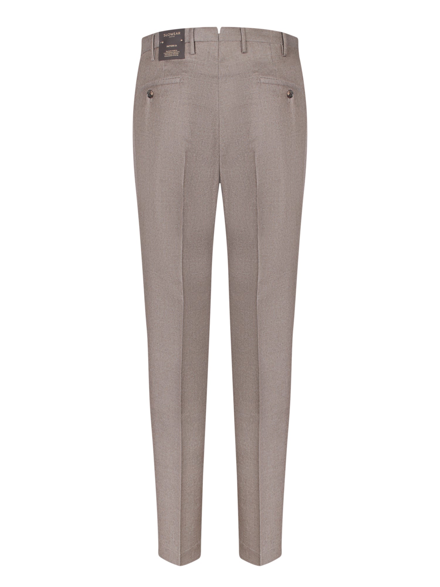 Tapered fit trousers. Front zip and button closure. Flannel fabric.