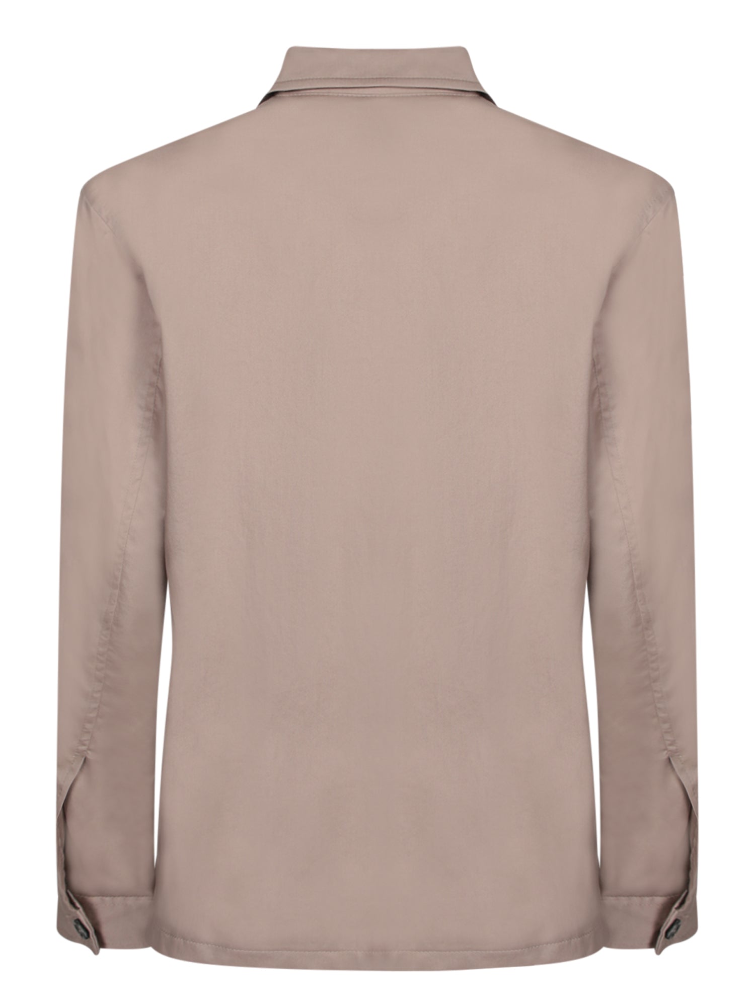 This elegant Tagliatore dove grey cotton overshirt features a matte black button front closure and dual flap pockets for a functional touch.