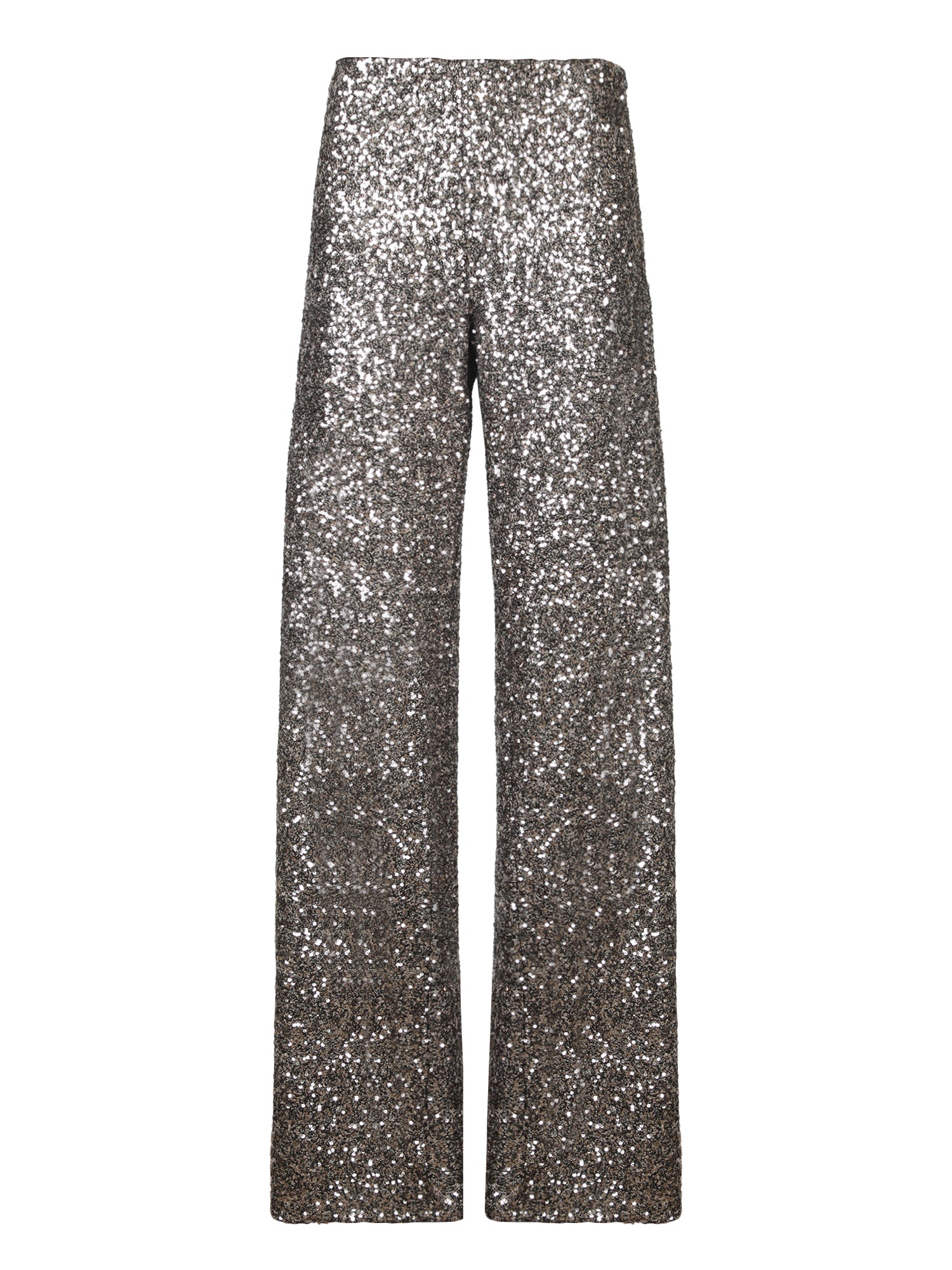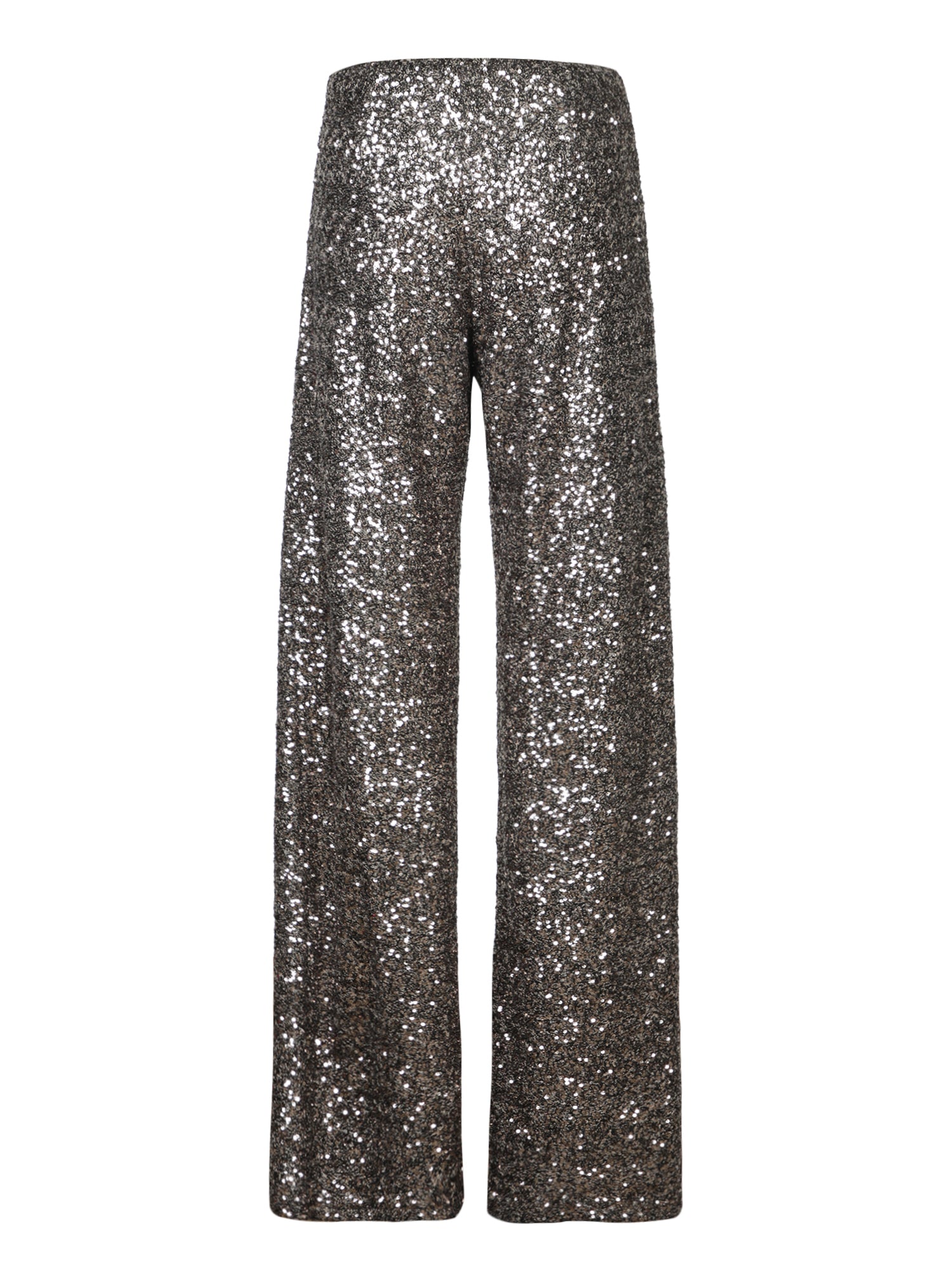 High-waisted trousers. Elastic waistband for a better fit. Fully sequined fabric.