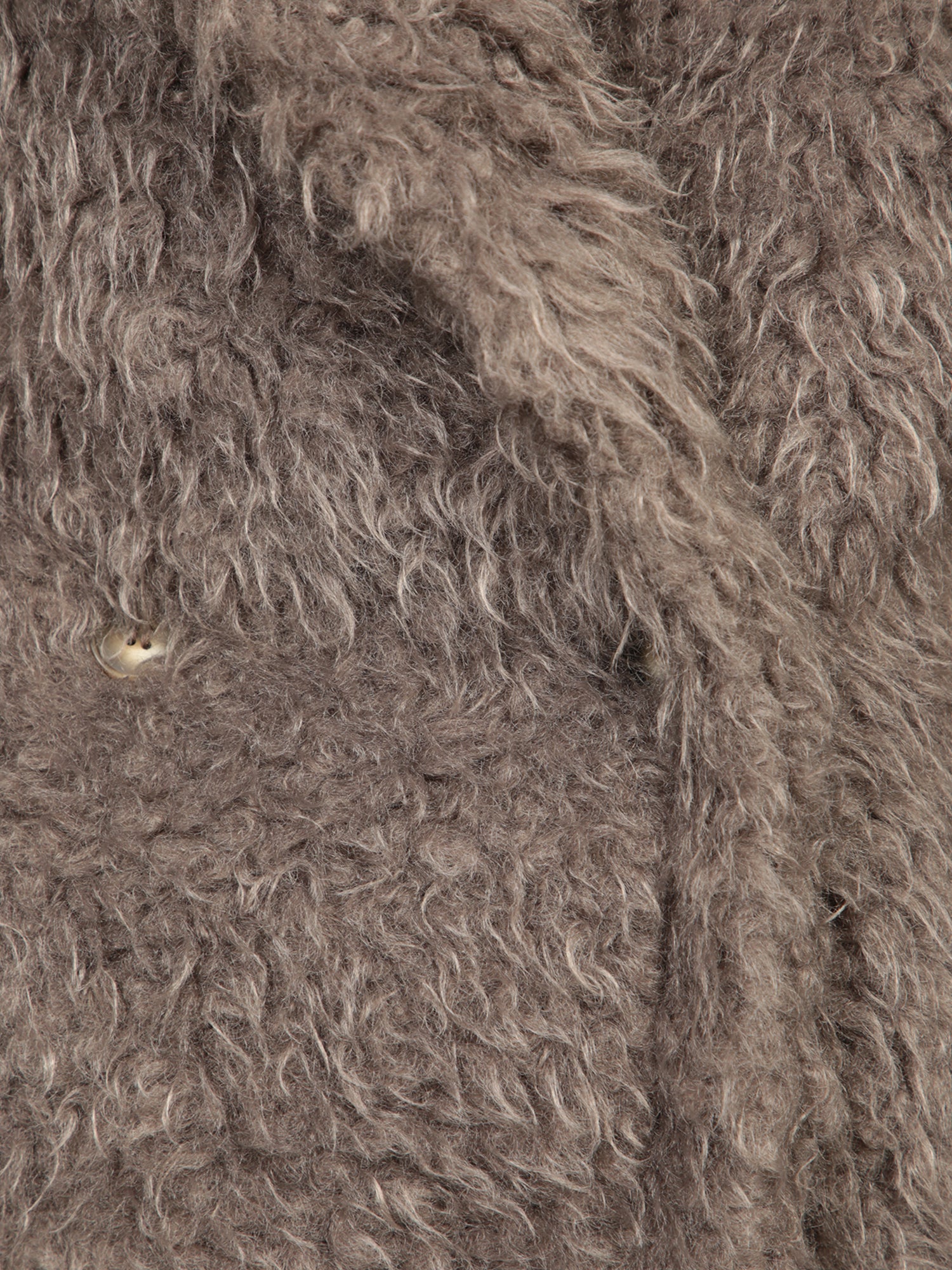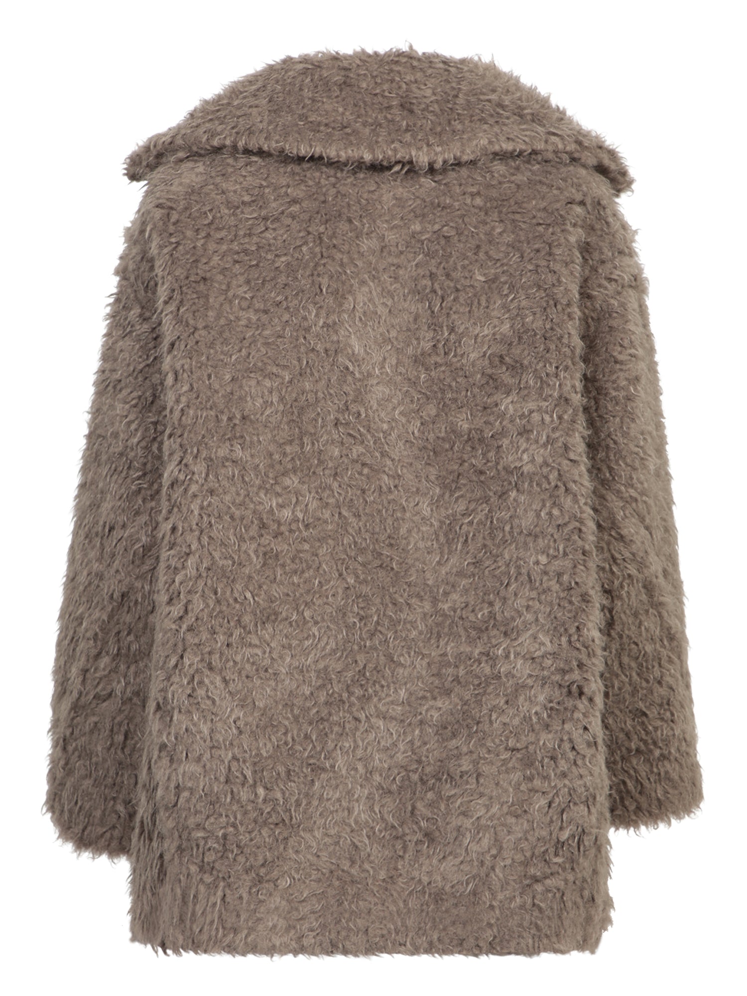 Teddy fabric coat in taupe color. Button closure. Lapel collar.