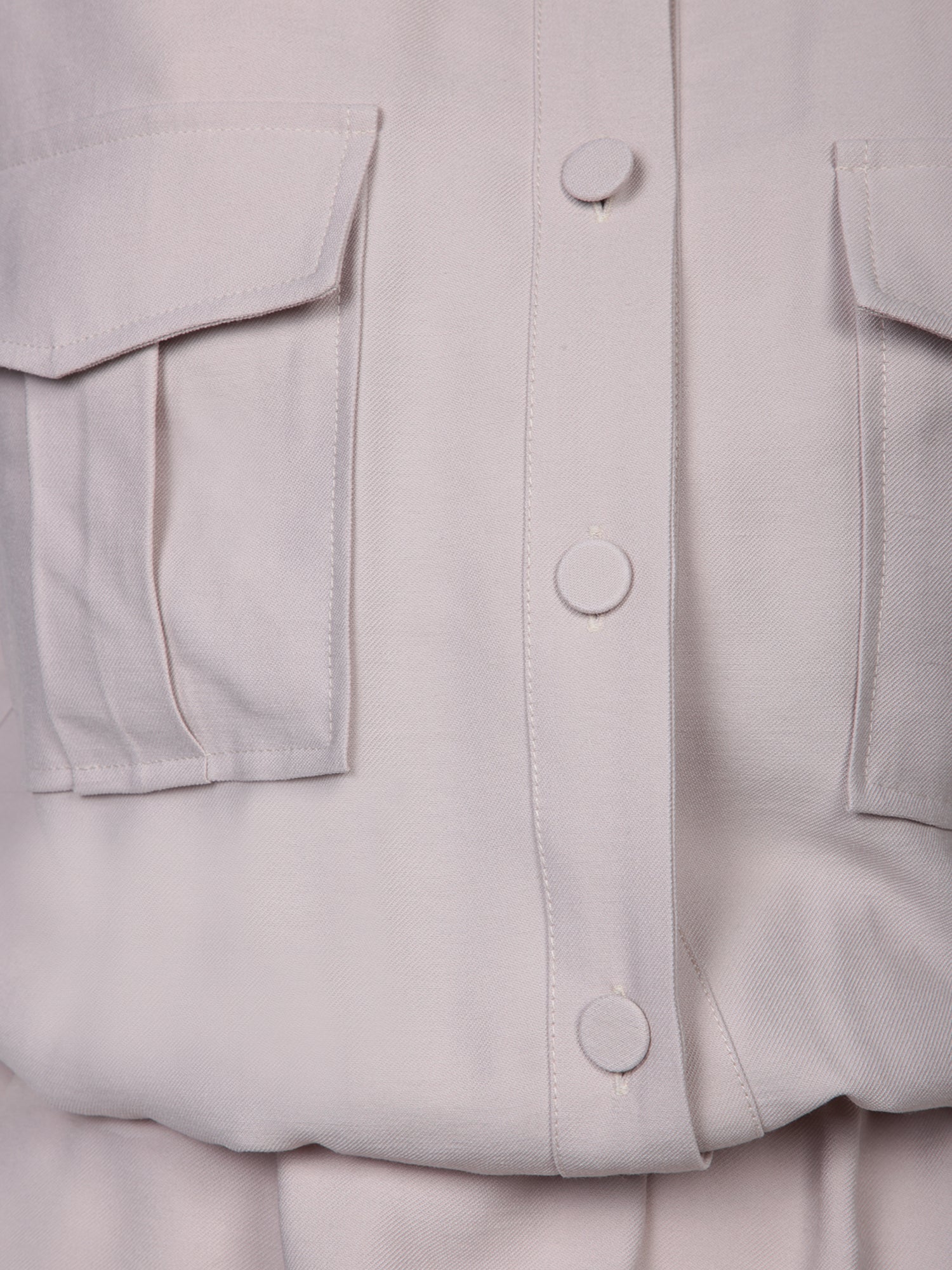 Midi chemisier dress with elbow-length sleeves. Made from viscose twill. Features a shirt collar, front button closure, and matching fabric belt.