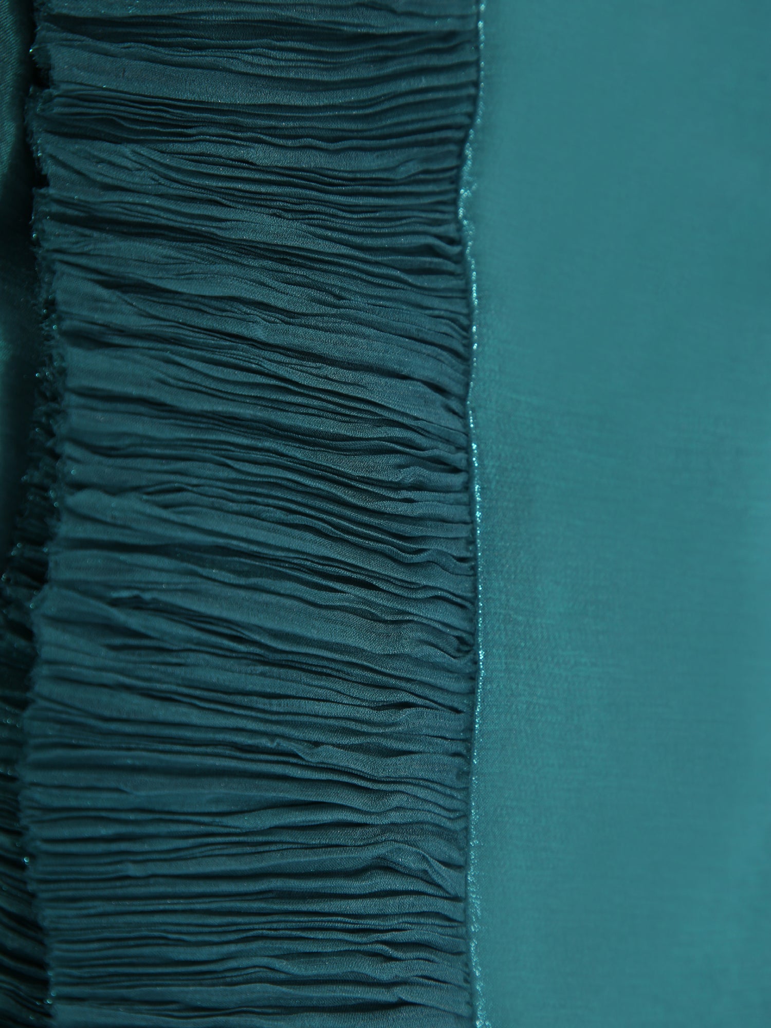 Satin finish. Pleated edges. Rectangular froma. Slogan tag patch. Color: teal Height: 65cm Length: 235cm