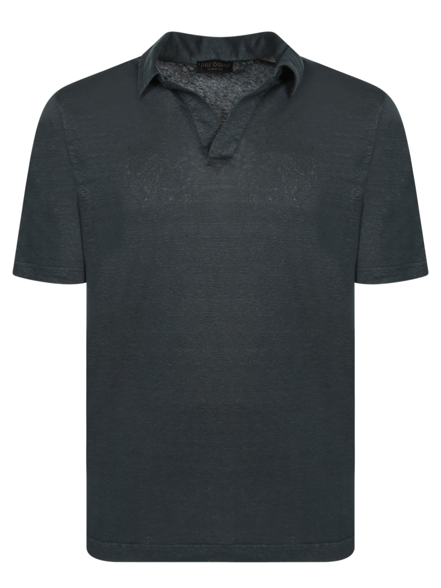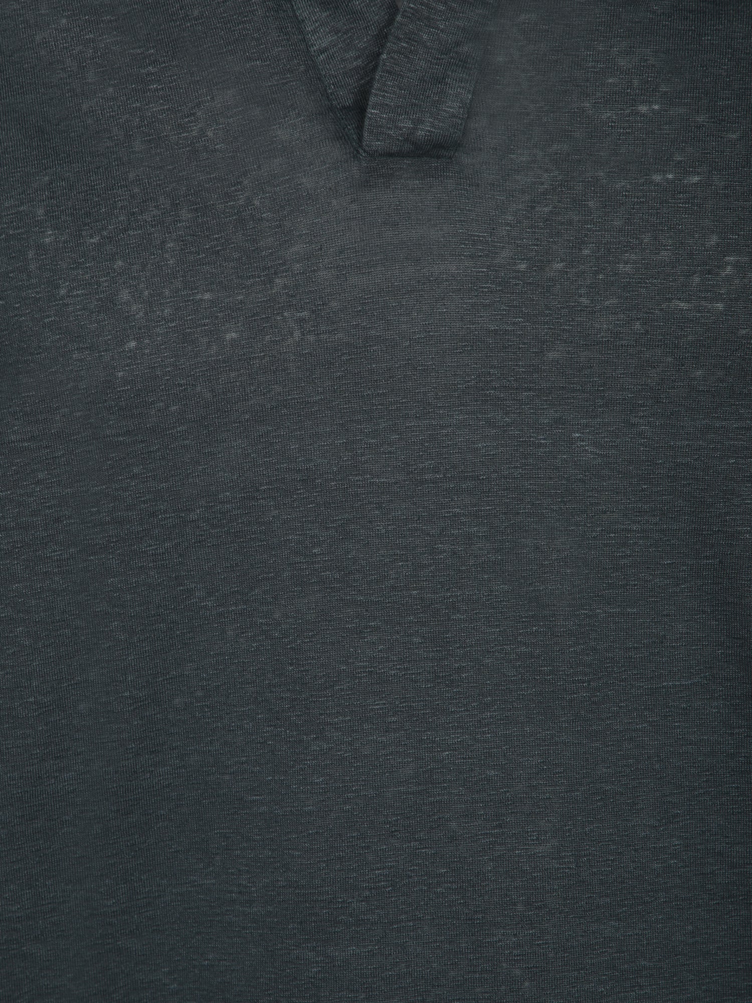 Short sleeve polo. Linen fabric. Classic collar with V-neck opening.