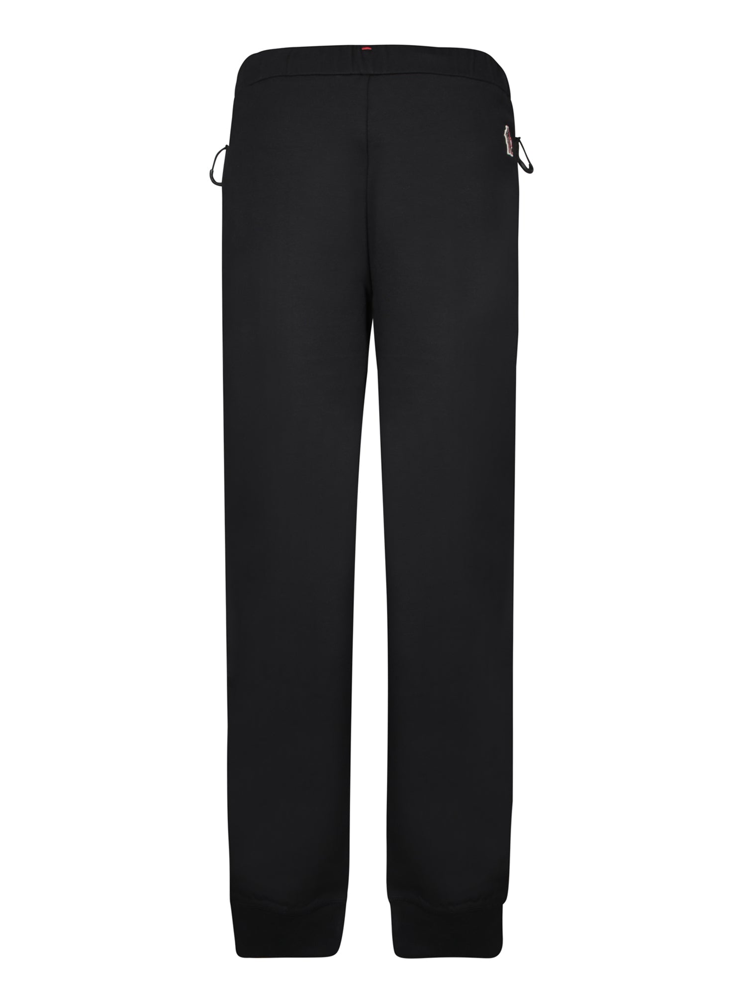 Black technical fabric trousers. Elastic waist with drawstring. Ribbed trim.