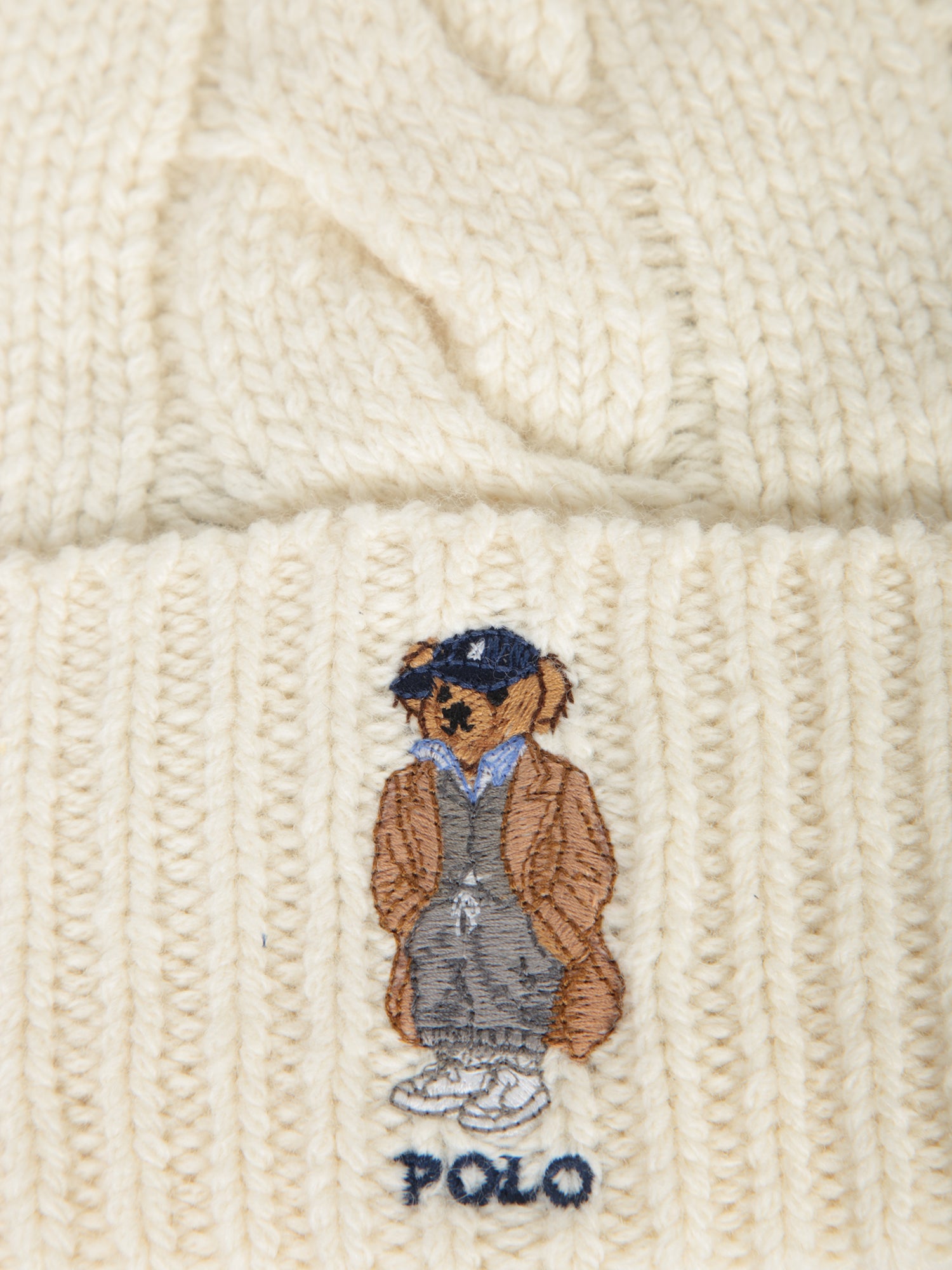 Chunky knit beanie. Fold-over hem. Embroidered logo appliqué.