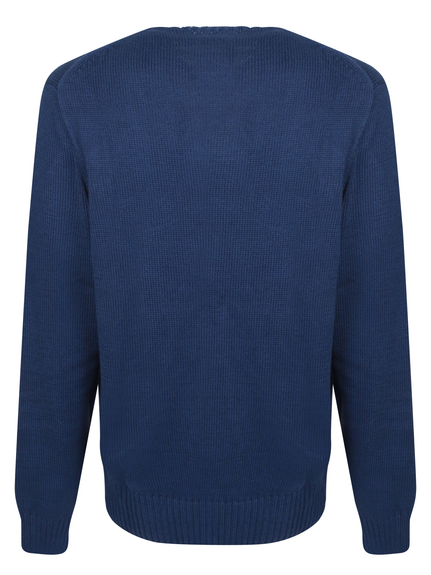 Ribbed knit sweater. Crew neck. Intricate teddy logo detail on the front.
