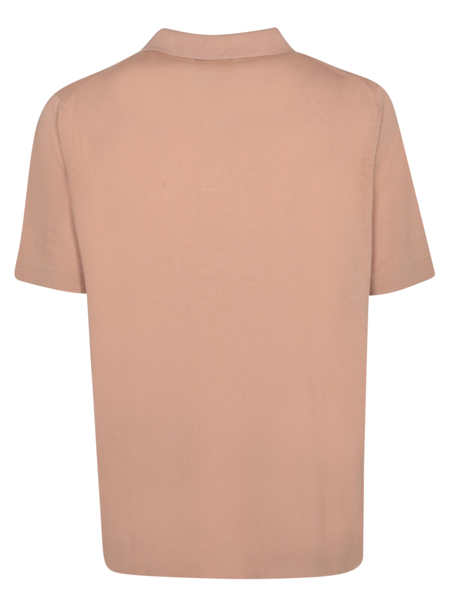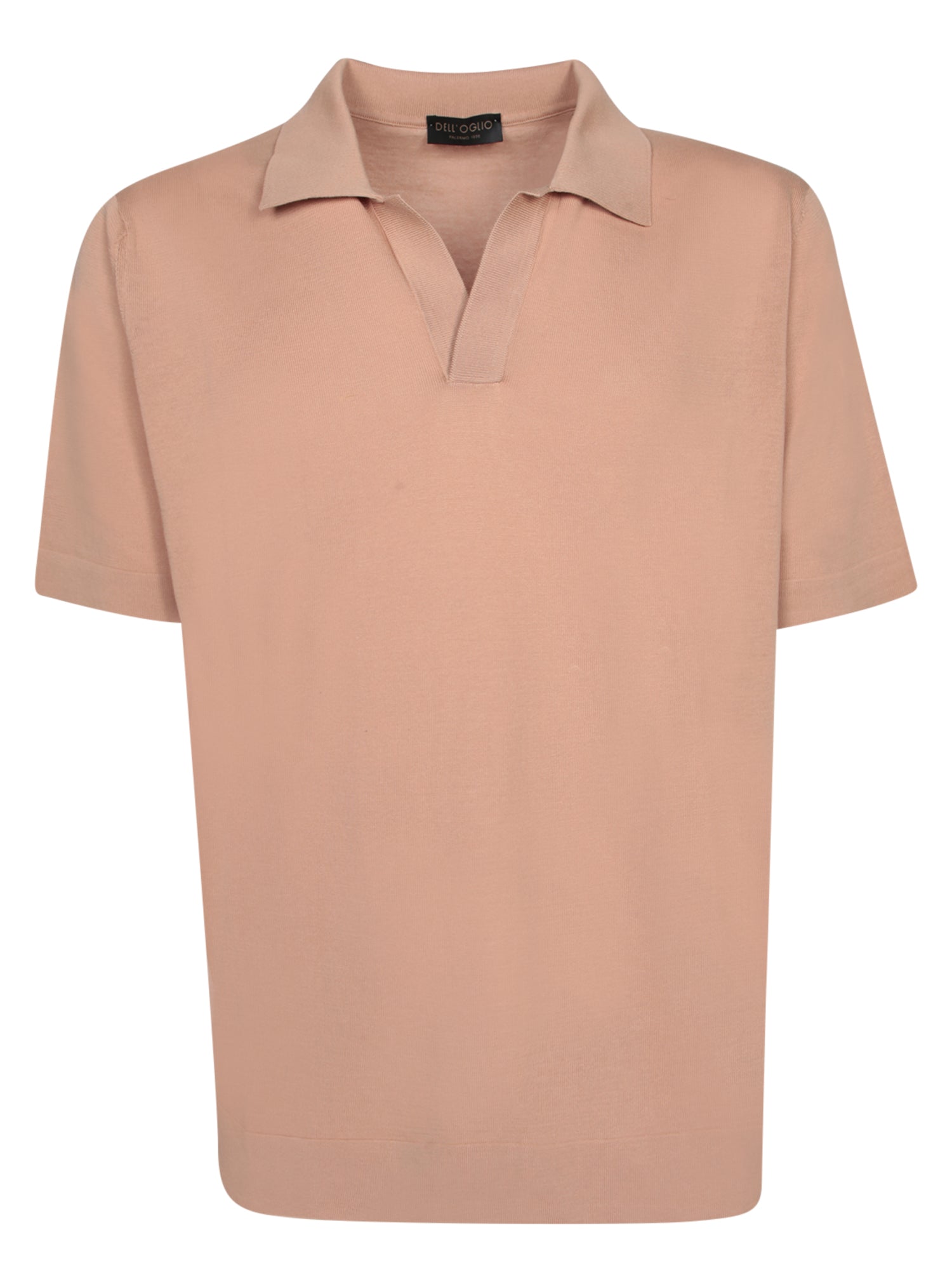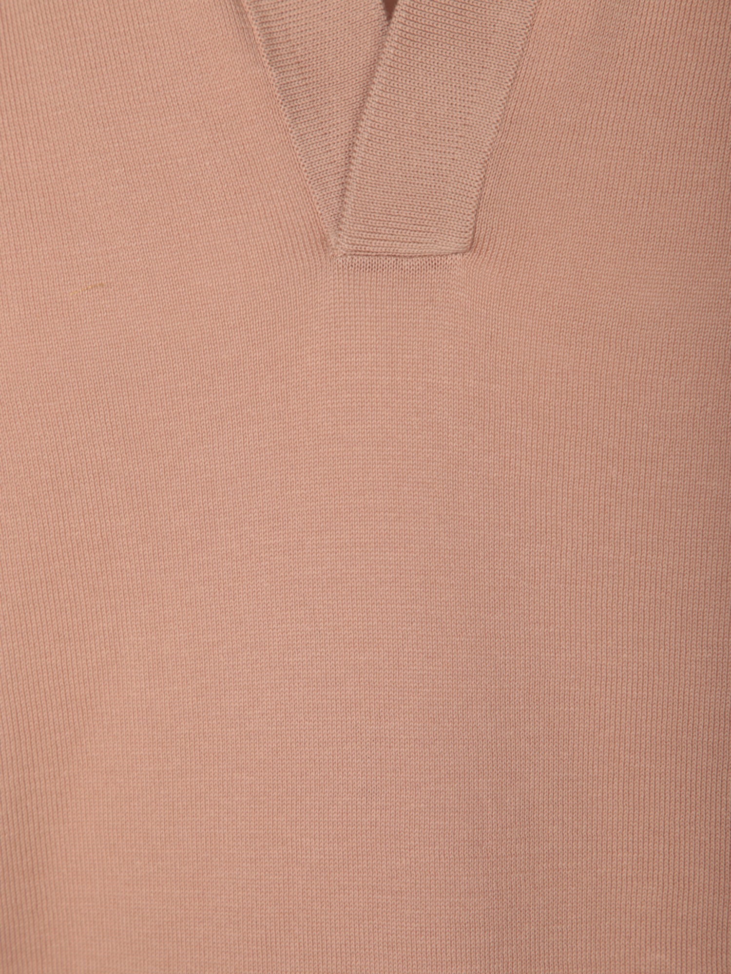 Short sleeve polo in crepe fabric. Terracotta color with open point collar.