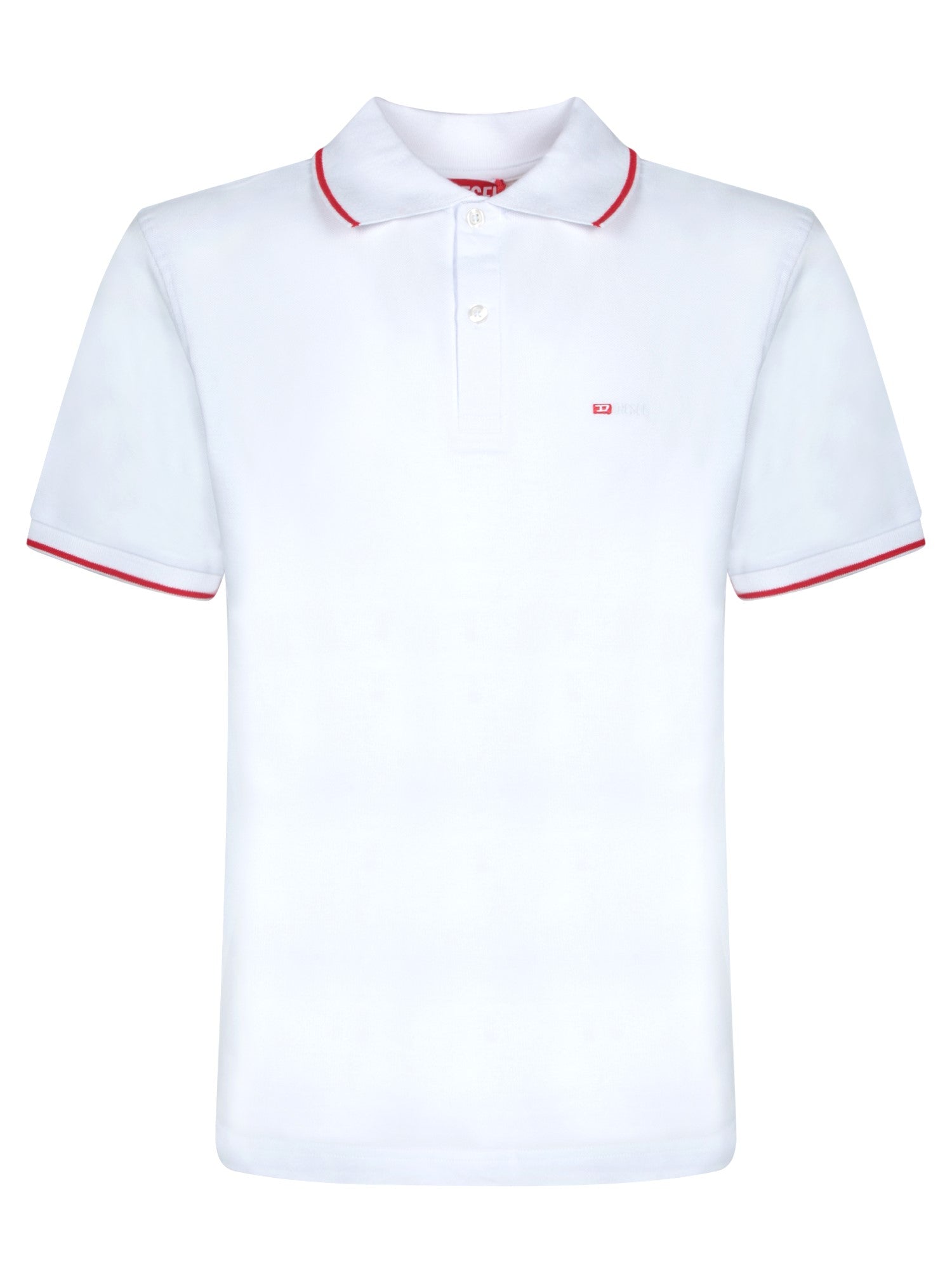 This elegant Diesel polo features distinctive red details on the collar and sleeves, perfect for a casual yet sophisticated look.