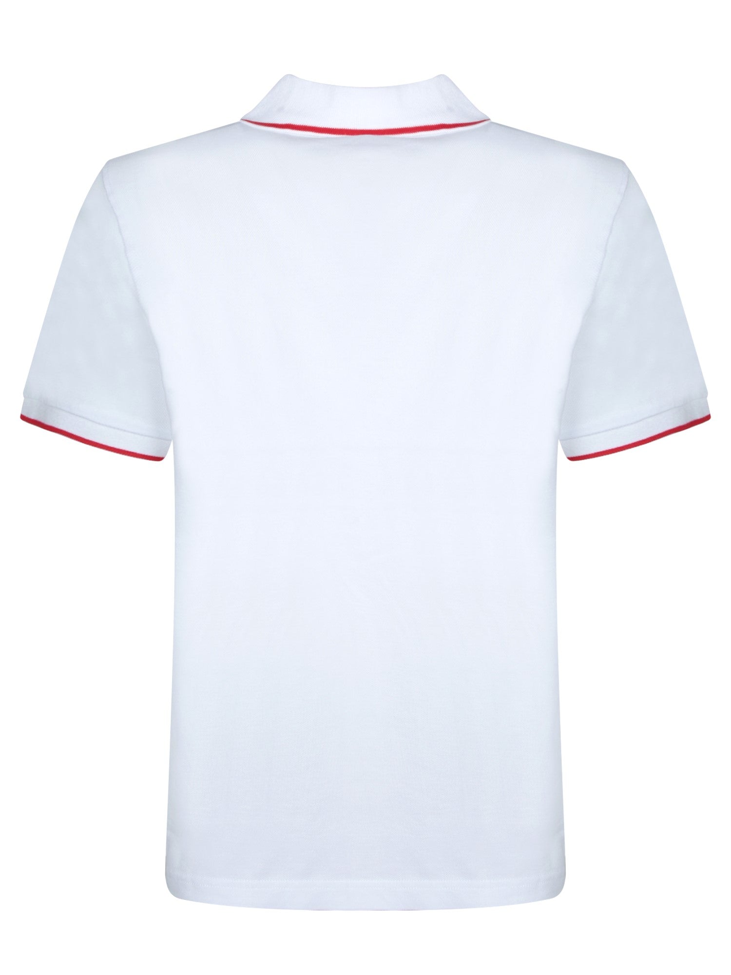Cotton polo with contrasting red details. Classic collar and button closure. Short sleeves with red trim.