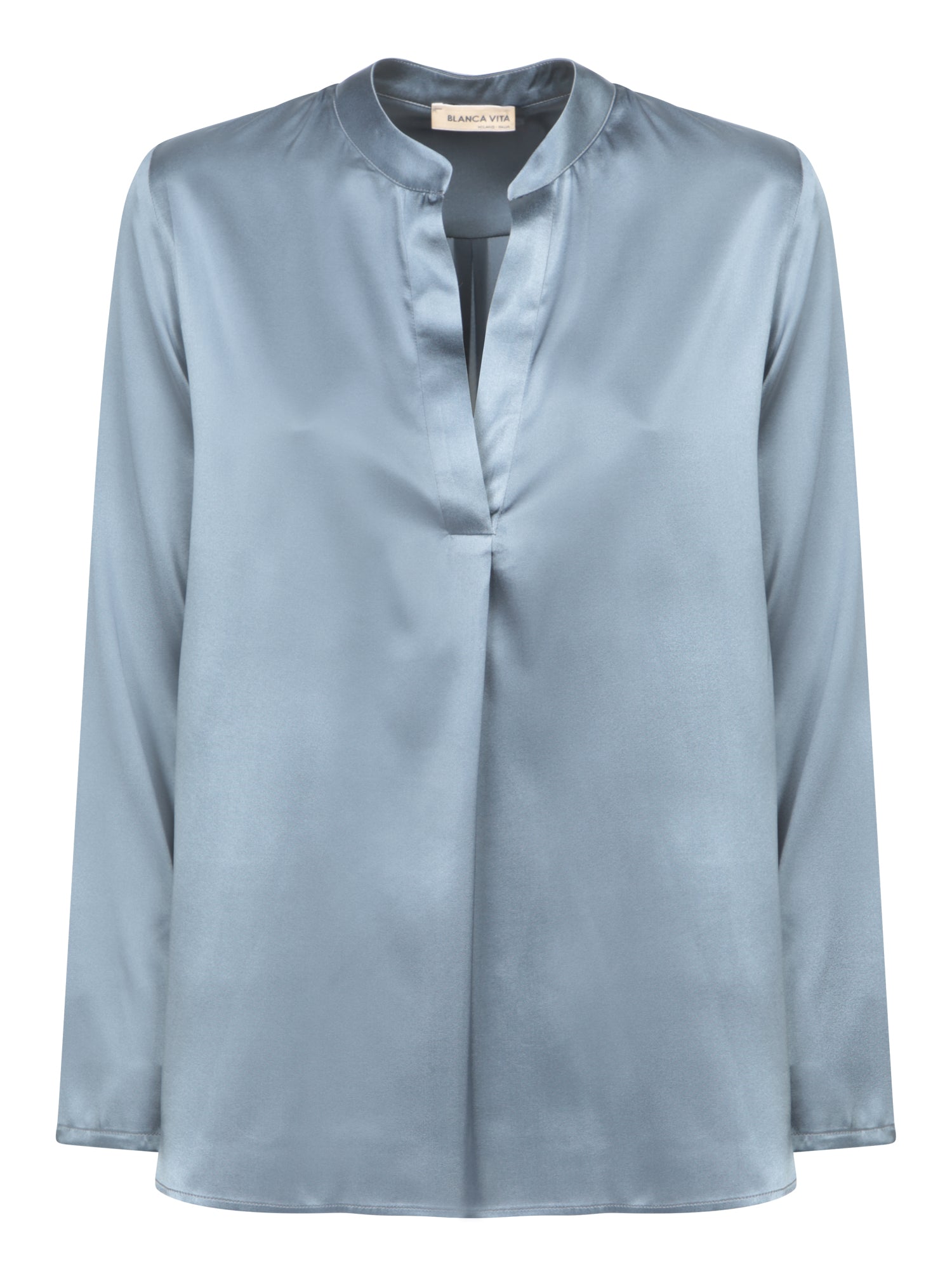 This Blanca Vita shirt blends elegance and comfort, crafted in refined silk with a serene shade of blue, perfect for both formal and casual occasions.