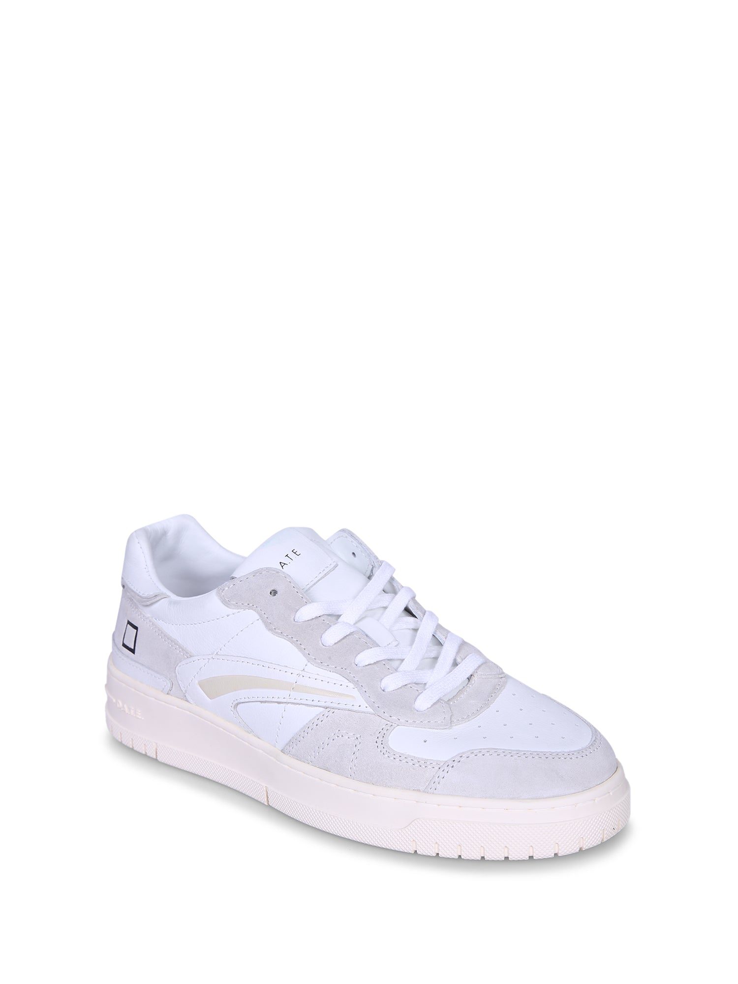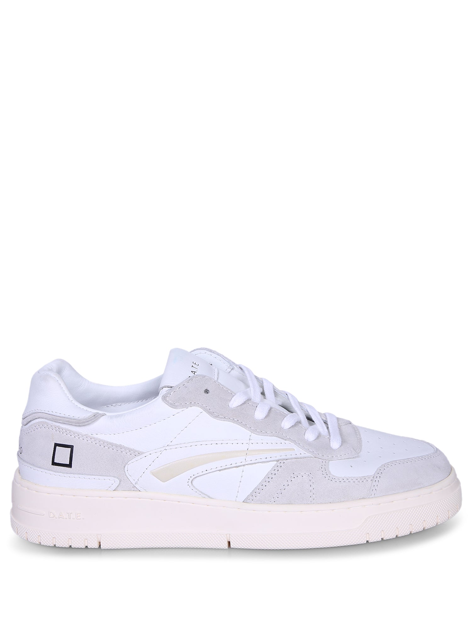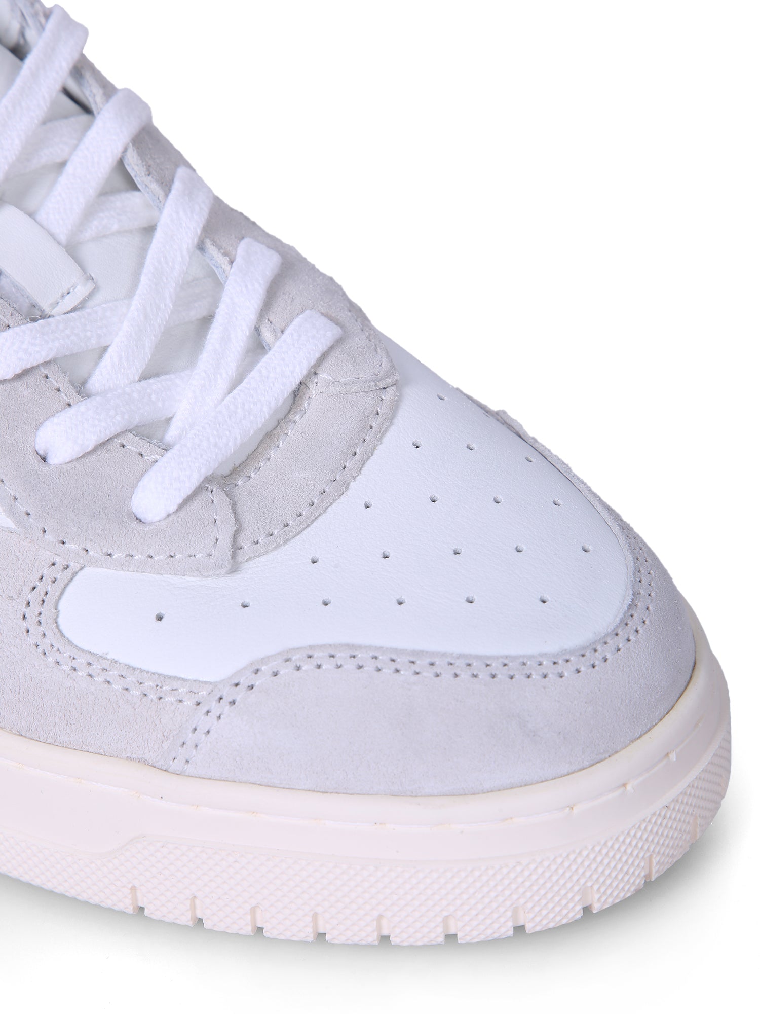 Low-top design with lace-up closure. White leather upper with light grey details. Rubber sole.
