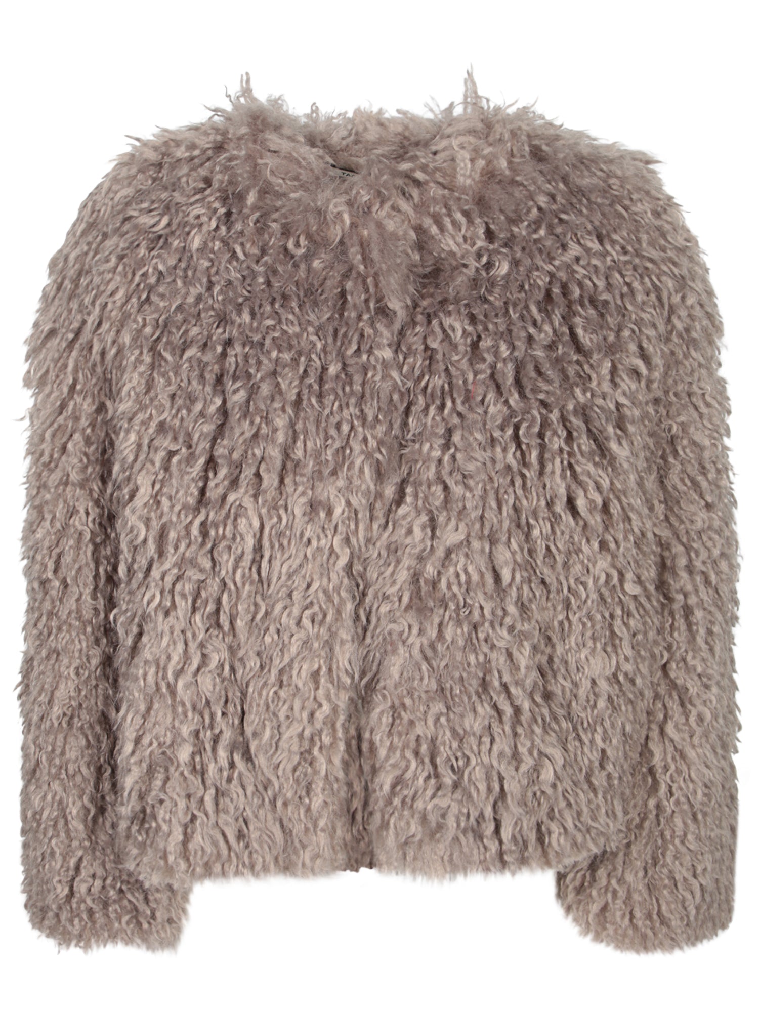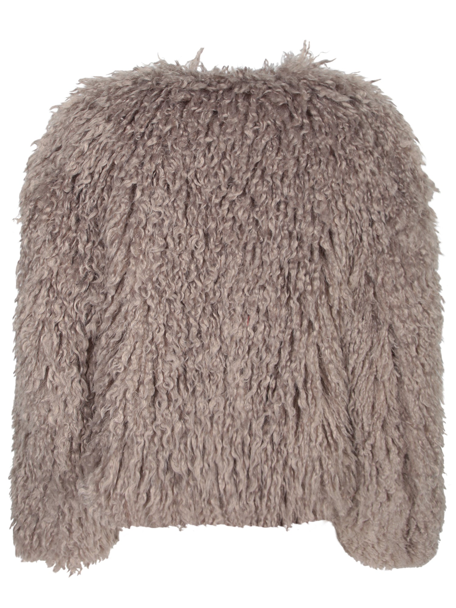 Tortora eco-fur bomber. Long sleeves, front hook closure.