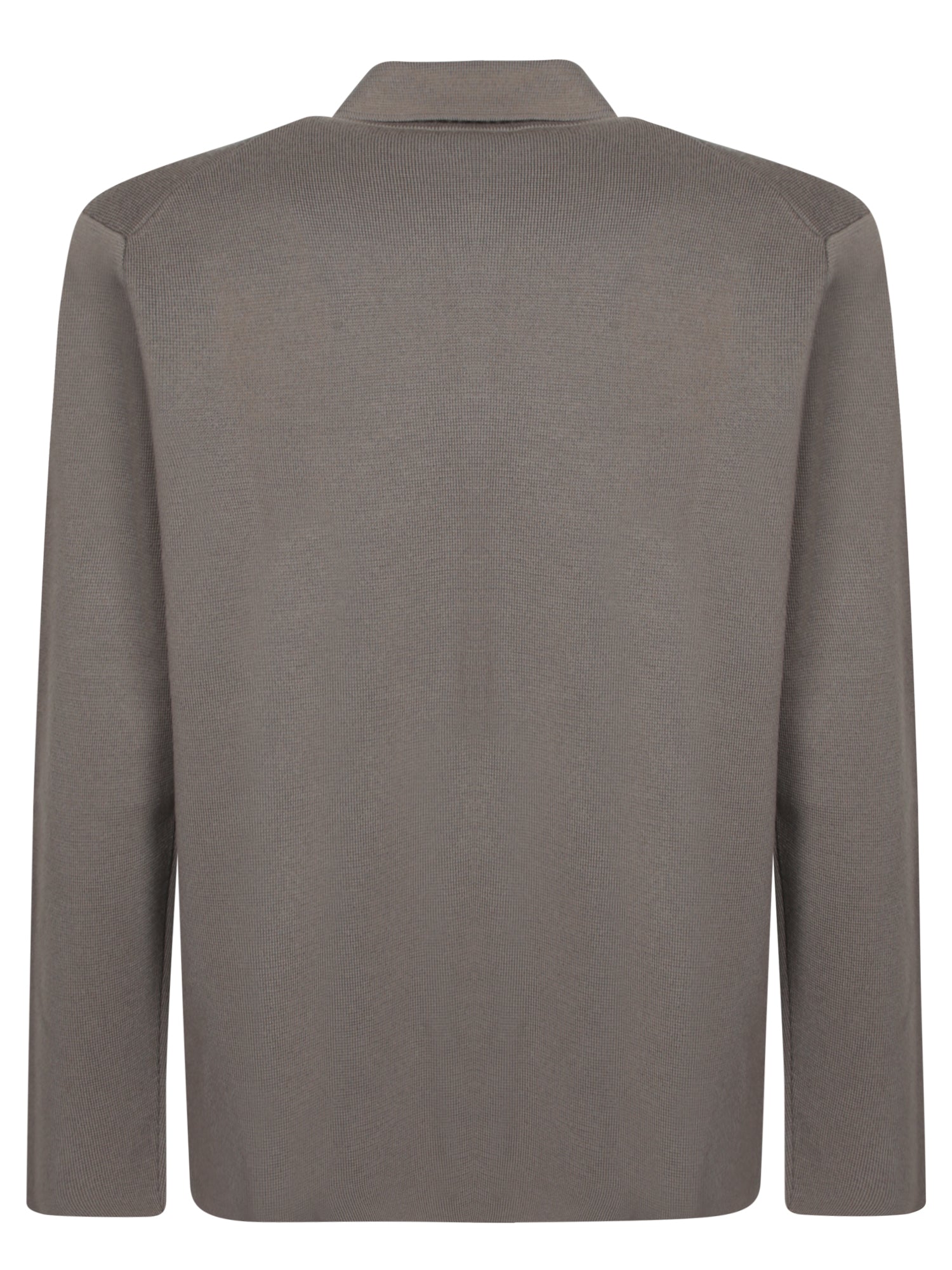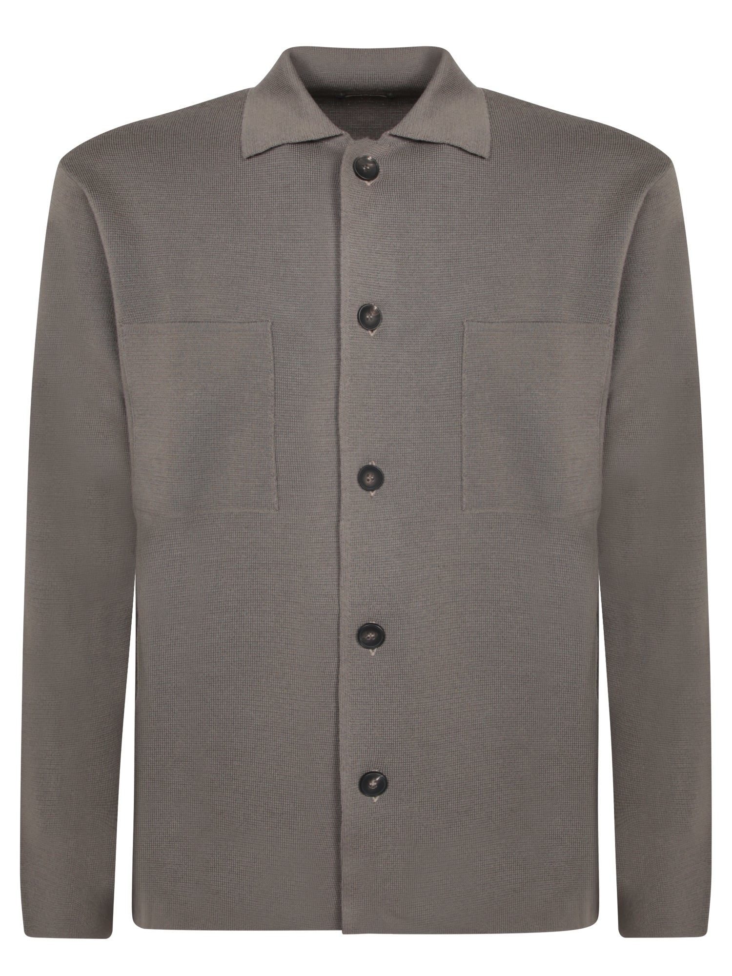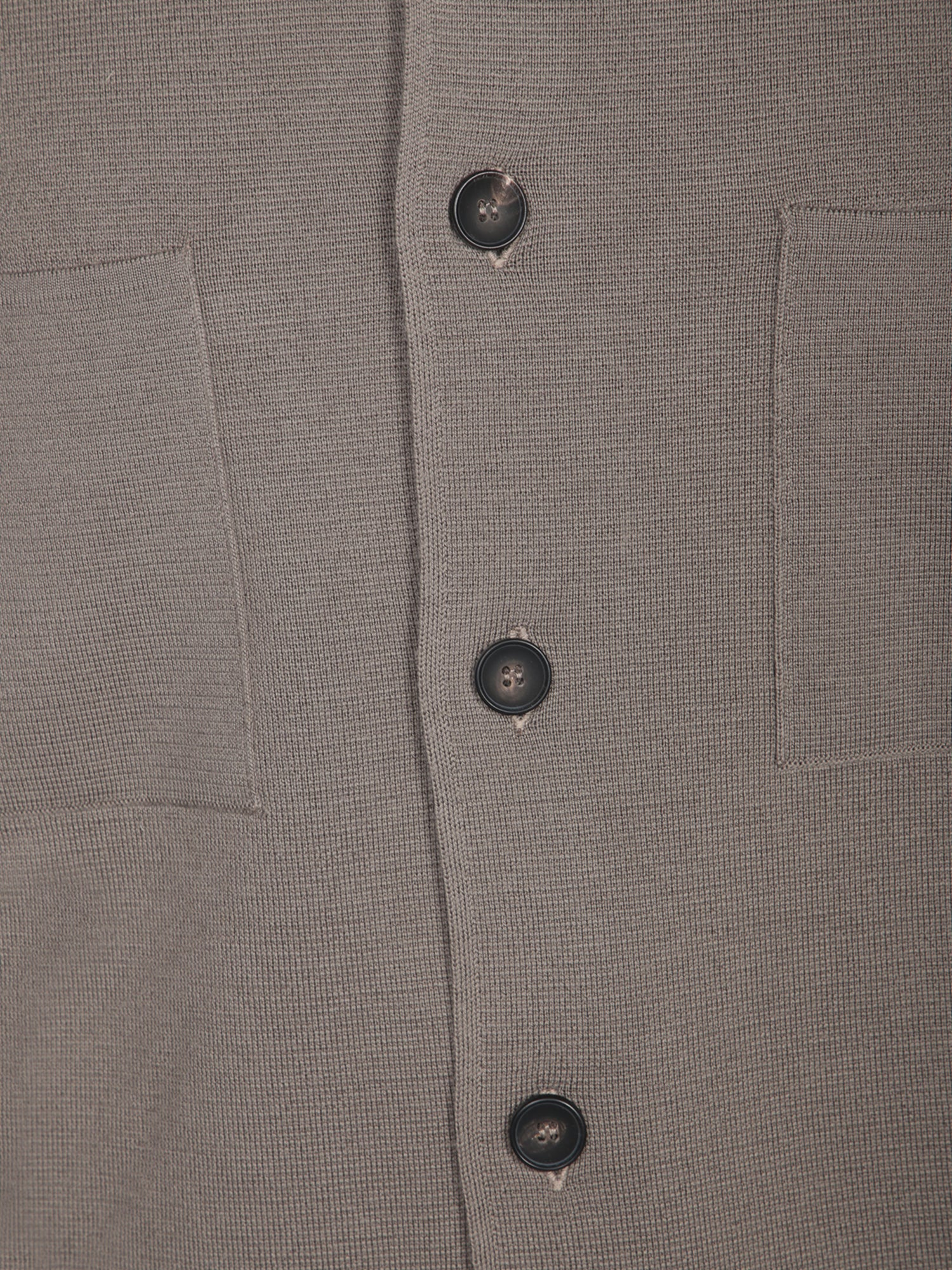 Long sleeve overcoat with button closure. Two front patch pockets.