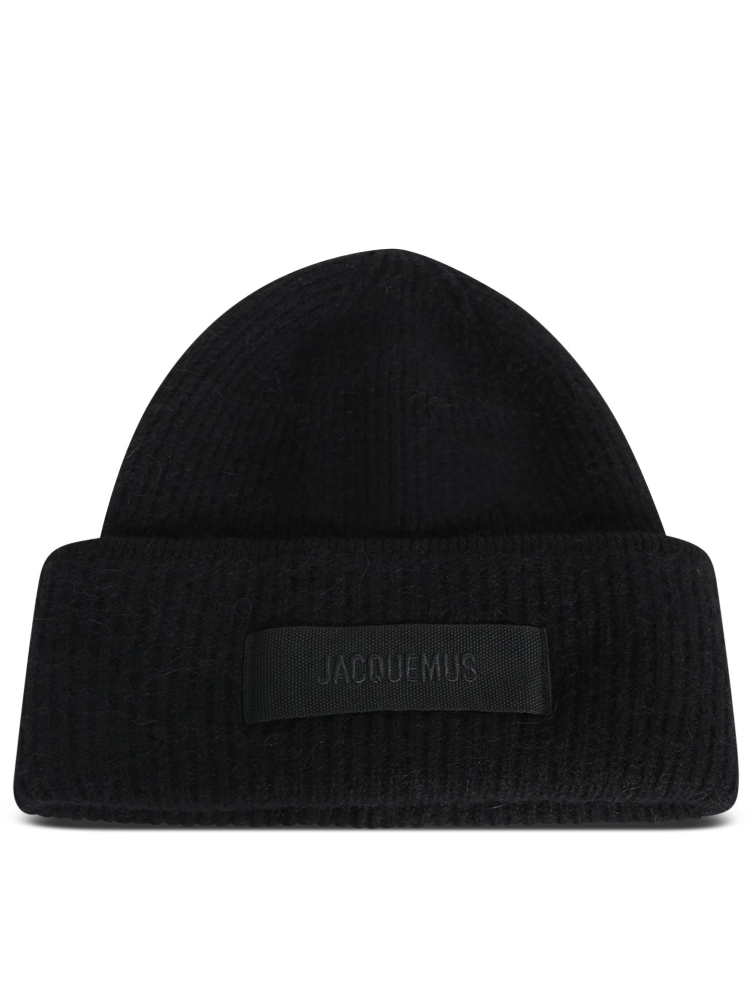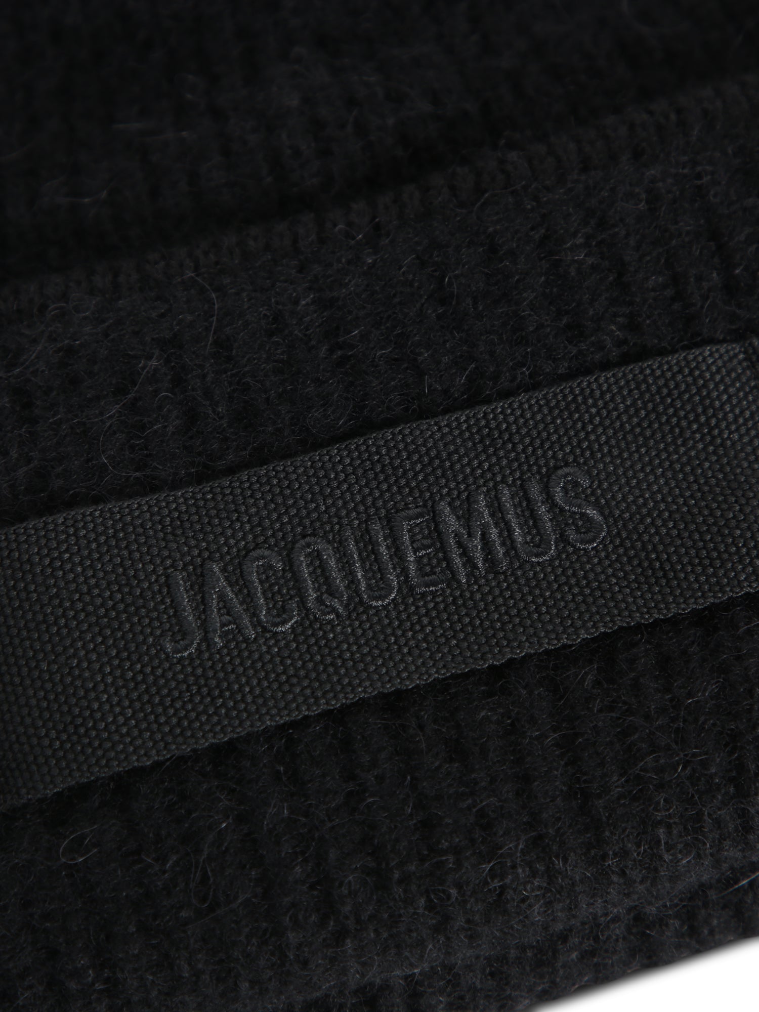 Knitted hat with cuff. Made from soft wool fabric. Jacquemus logo on the front band.