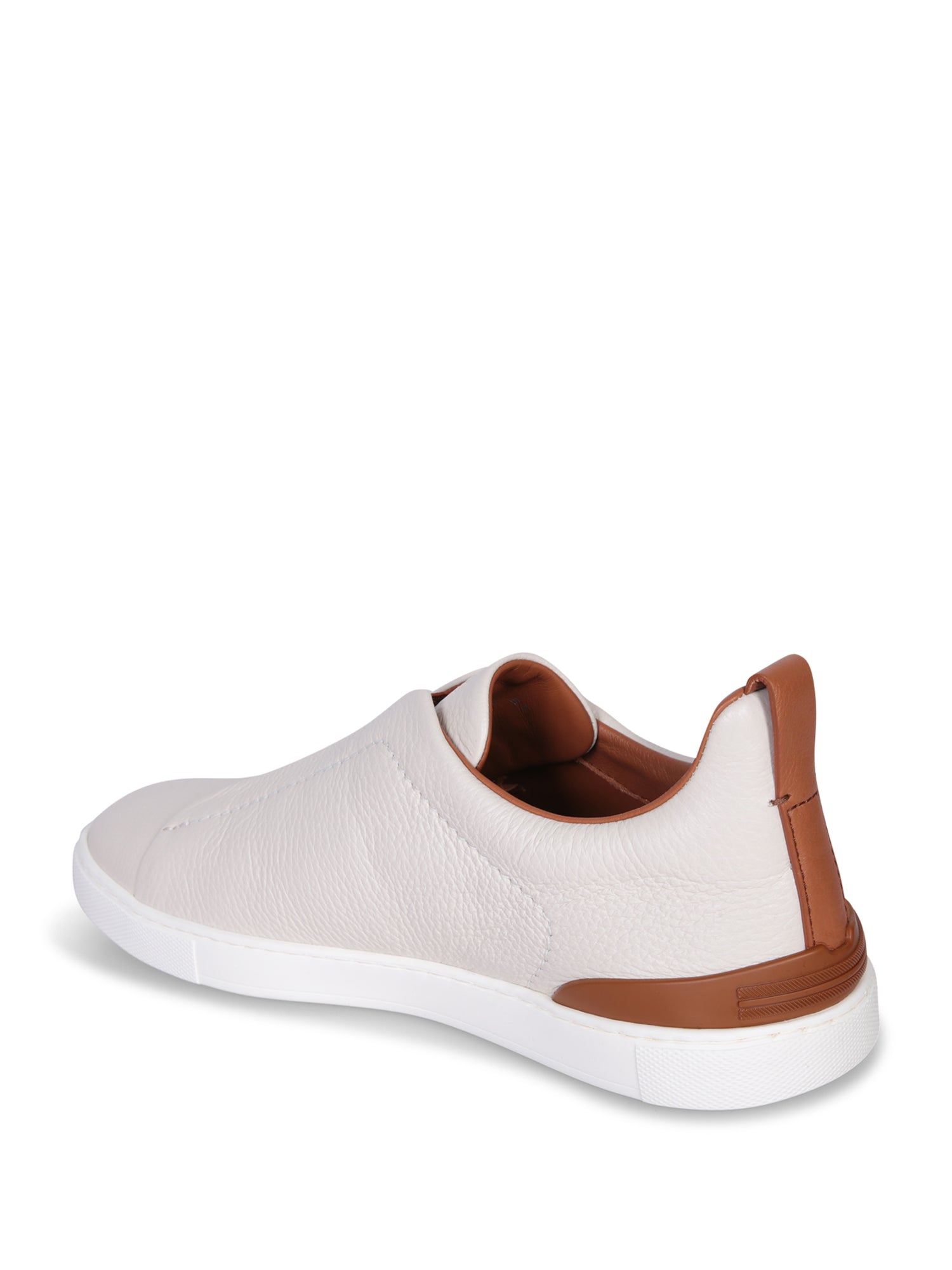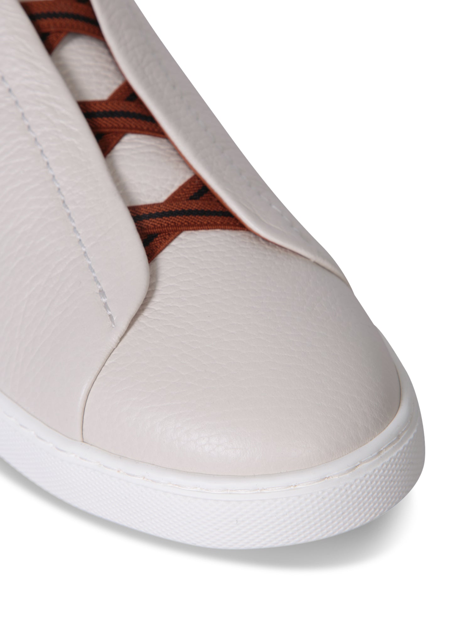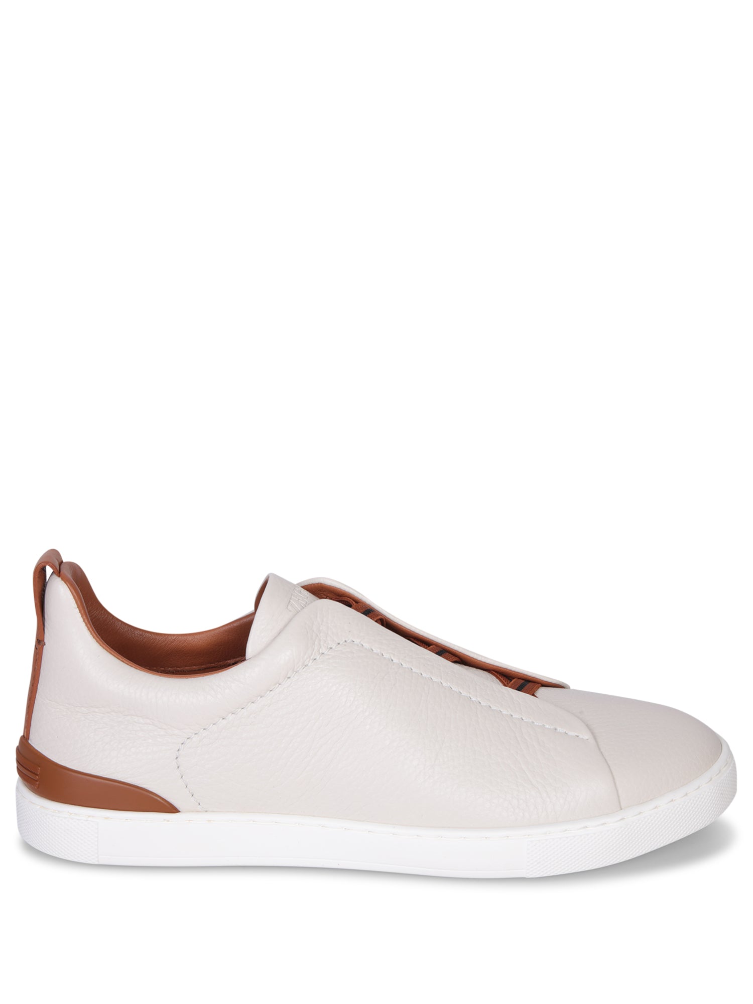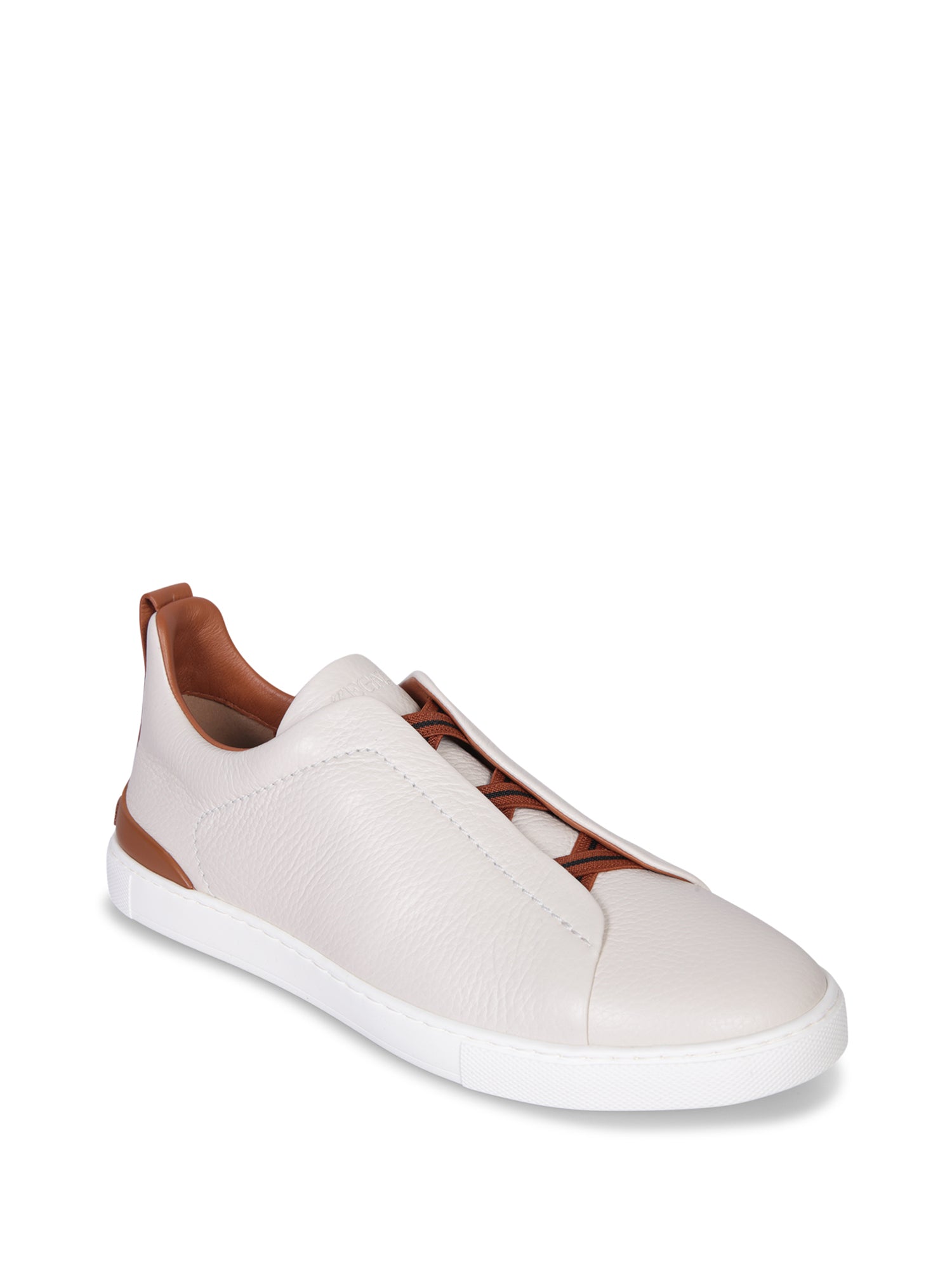 Slip-on leather sneakers. Iconic triple-stitch detail. Laceless design with side elastic panels.