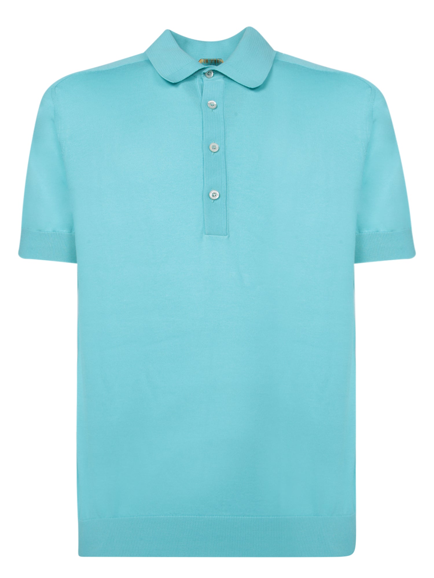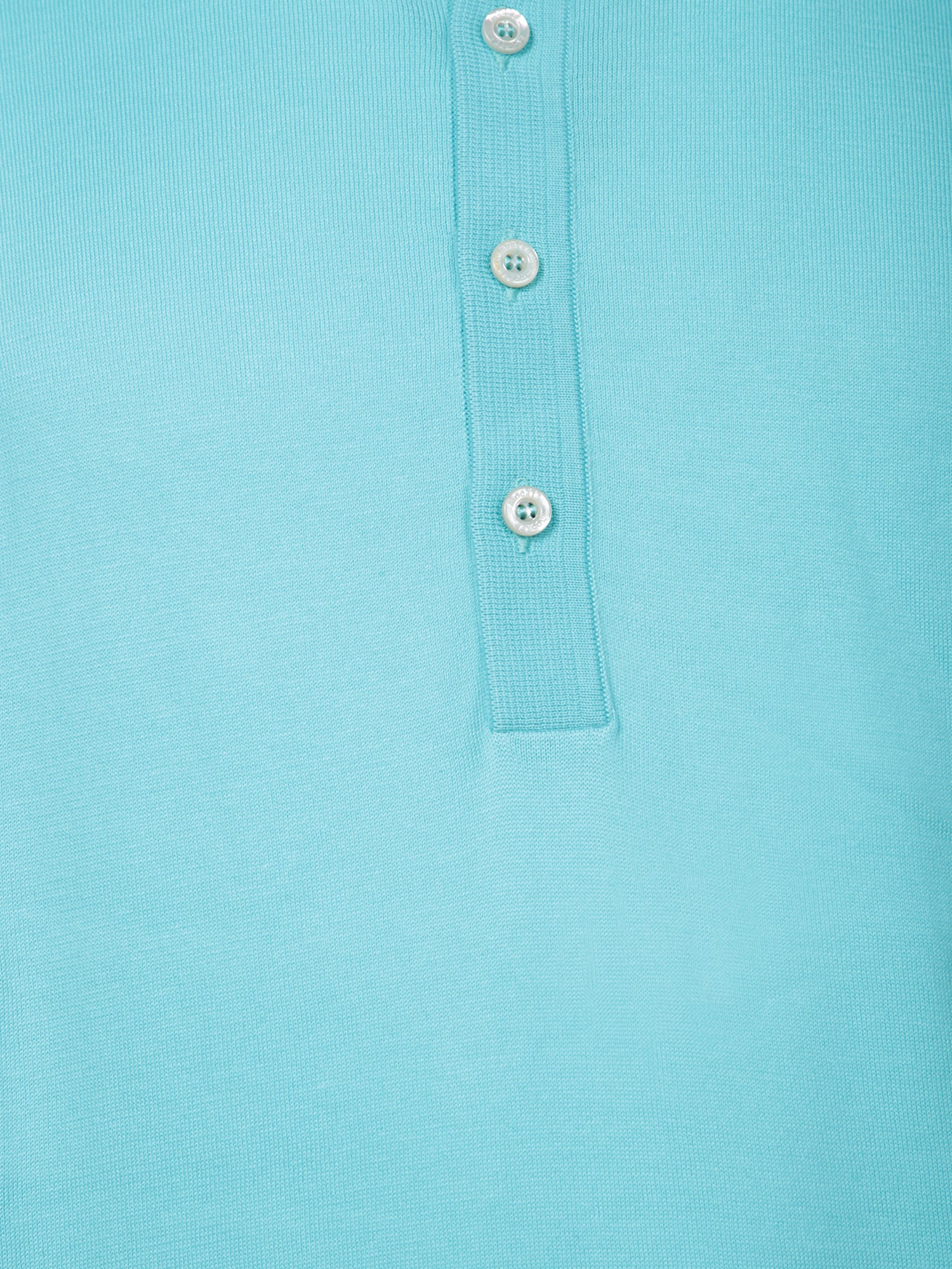 Exquisite Moorer polo in fine Sea Island cotton, featuring a vibrant turquoise color that embodies summer elegance. Its clean design and attention to detail highlight a casual yet sophisticated look.