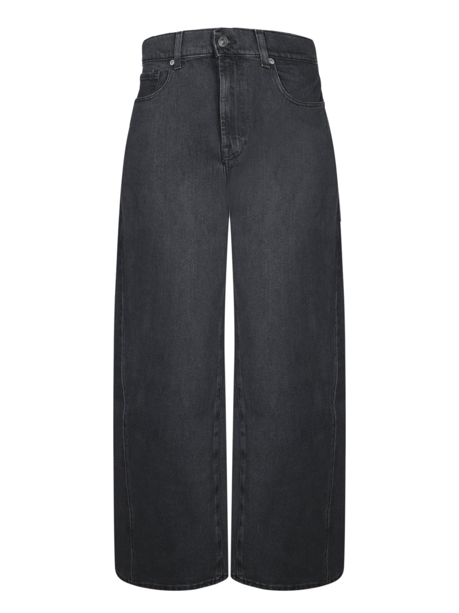 Wide fit. Button and zip closure. Five-pocket design.