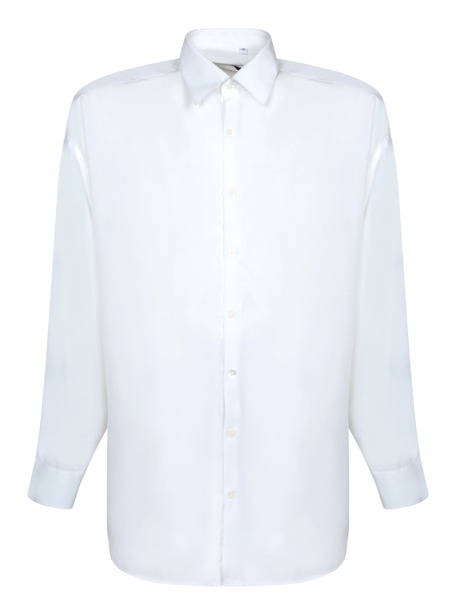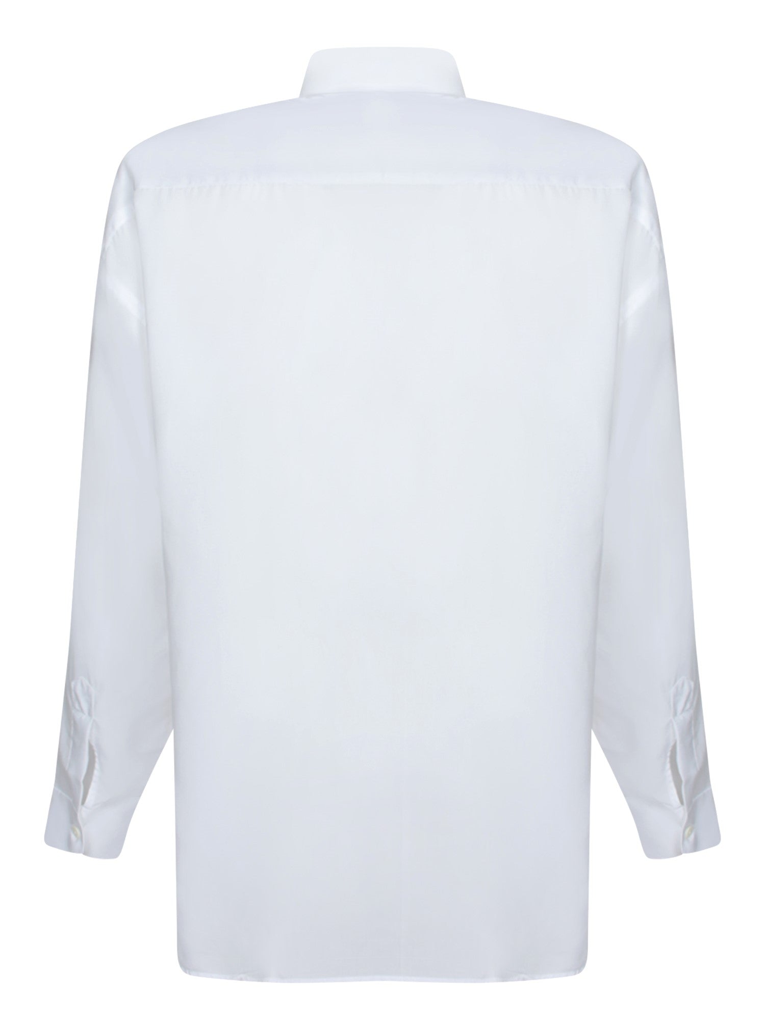 A bespoke Costumein shirt crafted in white lyocell, featuring a broad cut for a contemporary and sophisticated look. Perfect for elegant or casual chic pairings.