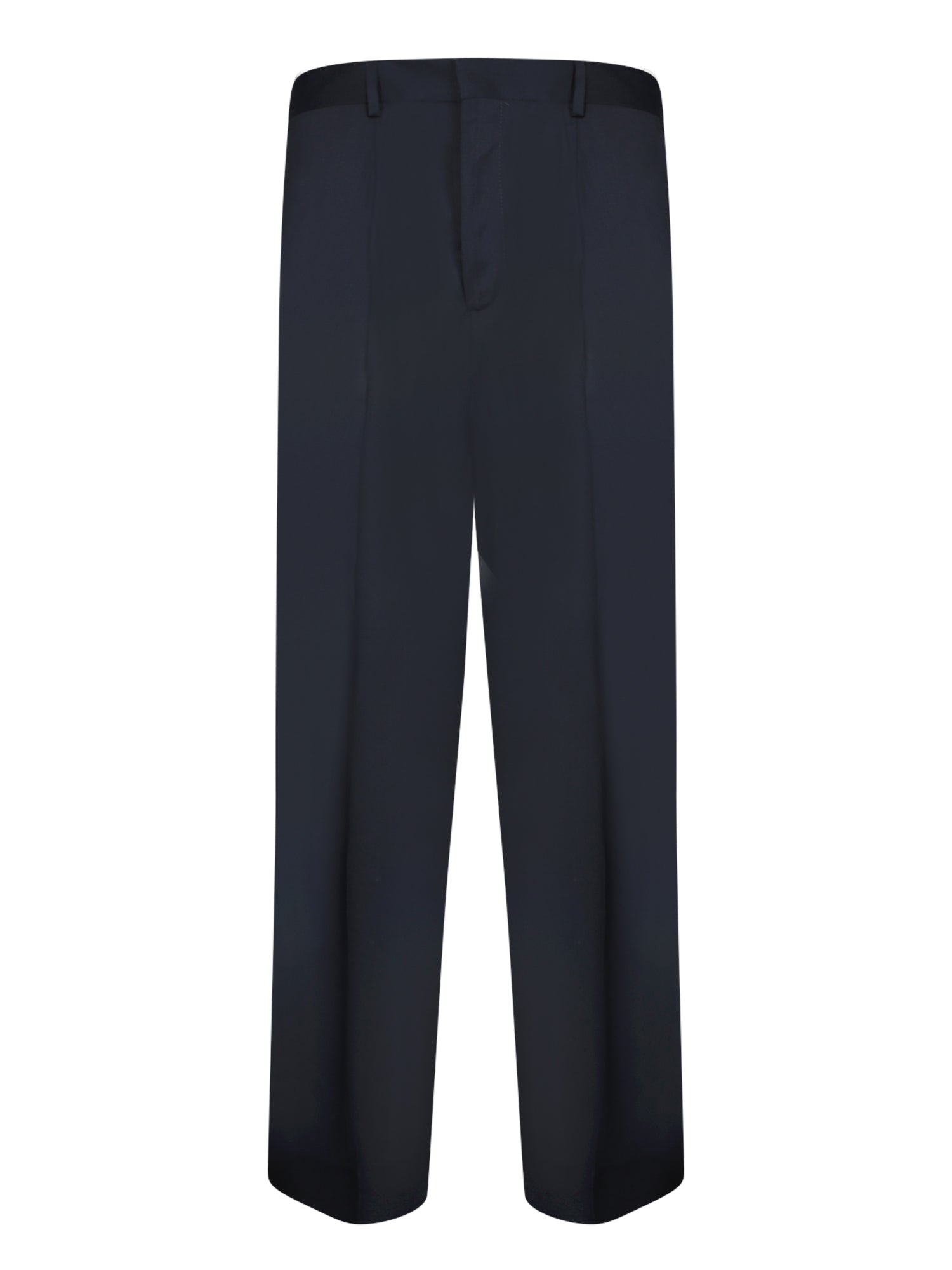 Straight leg trousers. Side pockets. Belt loops at waist.