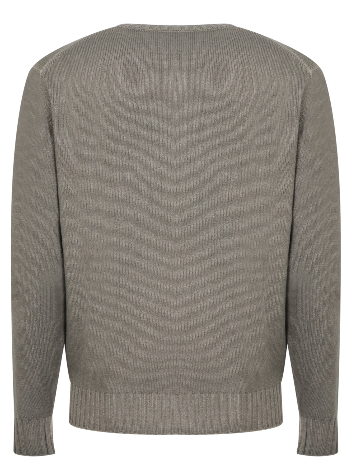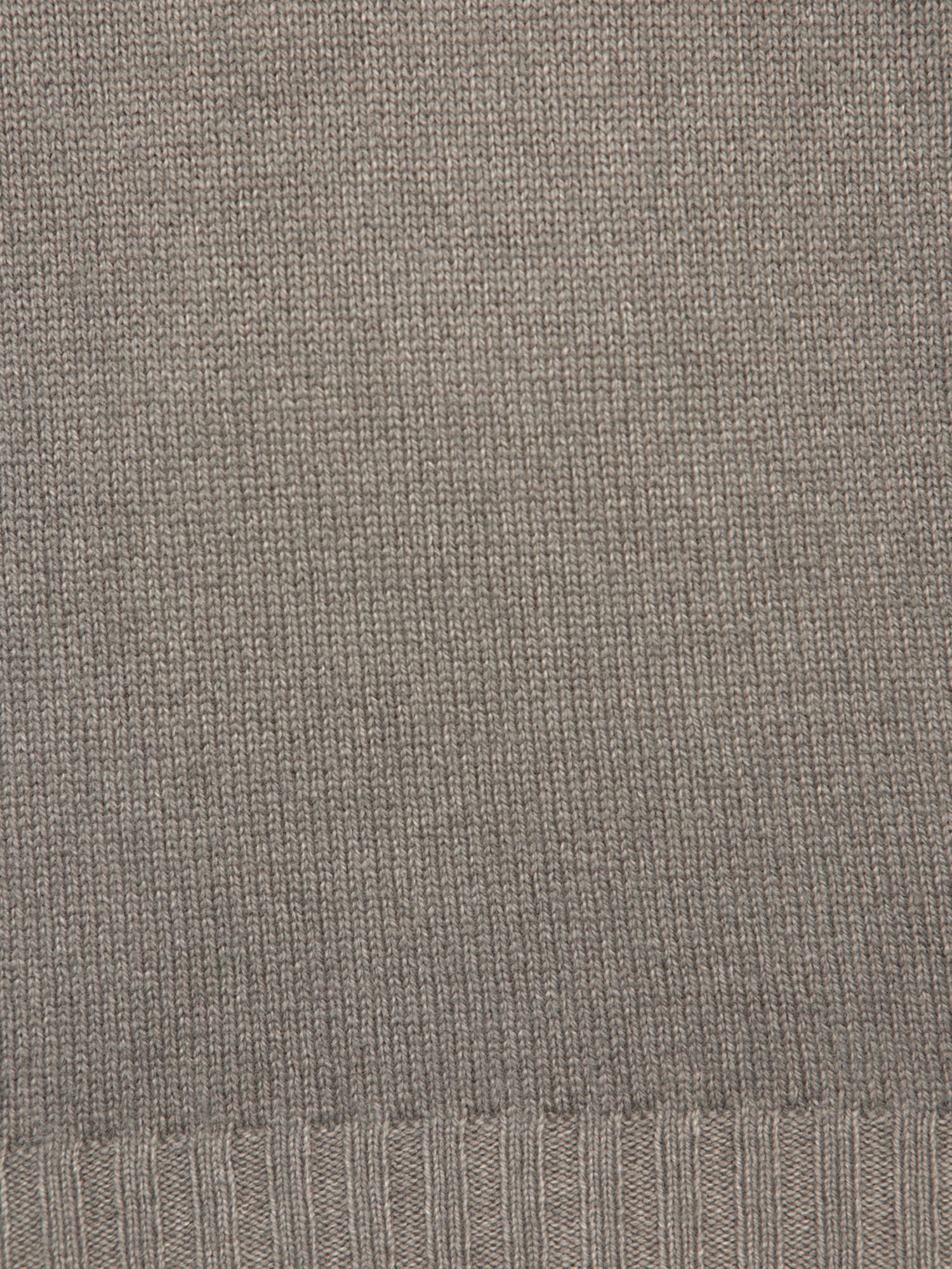 Crew neck sweater in cotton blend. Ribbed finishes on collar, cuffs, and hem. Solid grey color.