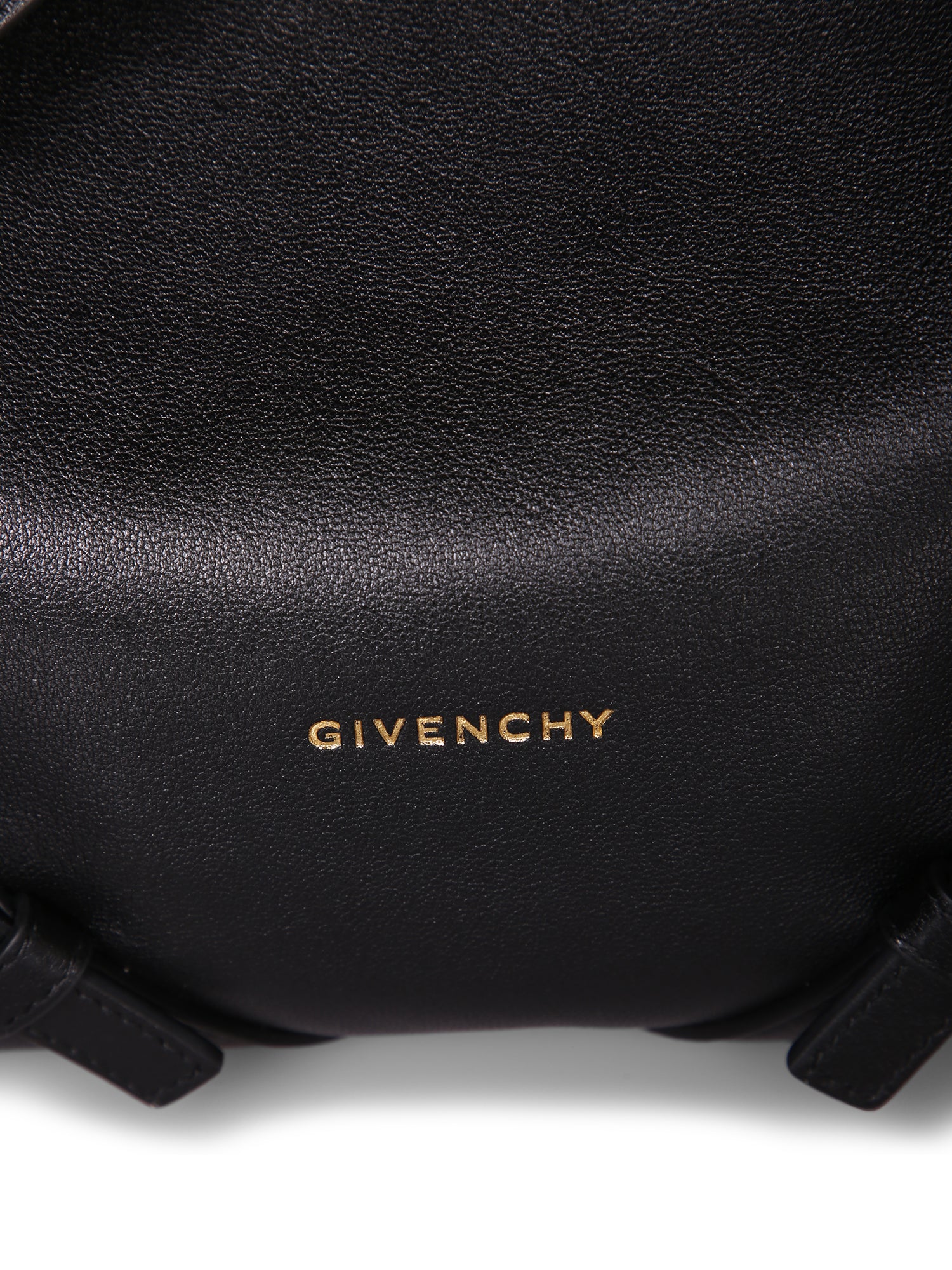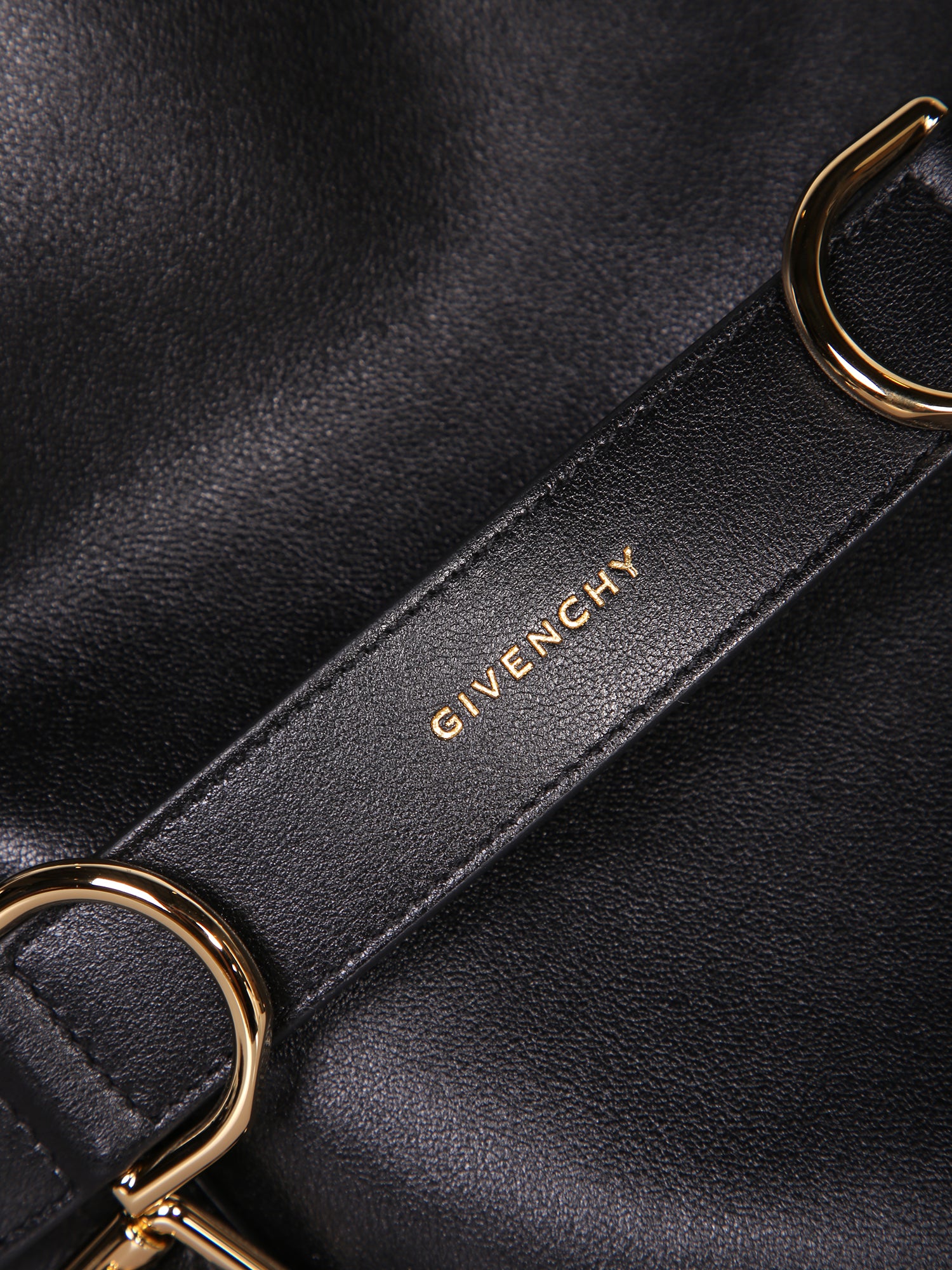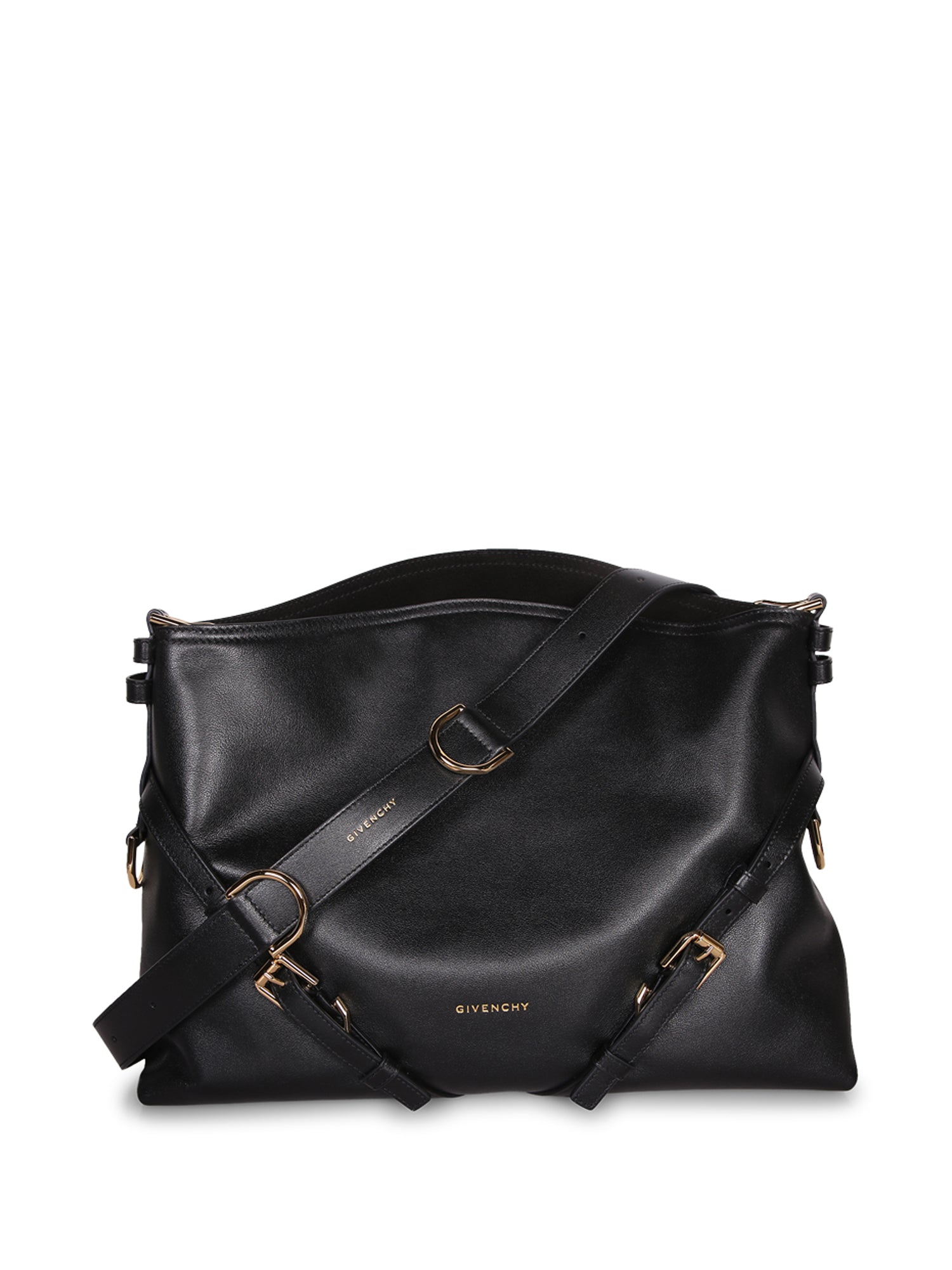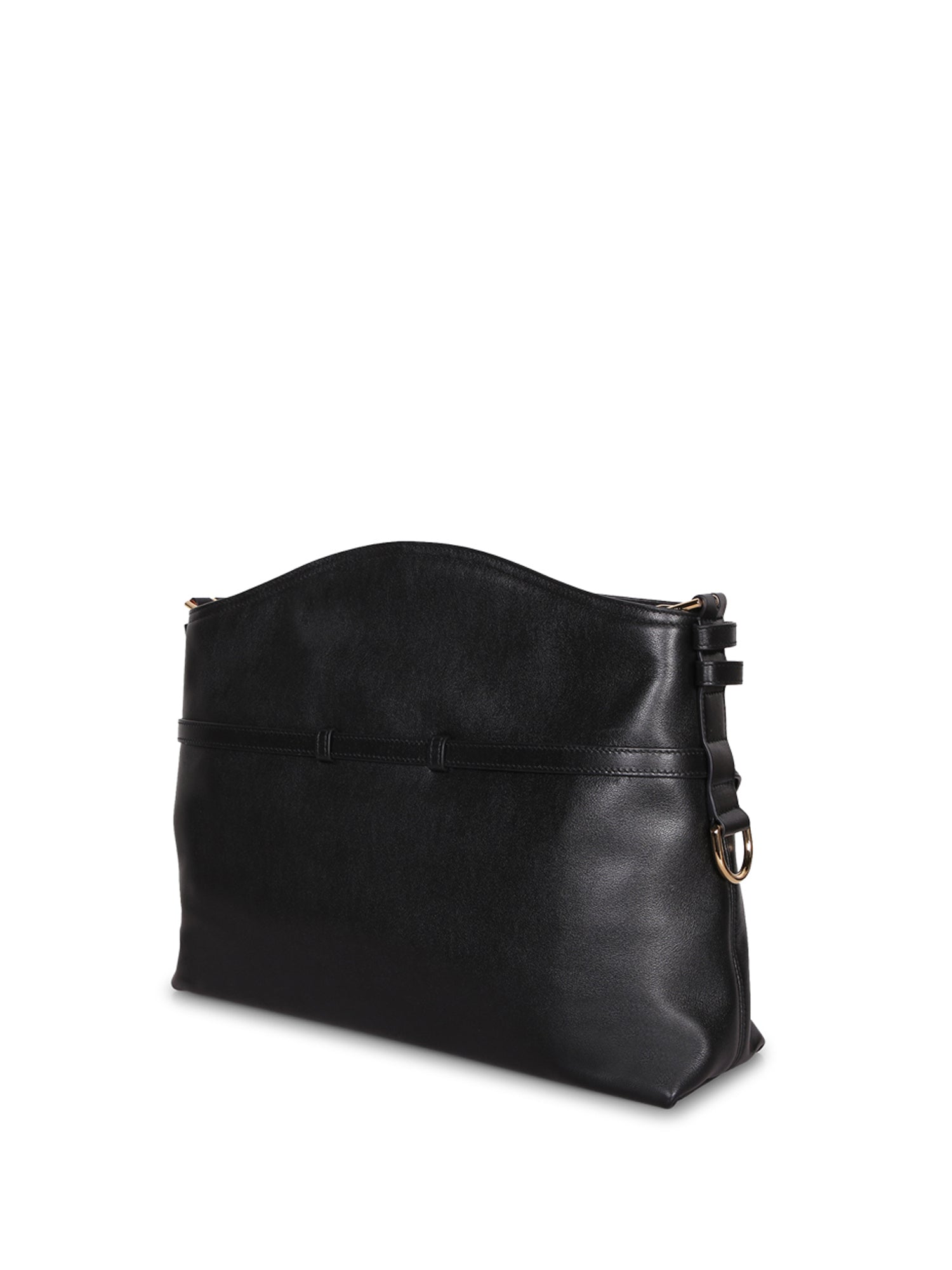 Smooth leather bag. Adjustable and removable shoulder strap. Top magnetic closure.