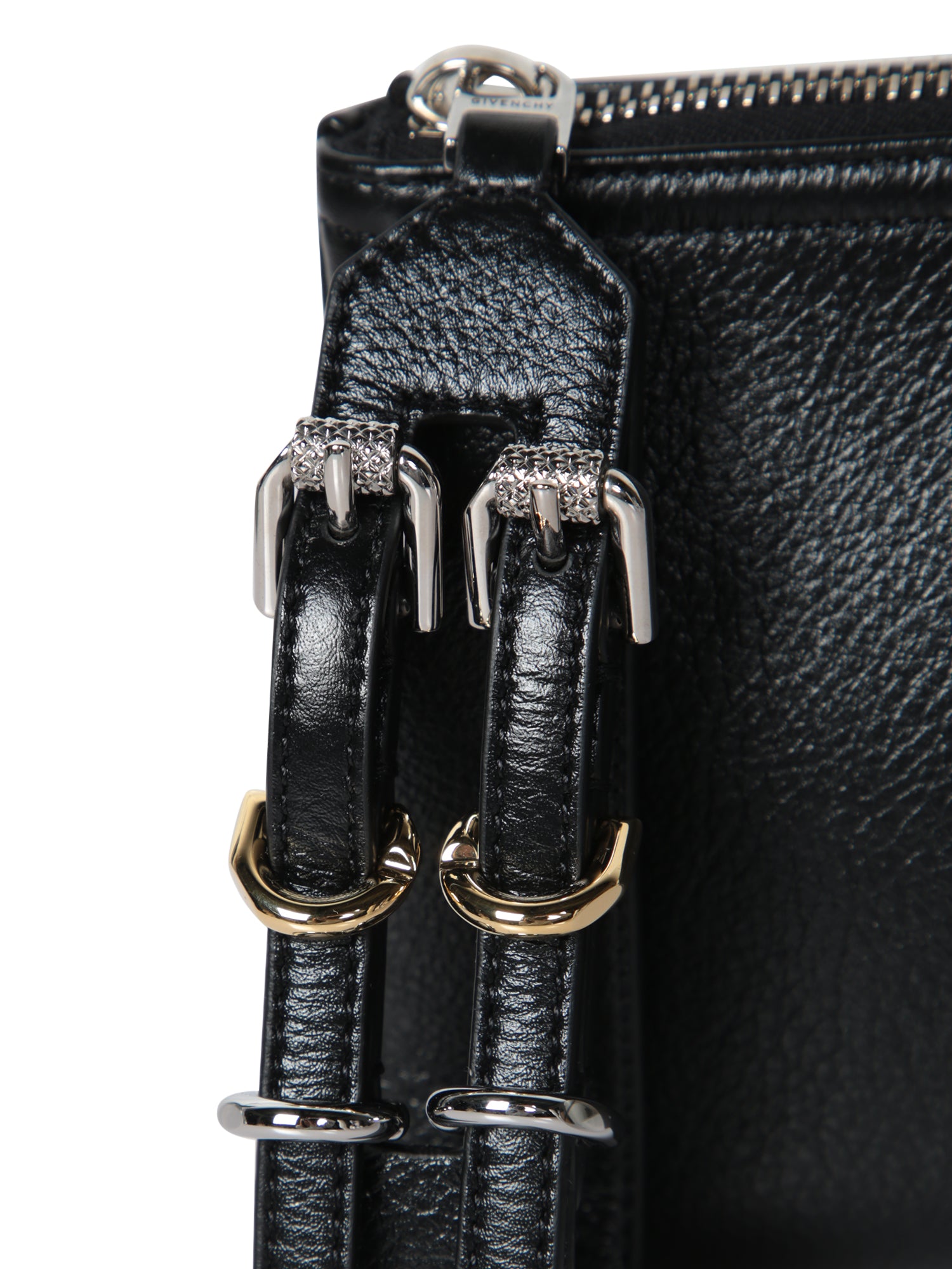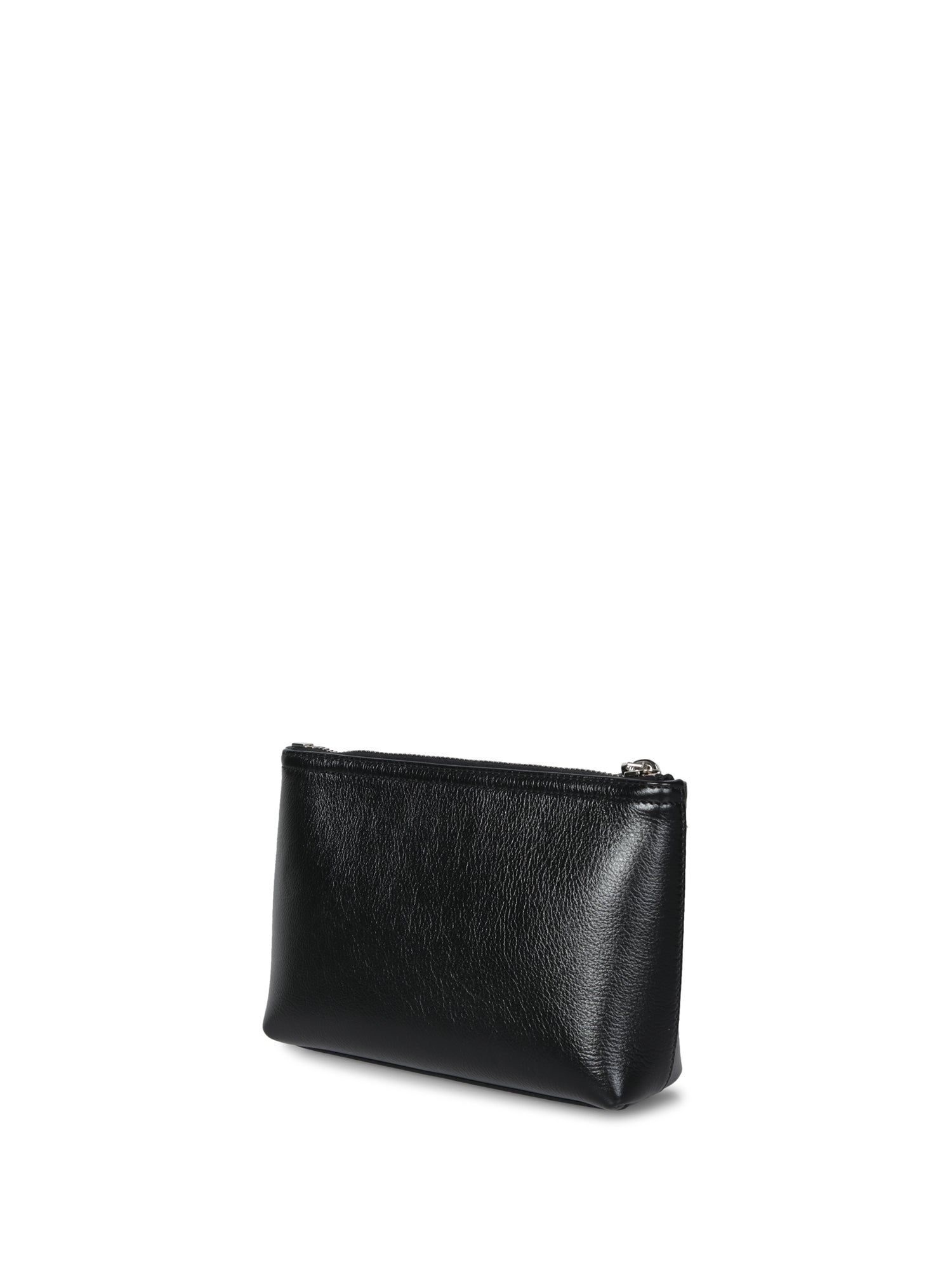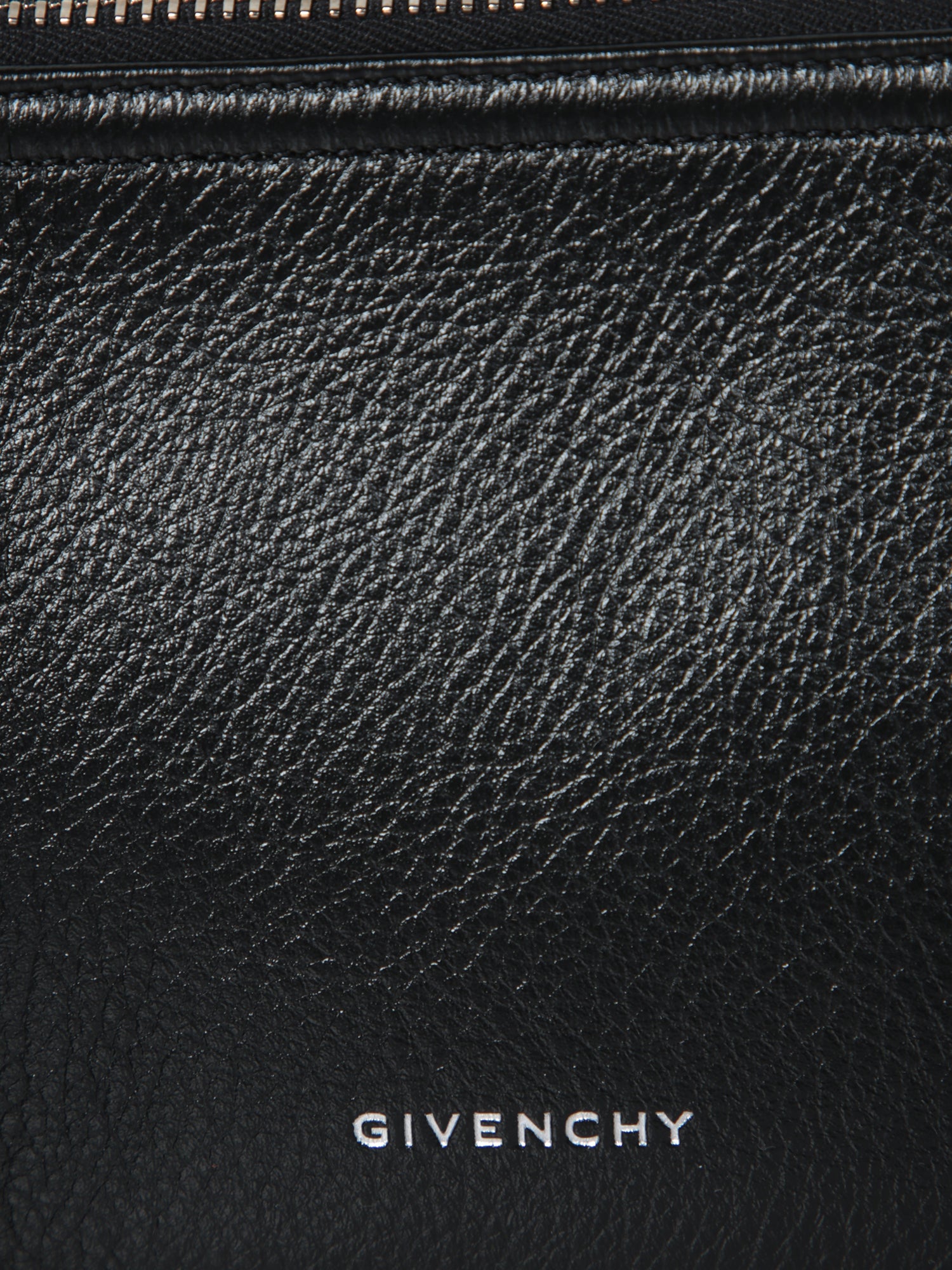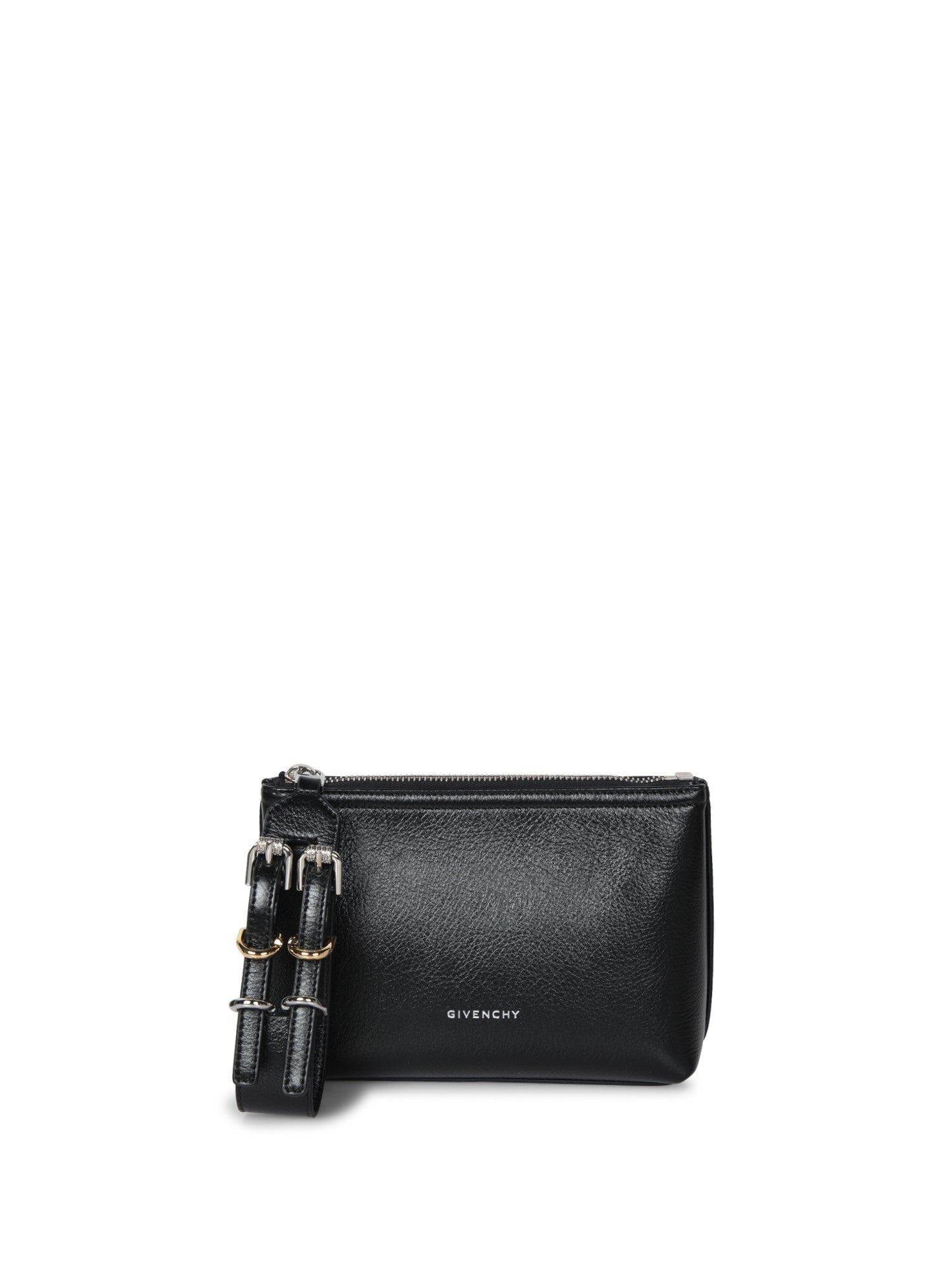 Exuding understated yet bold charm, this Givenchy clutch is crafted from soft black leather with gold-tone metal details that add a touch of refined elegance.