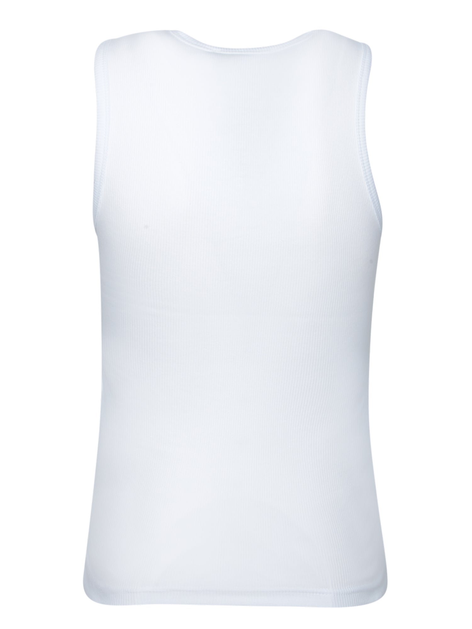 Sleeveless ribbed knit top. Minimalist design with front anchor logo. Crew neck.