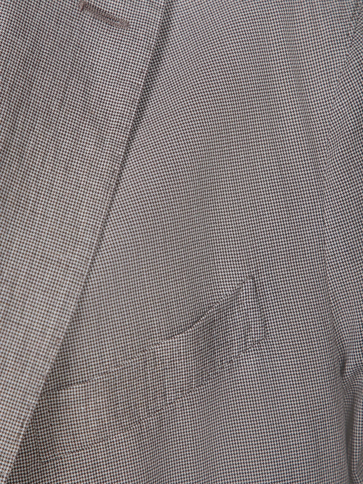 Structured jacket with two-button closure, flap pockets, and a chest pocket.