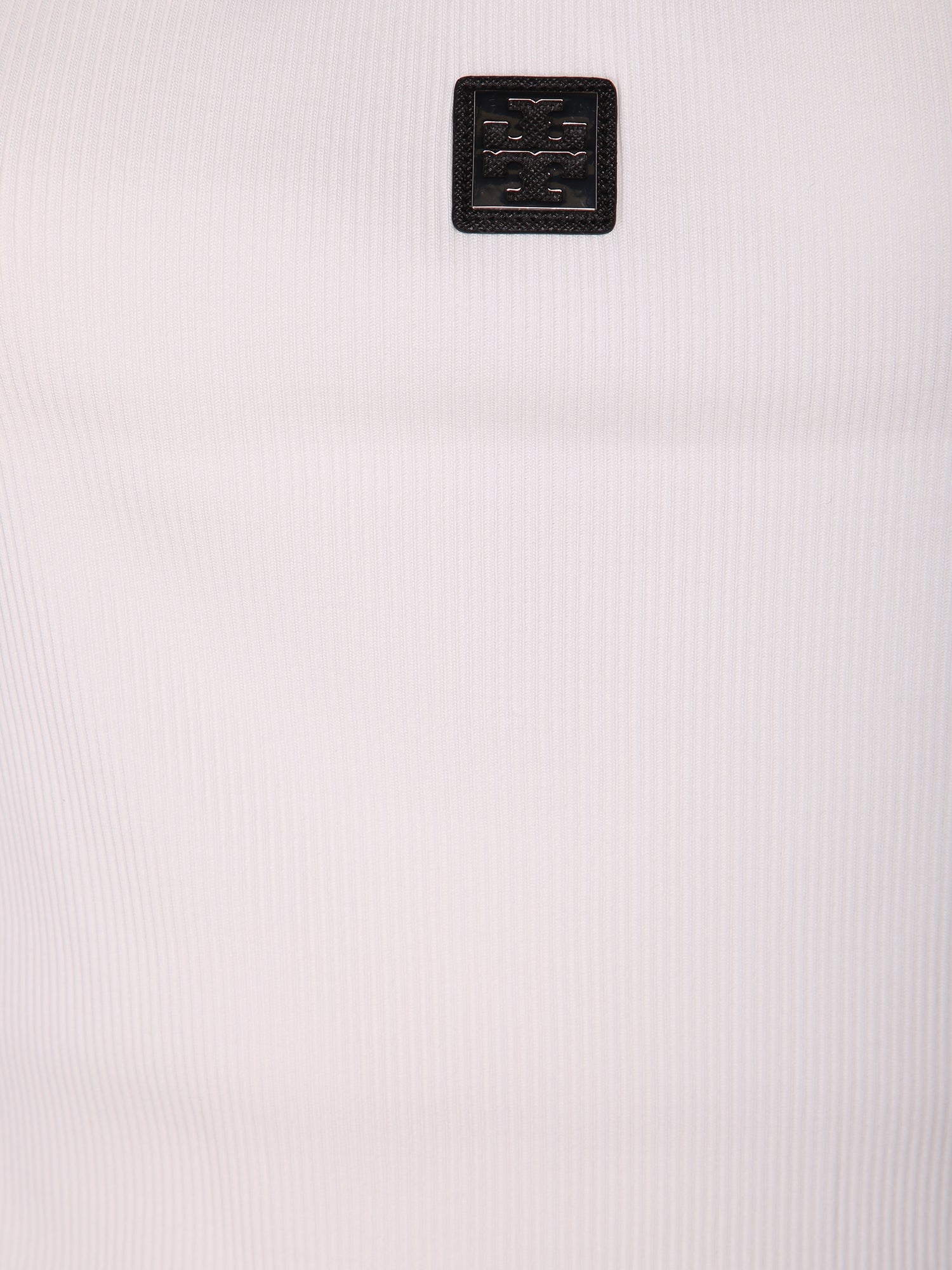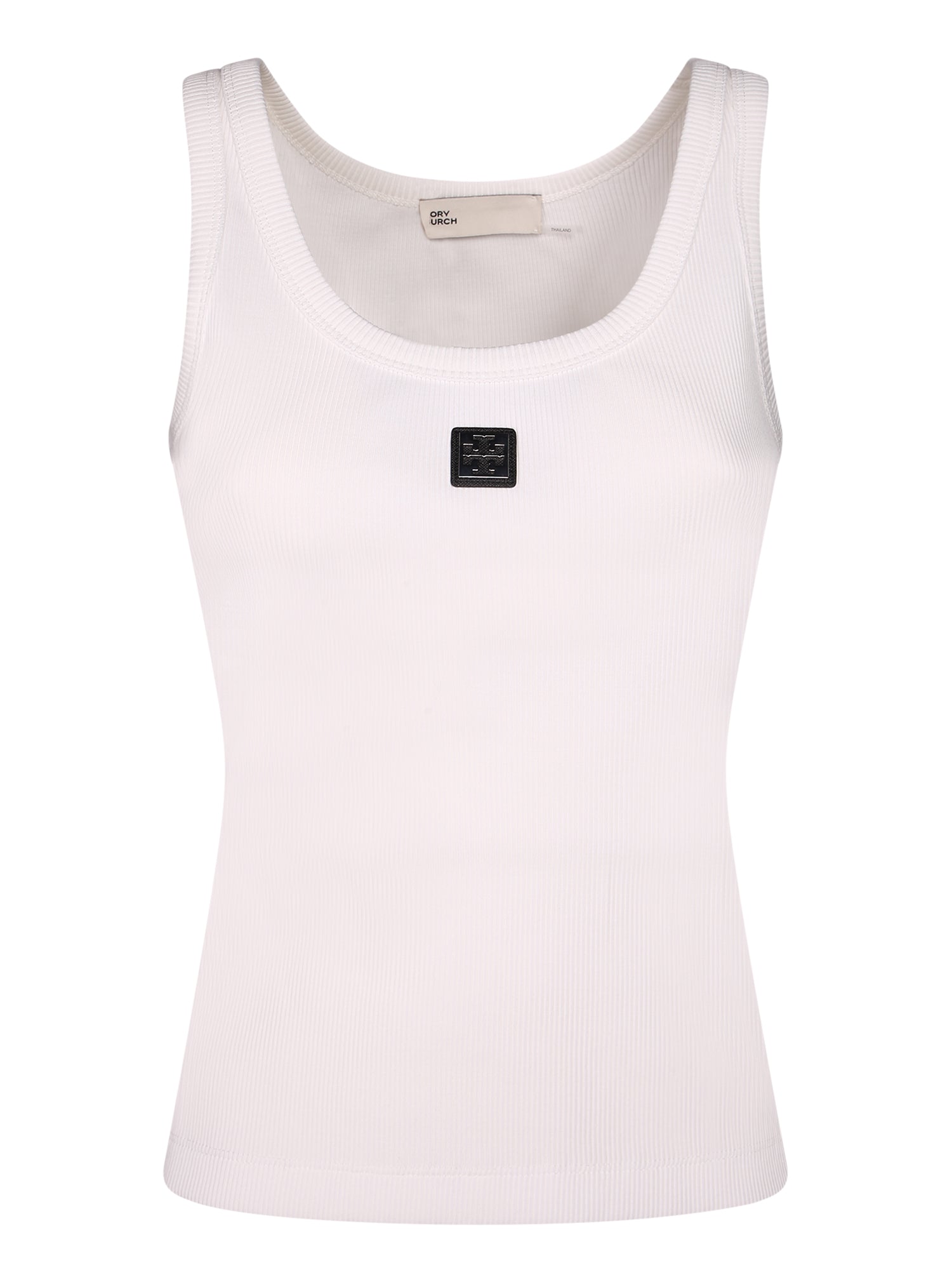 White cotton tank top. Front square logo. Round neckline.