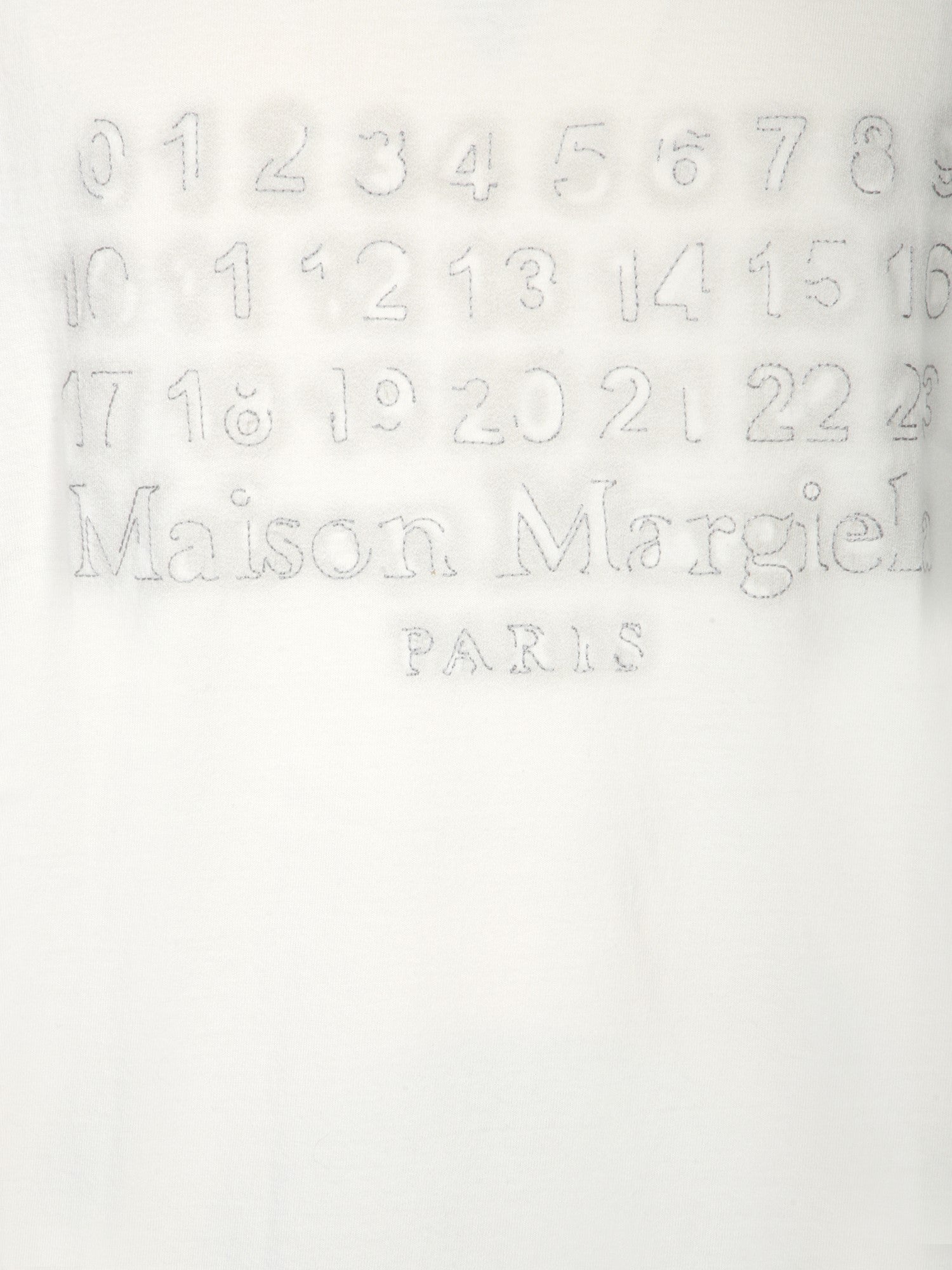 This Maison Margiela T-shirt features a distinctive tonal numeric print on the front, embodying the brand's minimalist yet recognizable style.