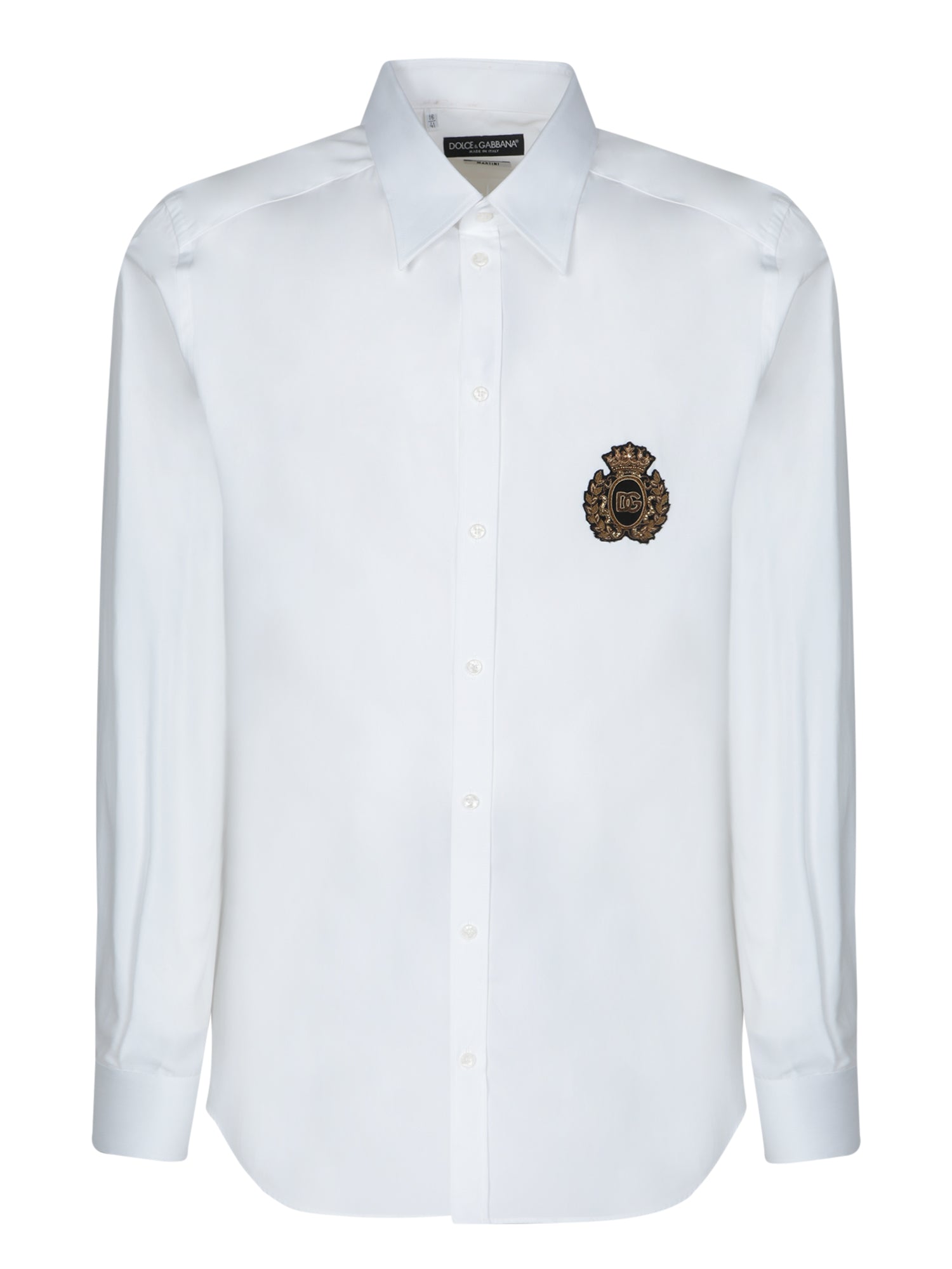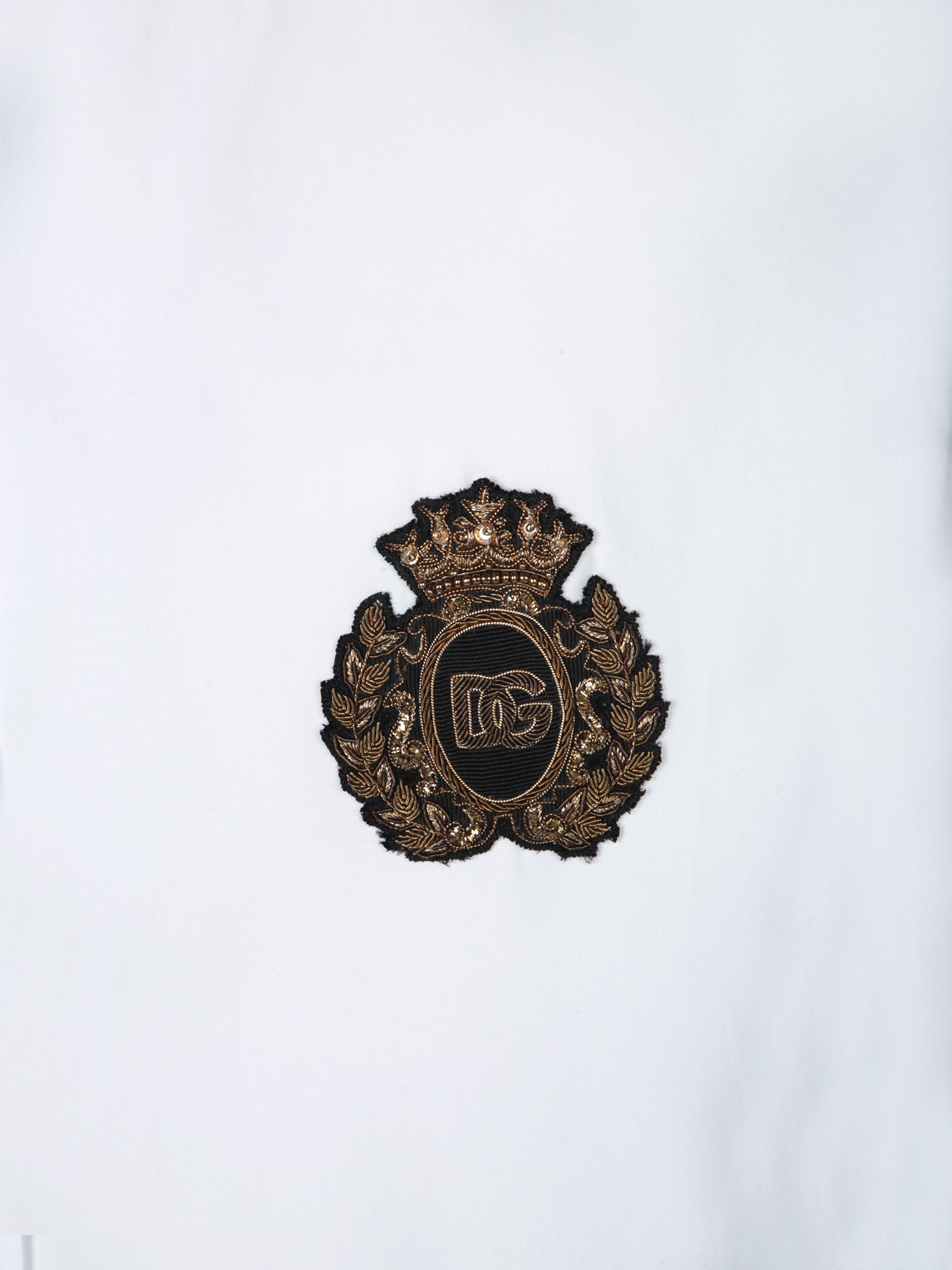 Elegant and distinctive, this Dolce & Gabbana white shirt features a sophisticated crest emblem that accentuates the garment's regal style. Perfect for formal occasions or exclusive evenings.