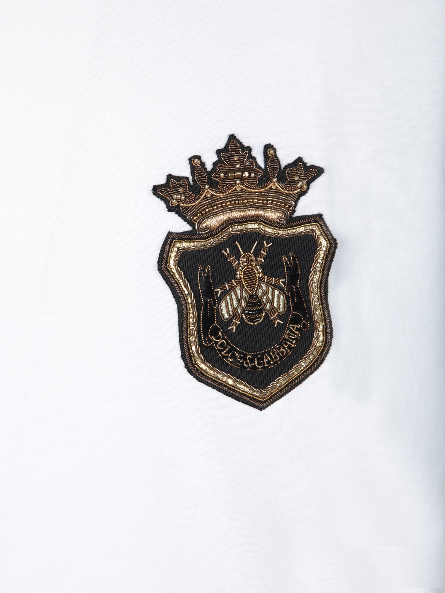 Exclusive white t-shirt by Dolce & Gabbana, embellished with an embroidered crest logo that adds a regal touch to the minimalist design.