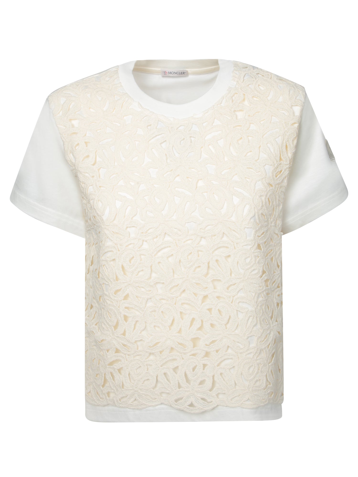 This exclusive Moncler t-shirt features a sophisticated crochet design that adds a touch of elegance to your casual wardrobe. Crafted from soft cotton jersey, it ensures both comfort and style.