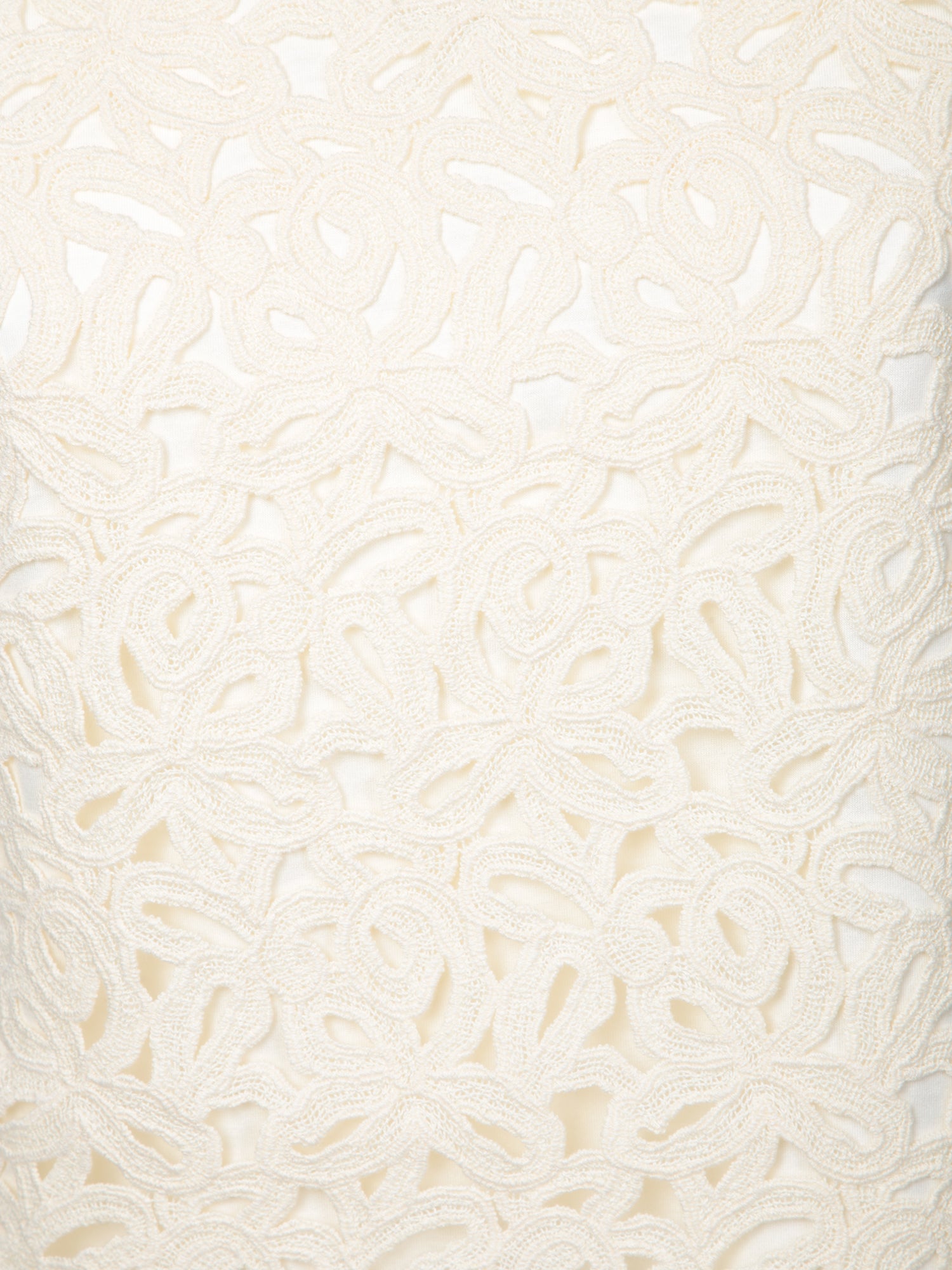 Short sleeve t-shirt. Cotton jersey fabric with crochet detailing. Finished crew neck.