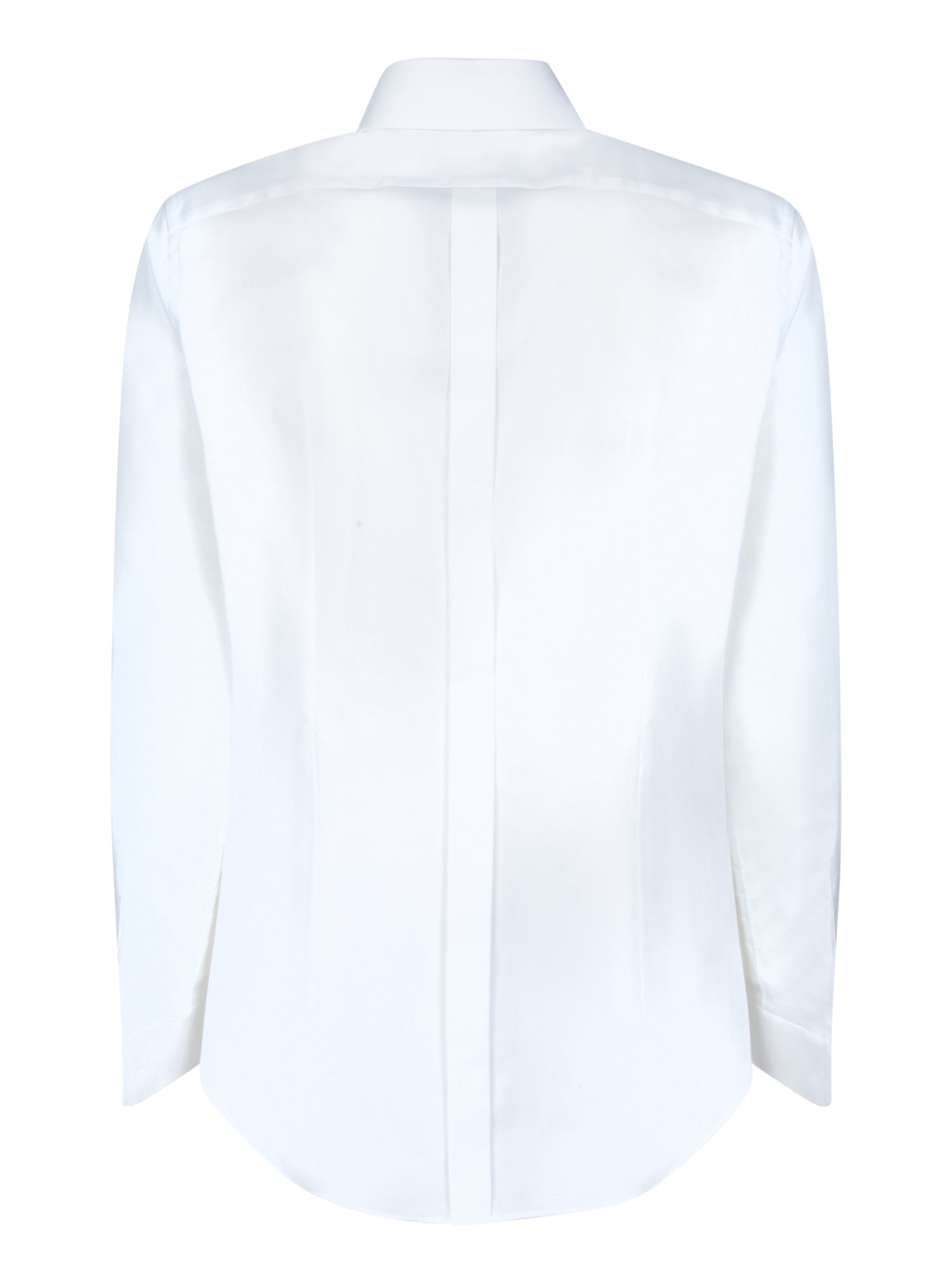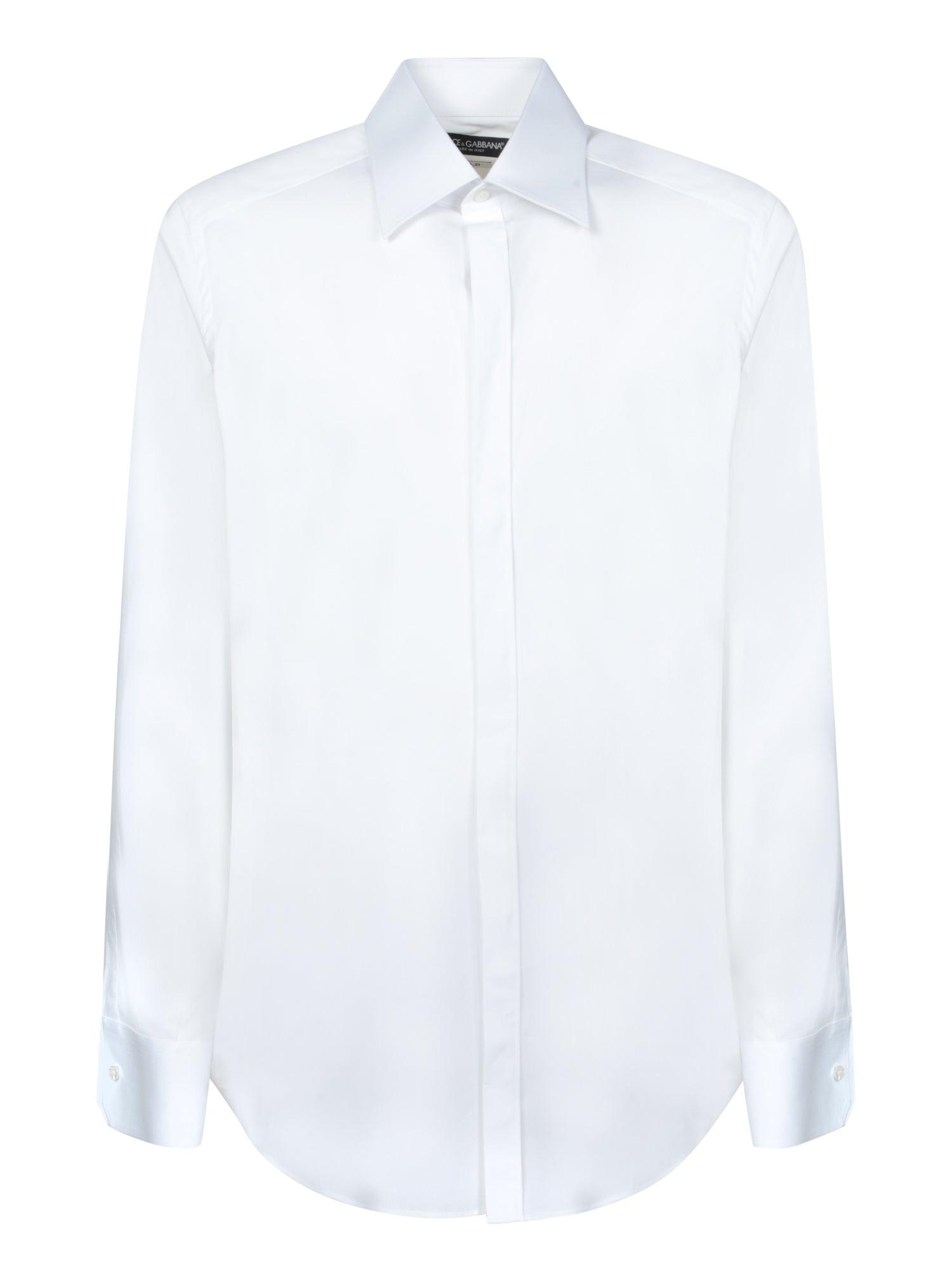 Dolce & Gabbana's white dress shirt, crafted from high-quality fabric, features a sophisticated design with a sharp Italian collar and a sleek silhouette that defines an elegant fit.