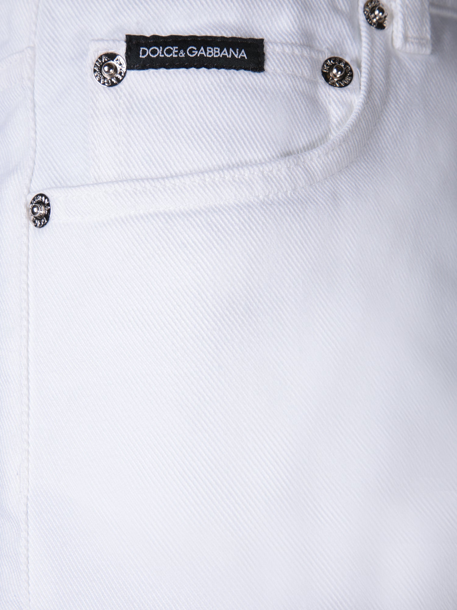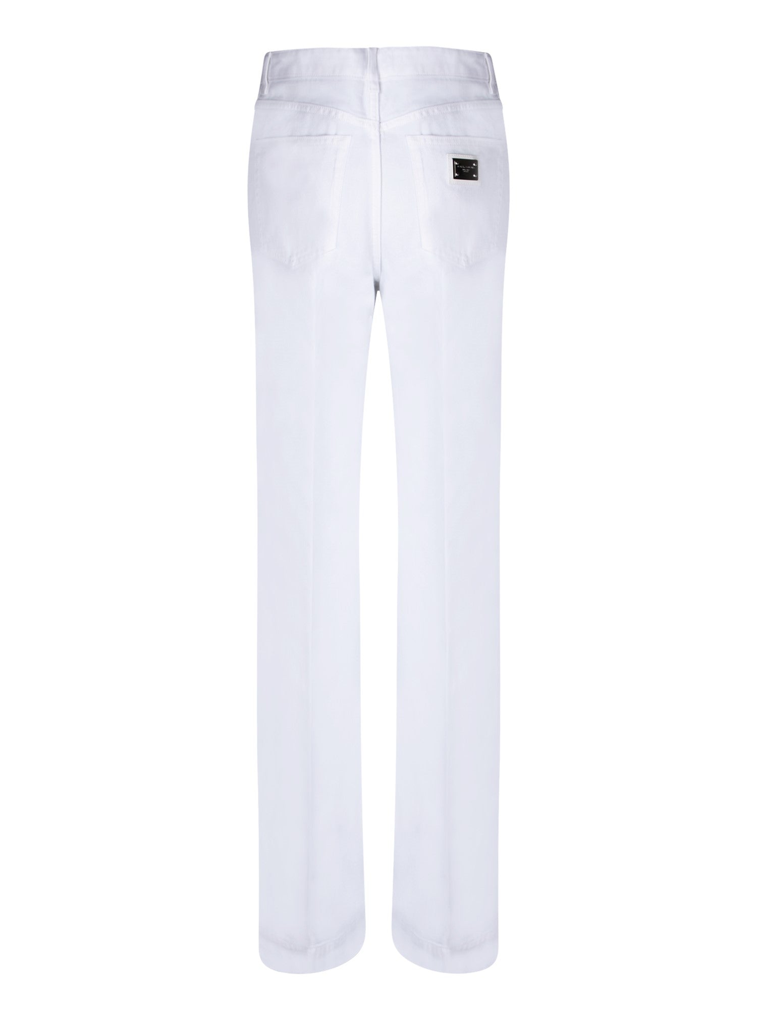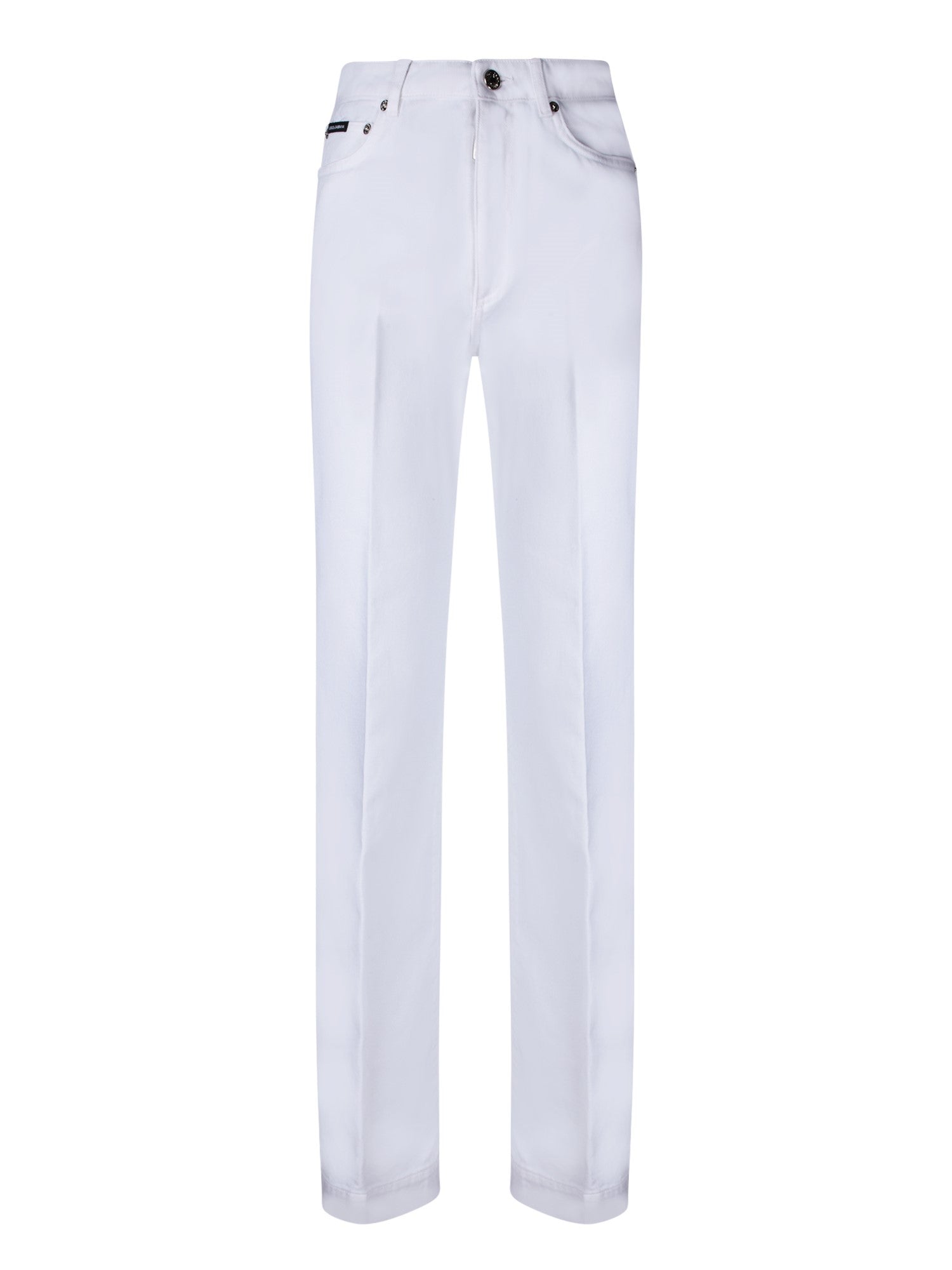 Explore contemporary style with Dolce & Gabbana's White Flare Denim Jeans. Crafted from high-quality denim, they offer an elegant fit that channels a vintage vibe, accentuated by a flared silhouette perfect for any occasion.