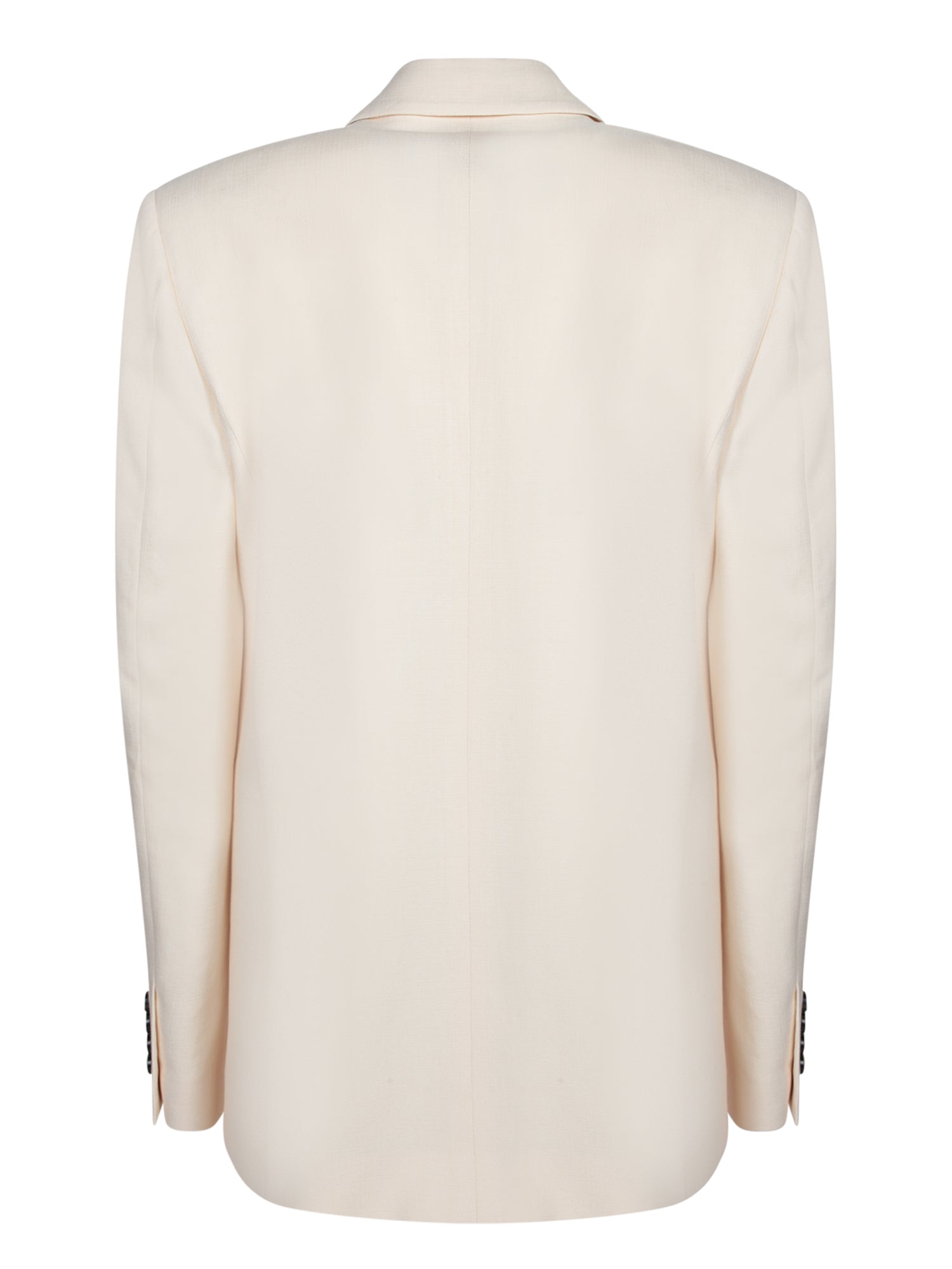 Ivory white elegant jacket. Front flap pockets and a chest pocket. Single button front closure.
