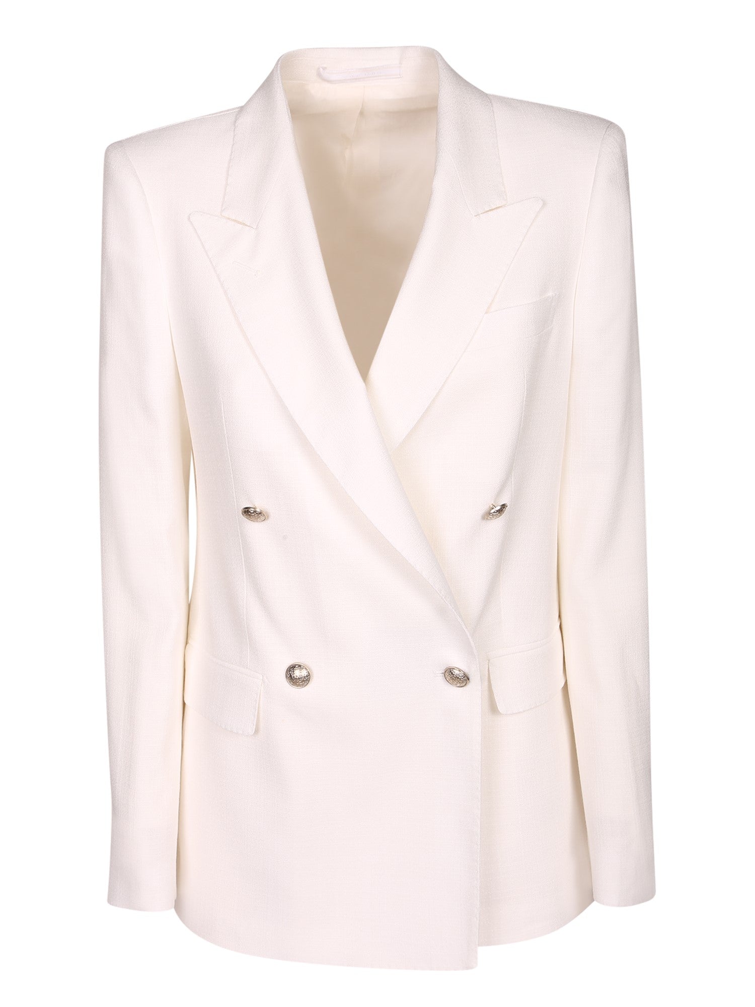 Viscose fabric. Double-breasted cut. Metallic buttons.