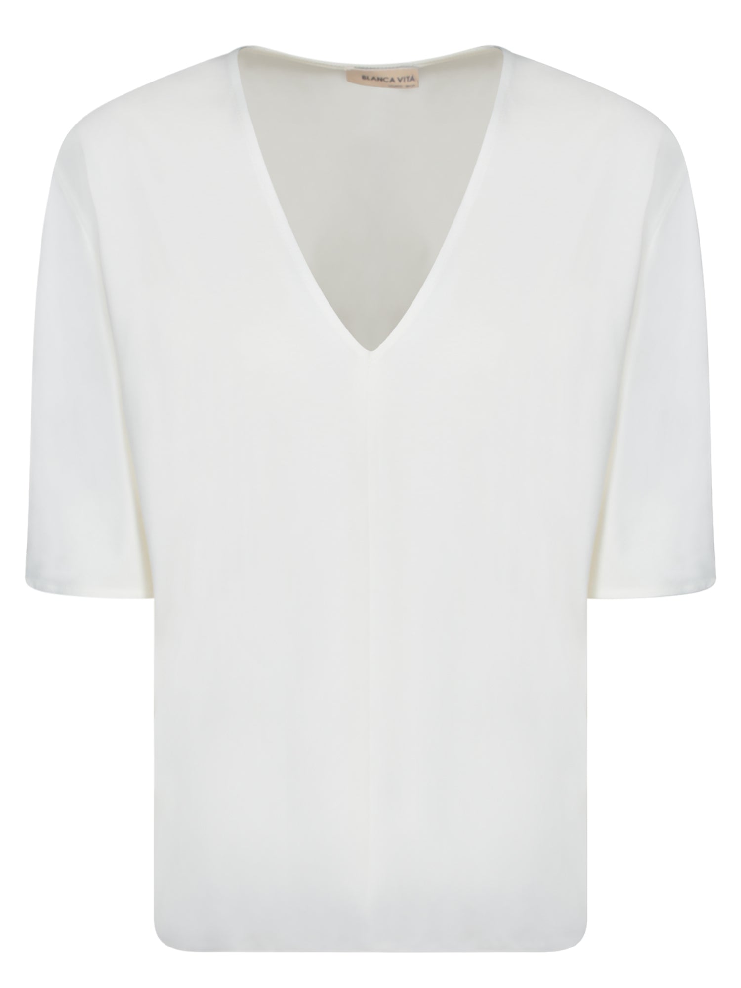 This jersey blouse with a deep V-neck delivers a comfortable and versatile fit, perfect for any occasion.
