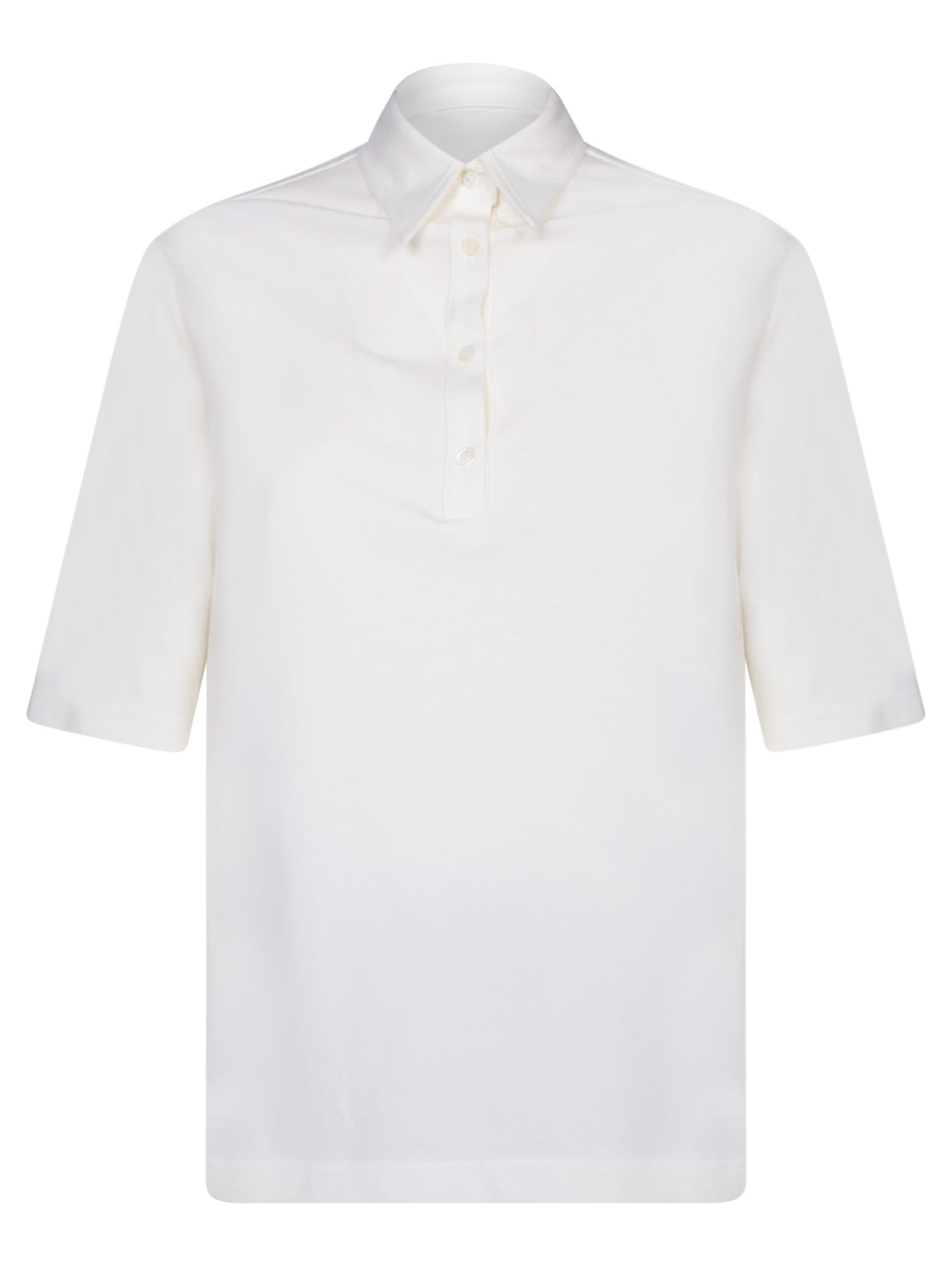 Short sleeves. Classic collar with three-button placket. Regular fit.