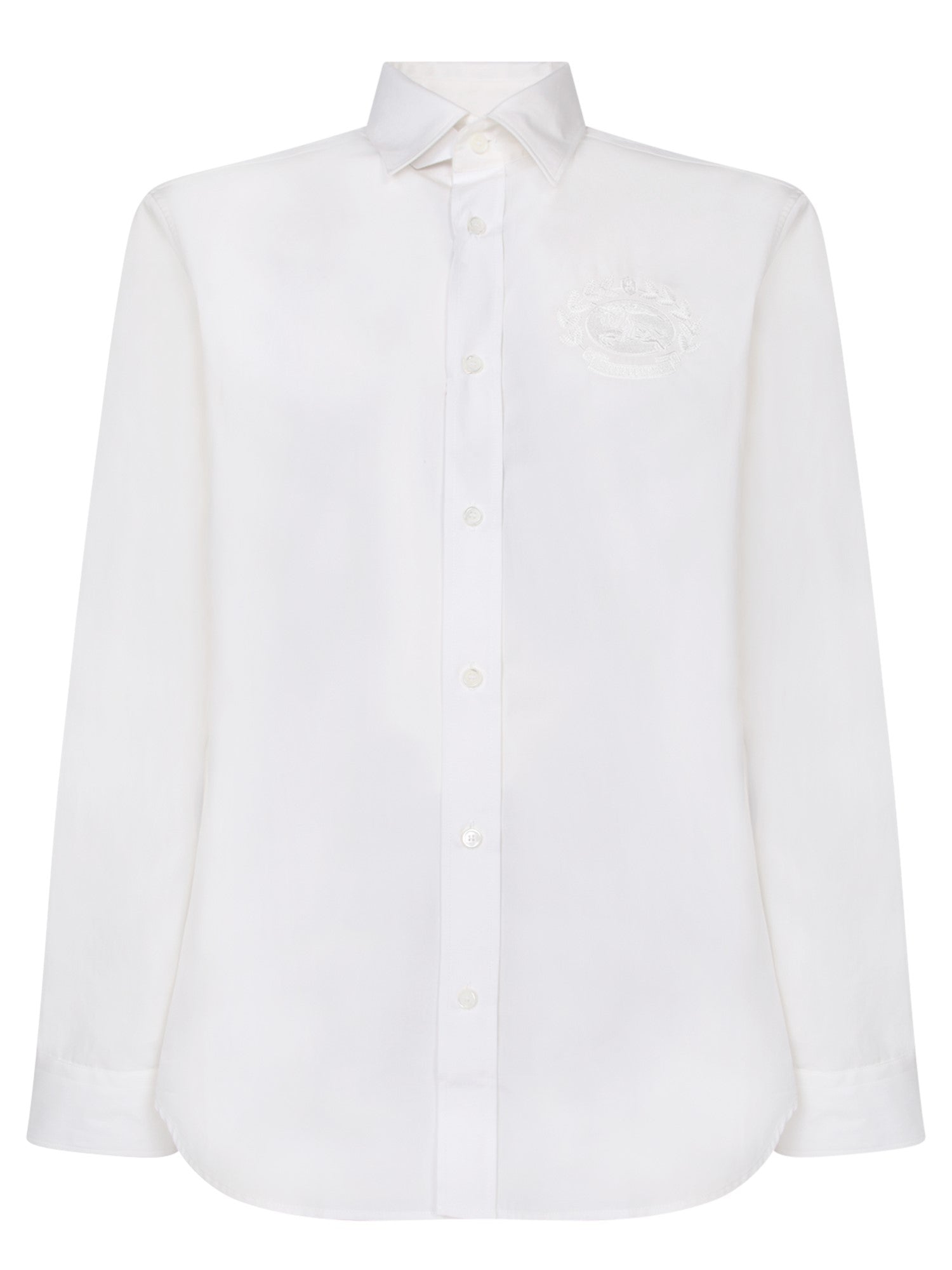 Long-sleeved white cotton shirt. Classic collar. Front button closure. Embroidered Knight logo on the chest.