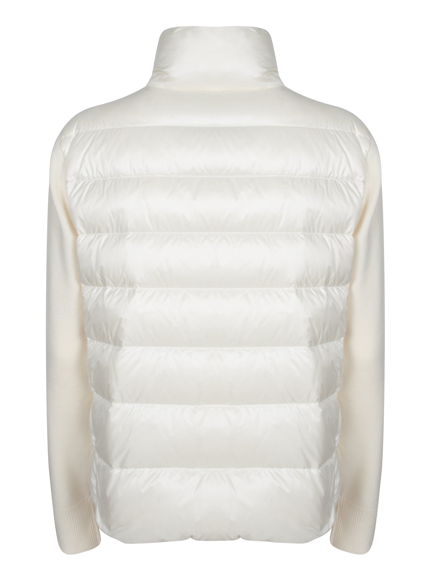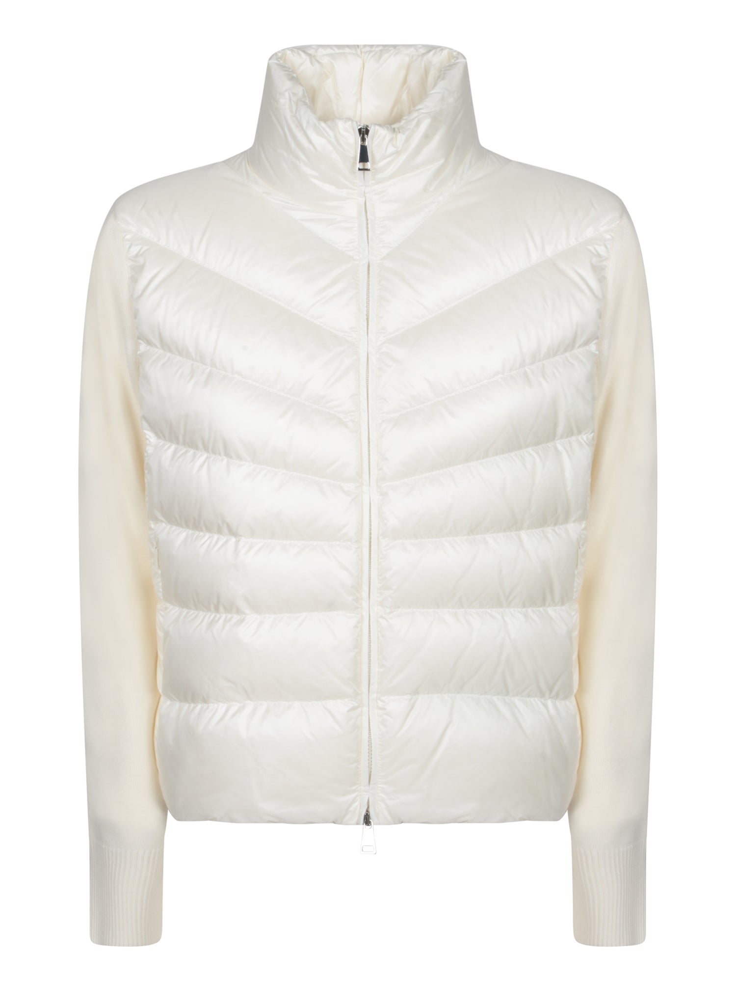 Quilted cardigan with zip closure. Long sleeves, high collar. Ribbed cuffs and hem.