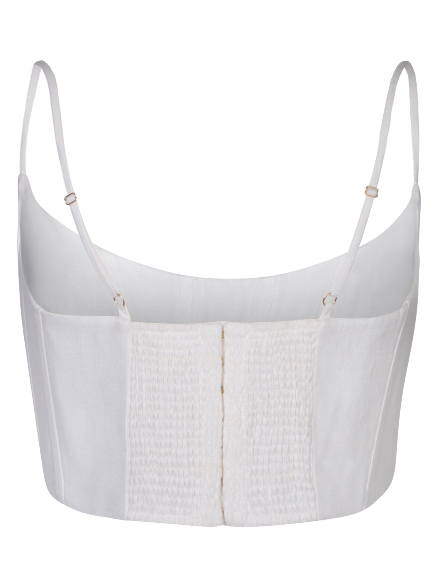 Adjustable thin straps. Corset structure. Zip closure at the back.