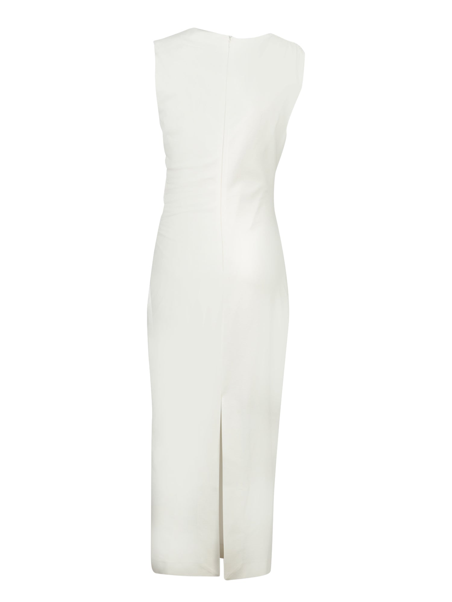 Elegant white dress in Milano knit fabric, perfect for formal occasions or exclusive evenings. The clean design and slender silhouette highlight a timeless class.