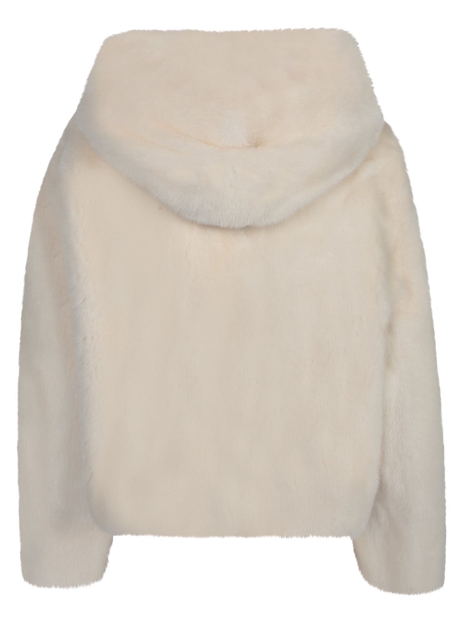 Mink fur hoodie. Internal lining. Front closure with hidden hooks.