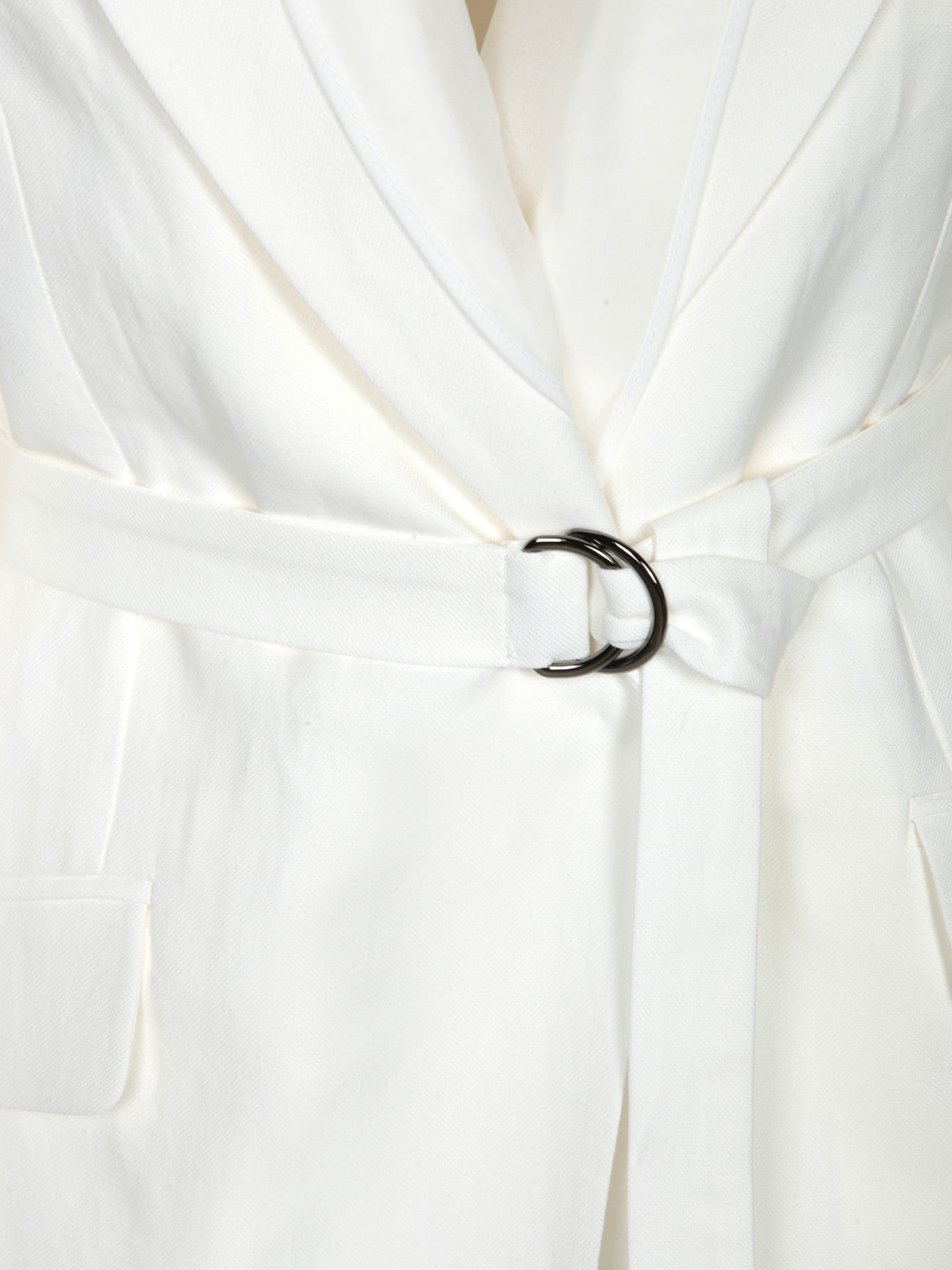 Tailored cut jacket. Linen and viscose blend fabric. Removable belt.