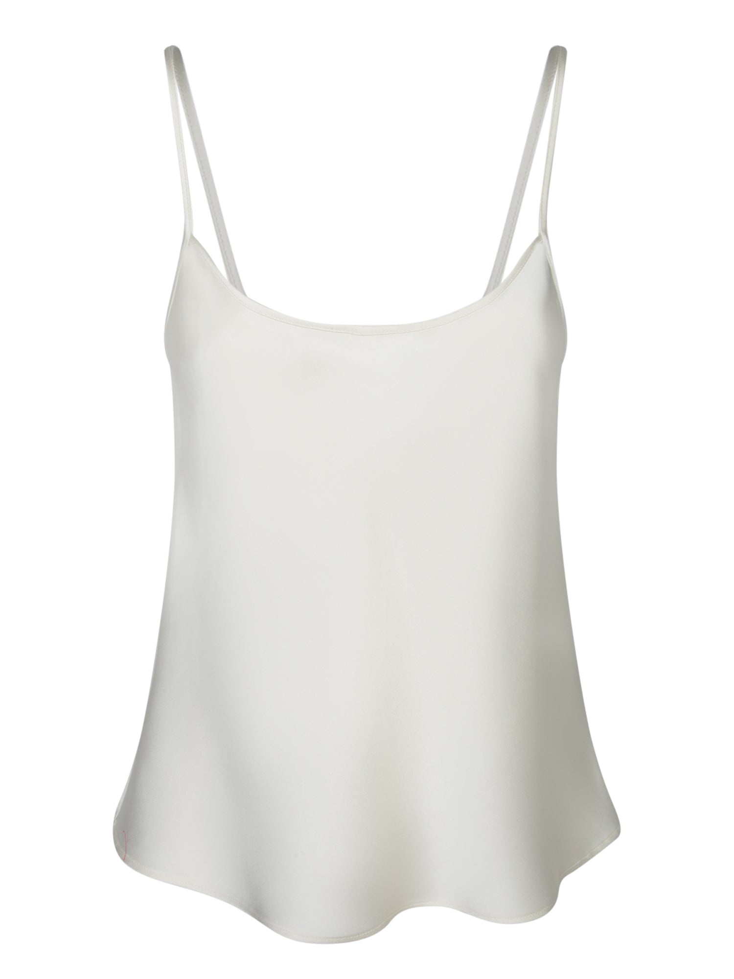 Flowing tank top with adjustable thin straps. Shiny satin fabric. Delicate finishes for an elegant look.
